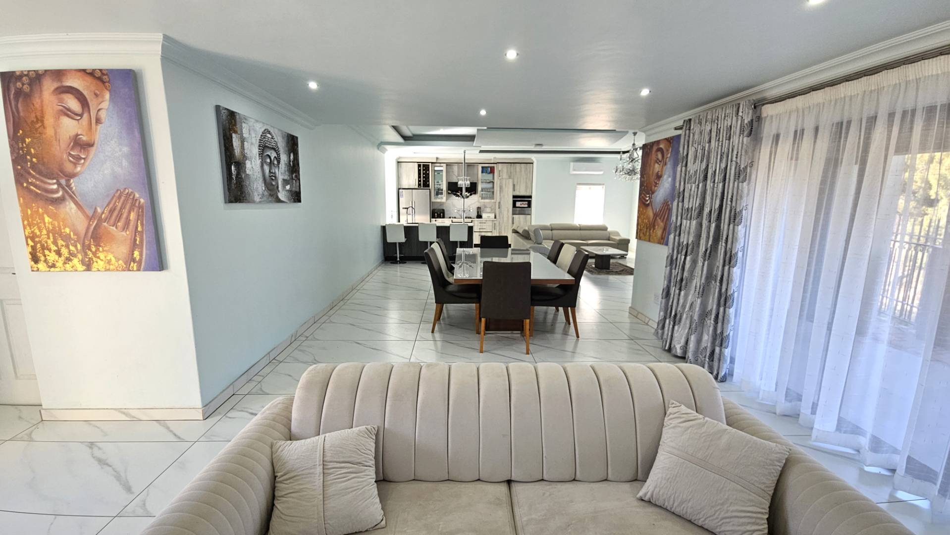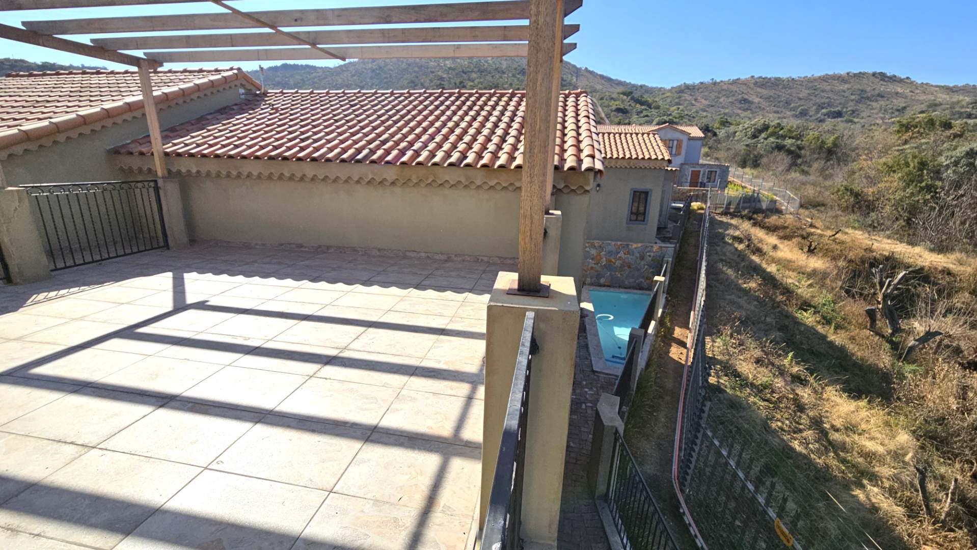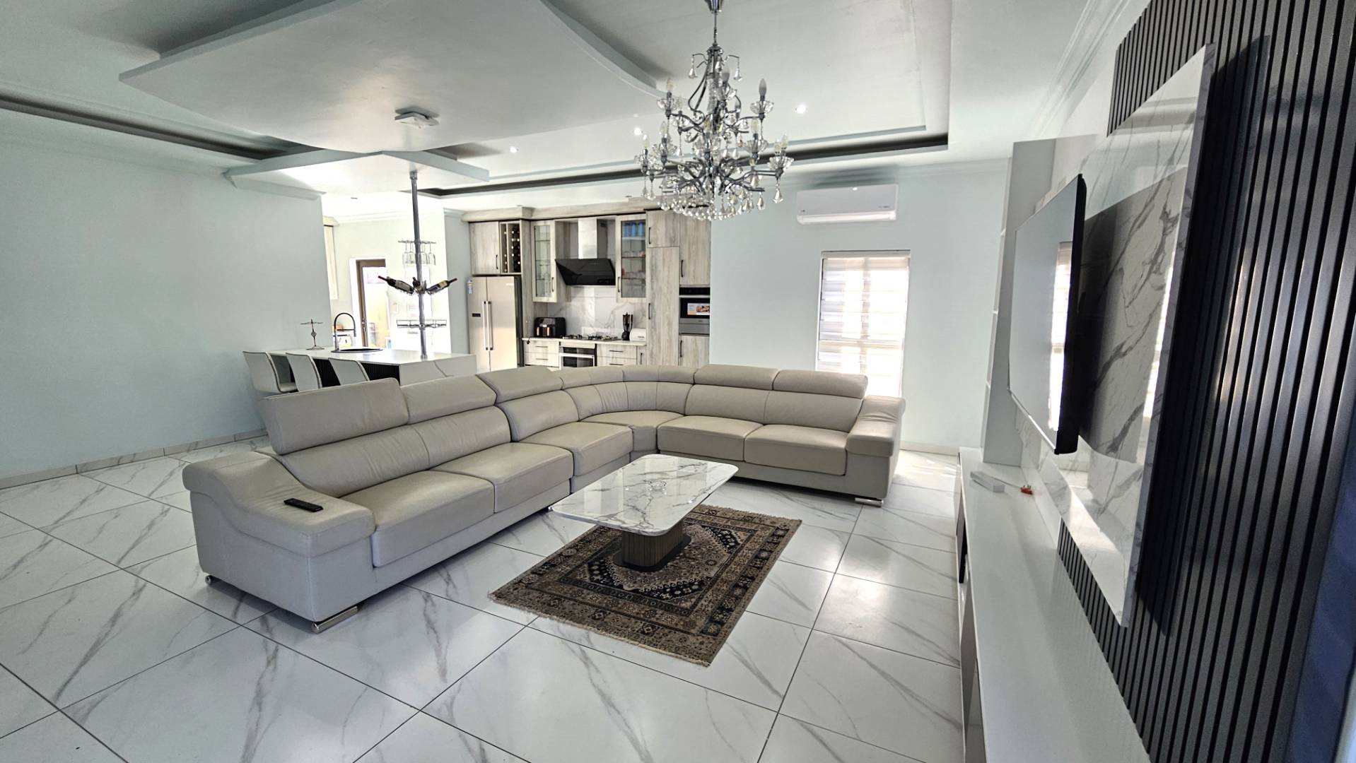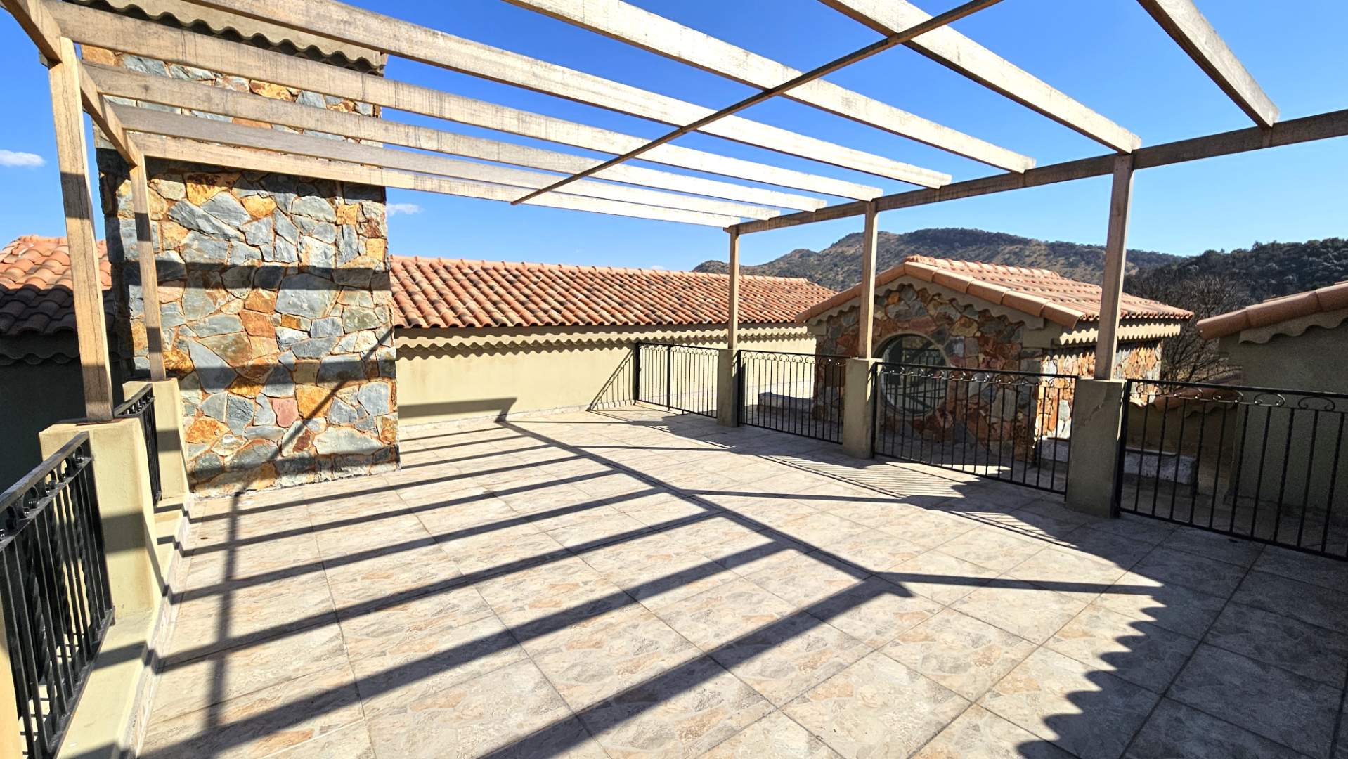 lounge, leading to the covered patio with built in braai and basin, rooftop open patio to