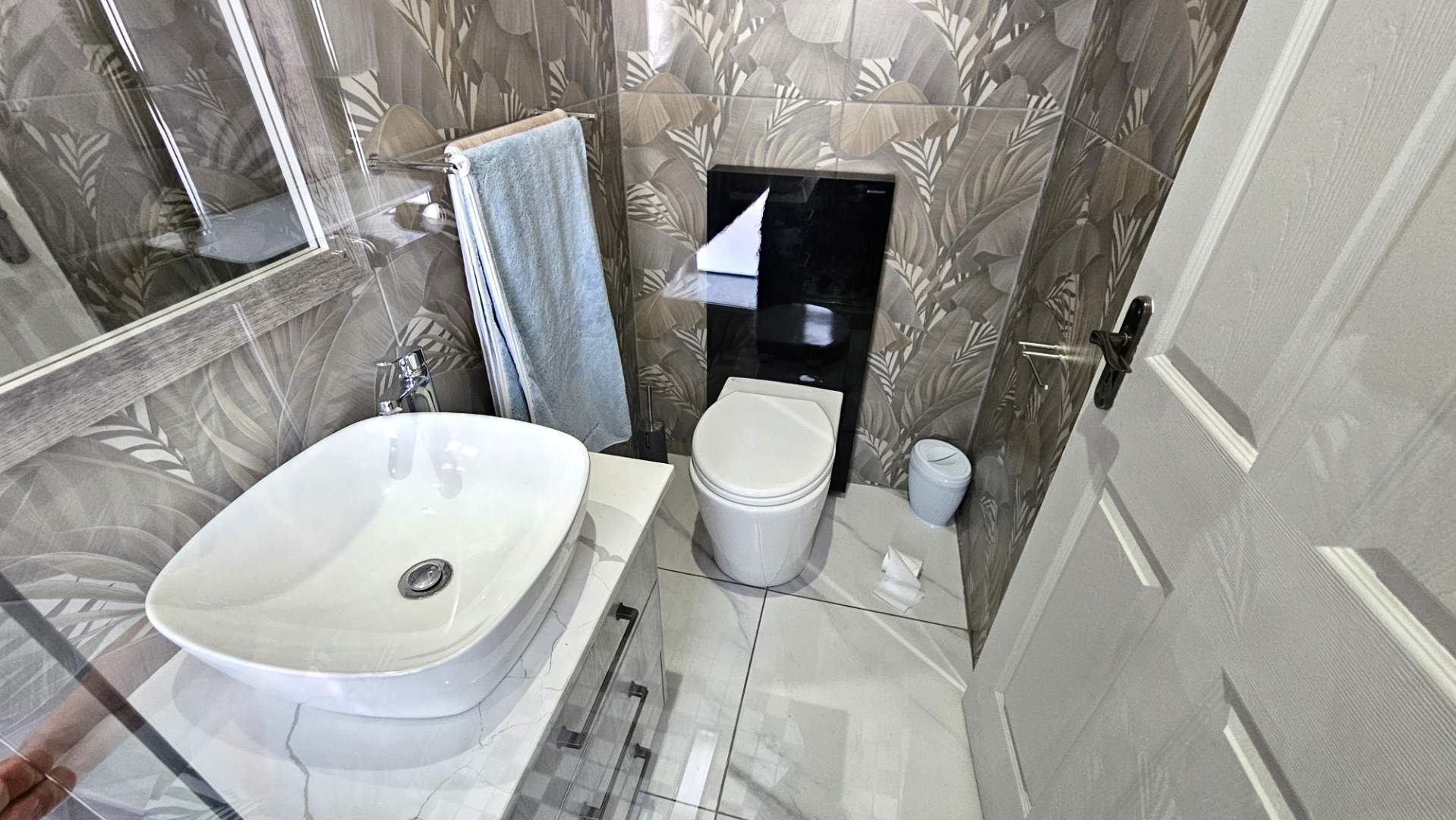 bedrooms with en suite bathrooms with shower, basin and toilet. Guest toilet.