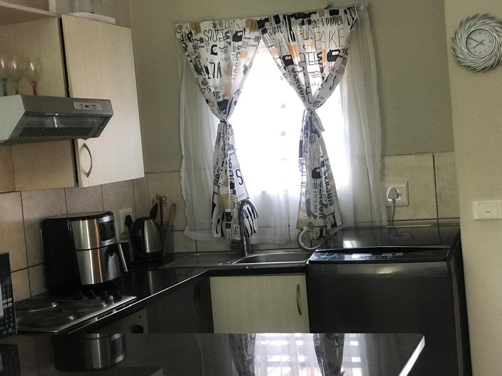 A beautiful two bedroom in a secured place with security few kilometres away from Malls and shopping centres . play area for kids and braai arears