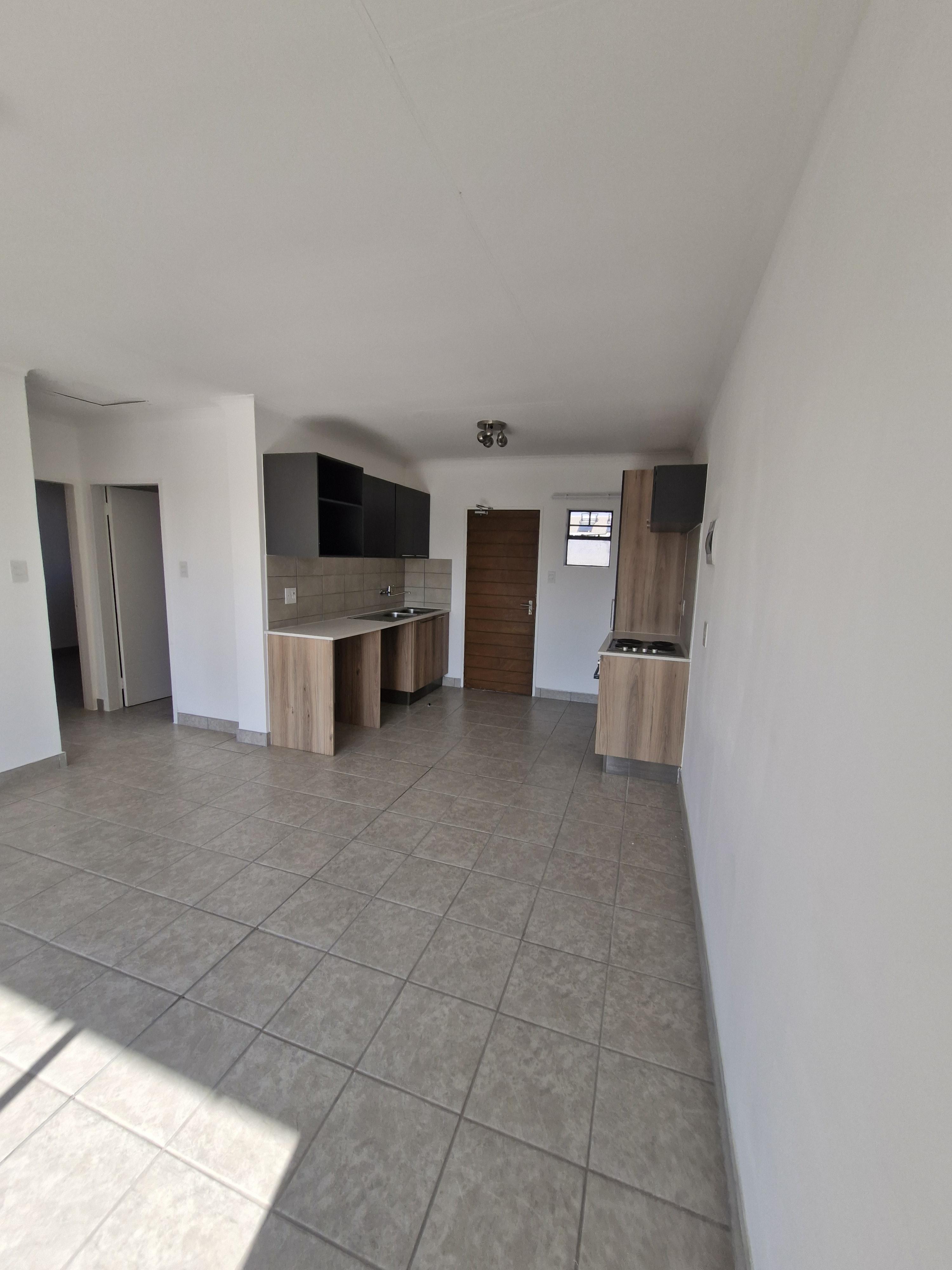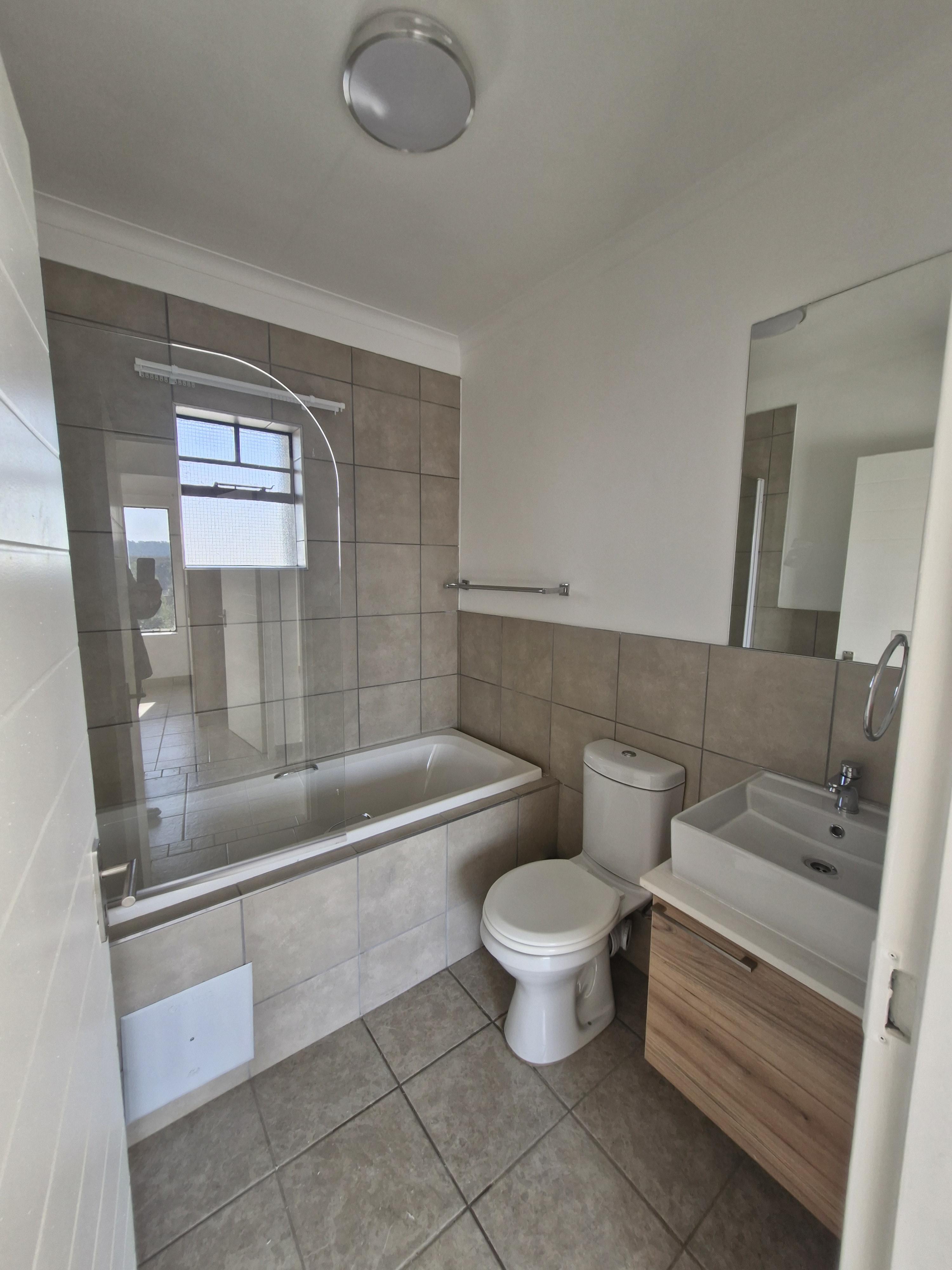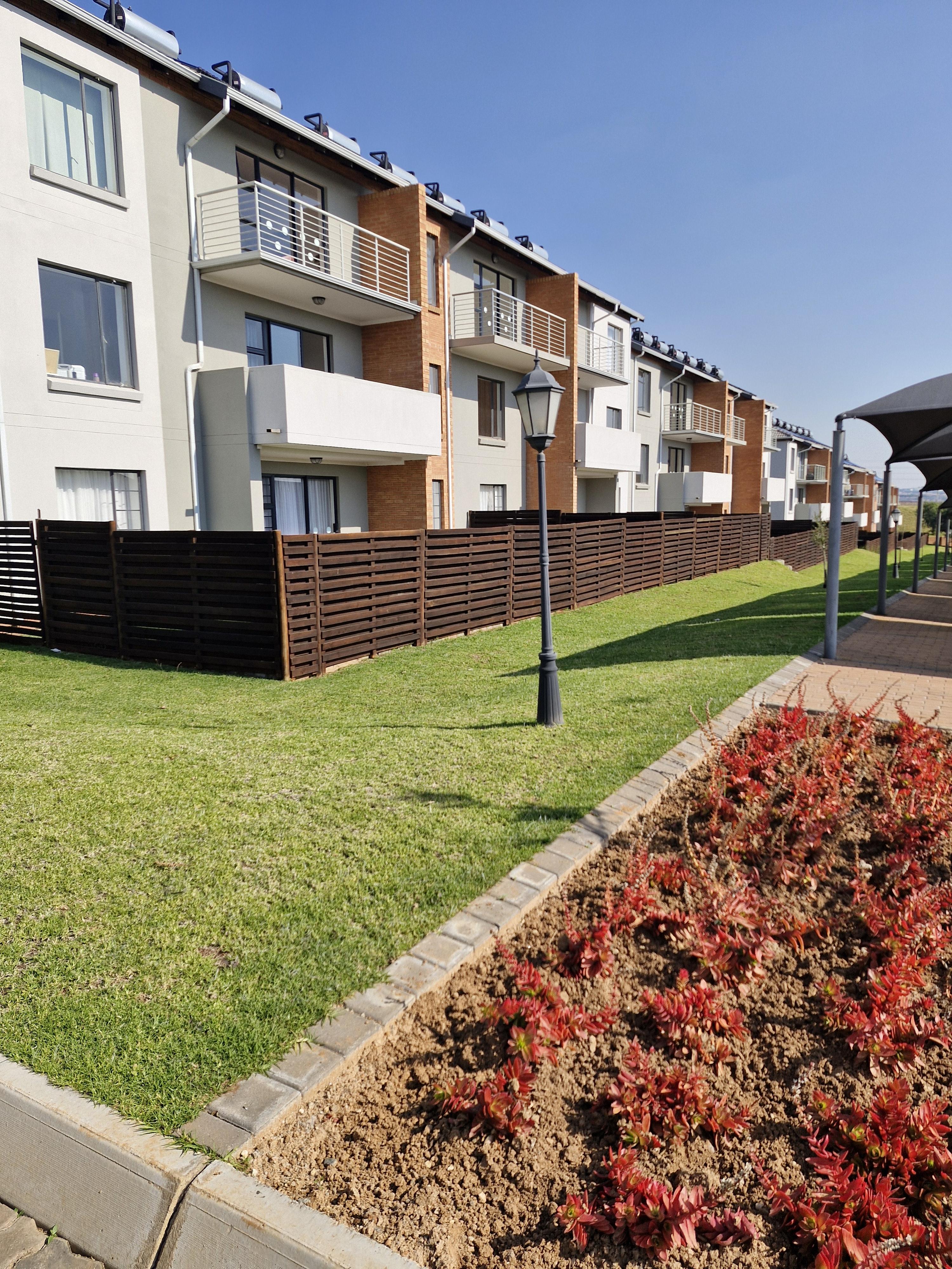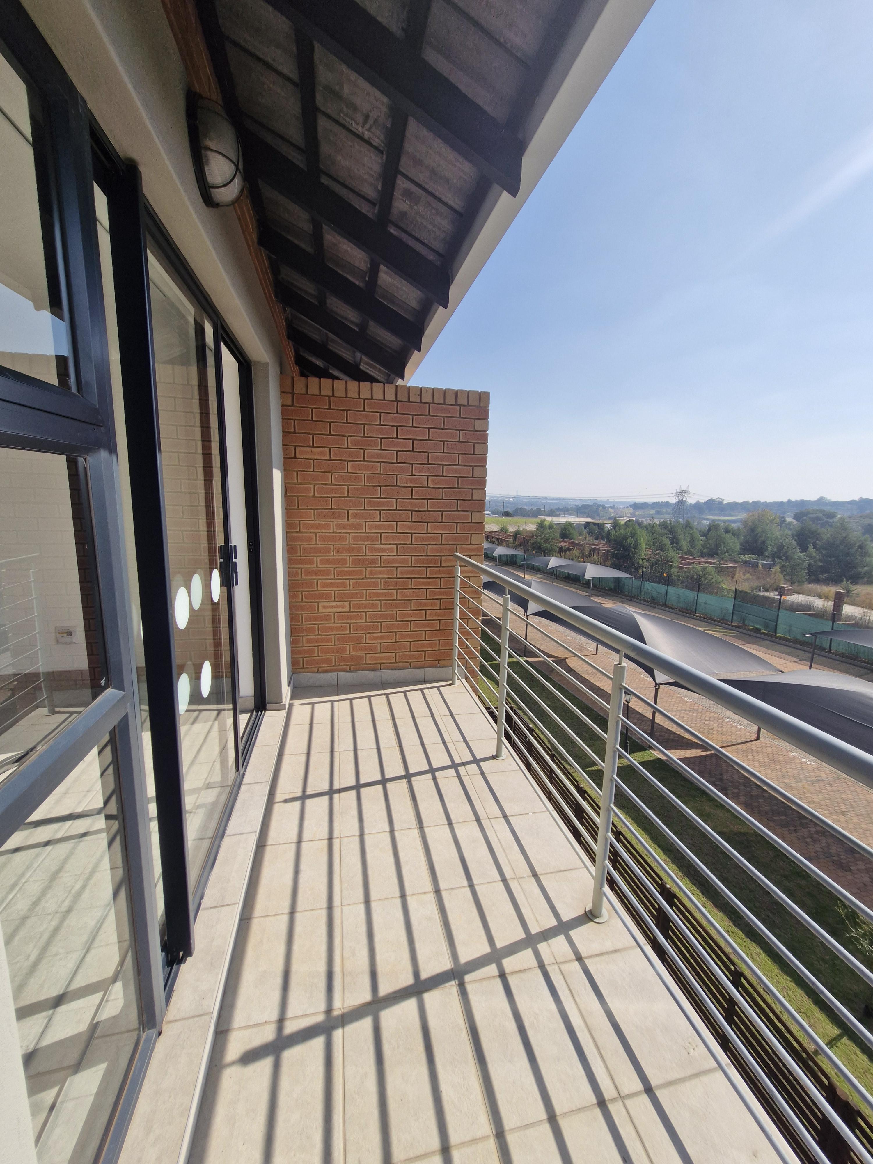 The kitchen and lounge are open plan, perfect for easy cleaning and creates a spacious atmosphere. The kitchen is modern with superb finishes and has ample storage cupboards, a fitted stove hob, and an oven. This 2-bedroom unit comes with a lovely balcony looking out on the estate.