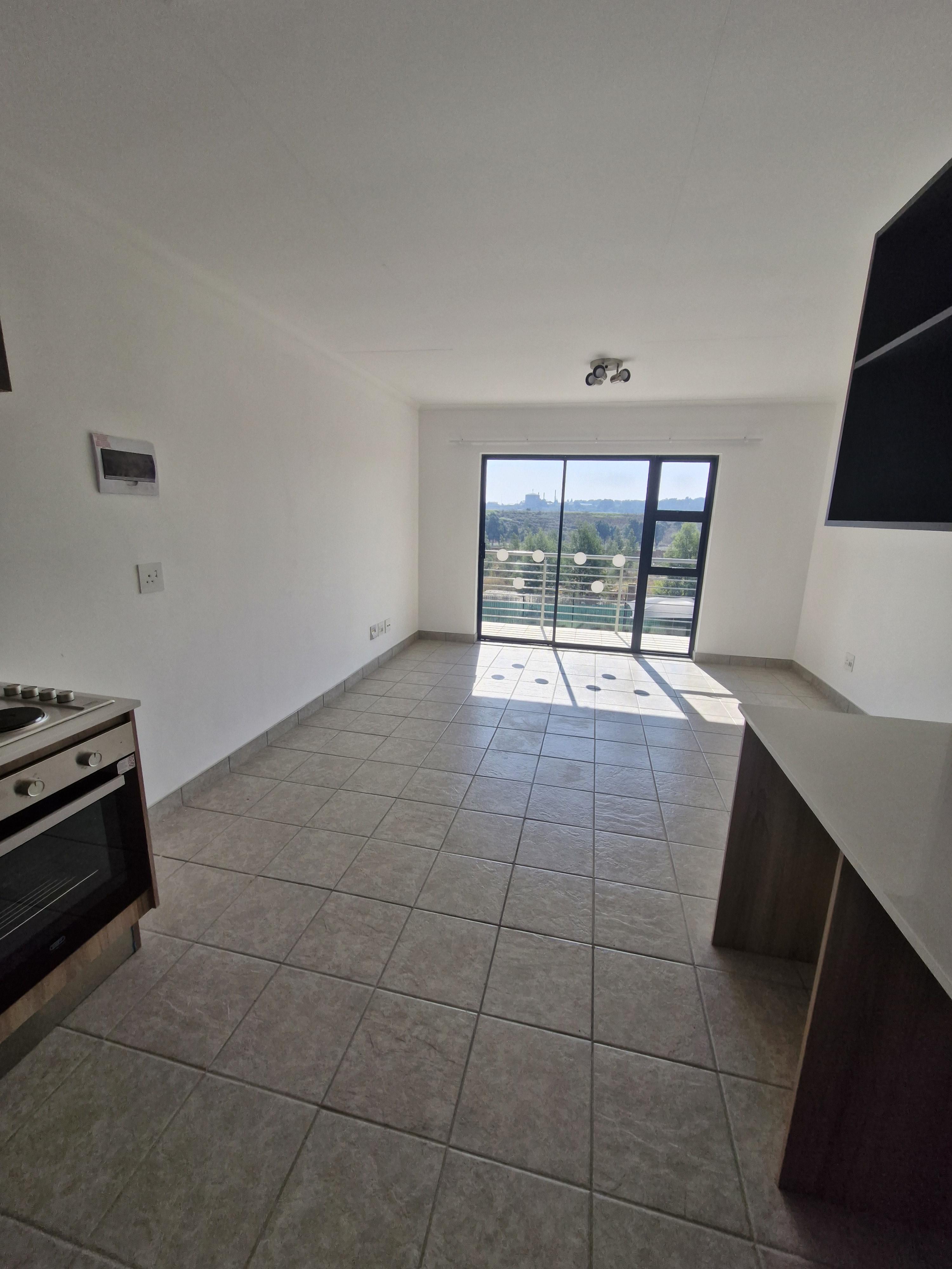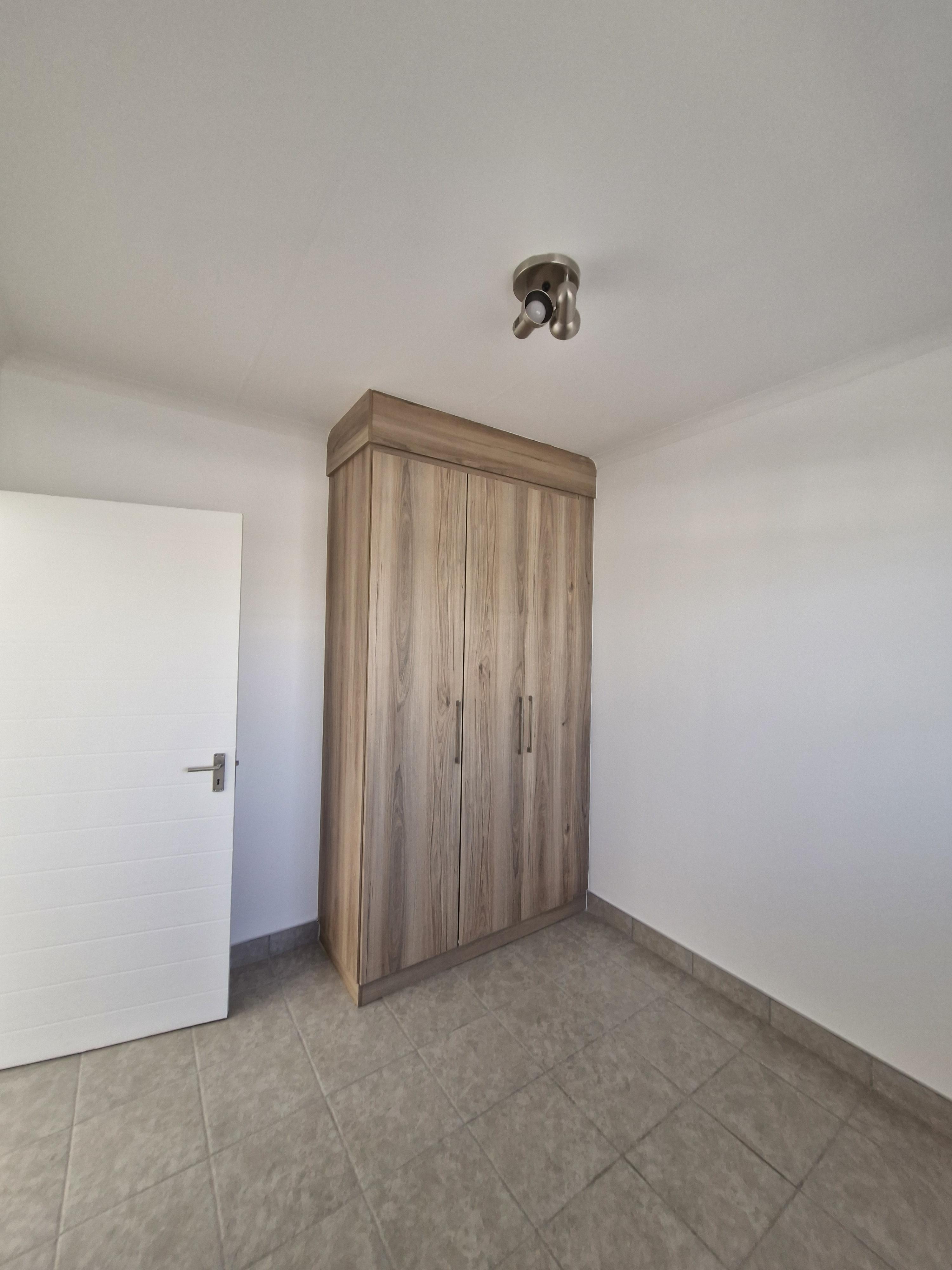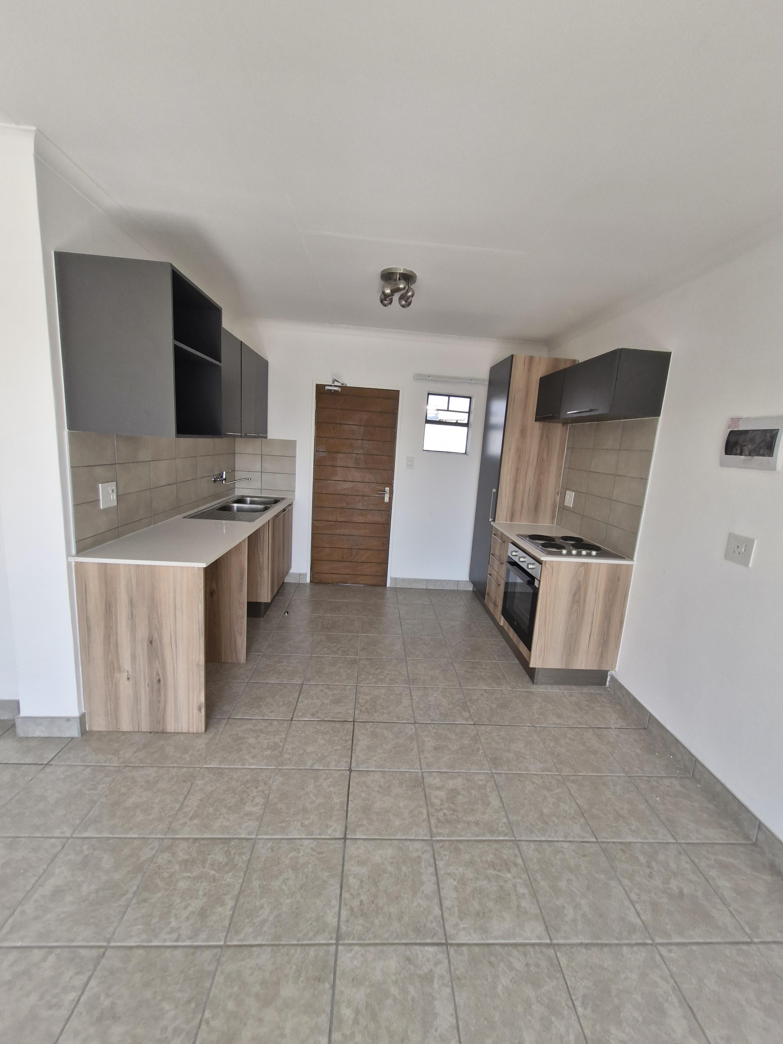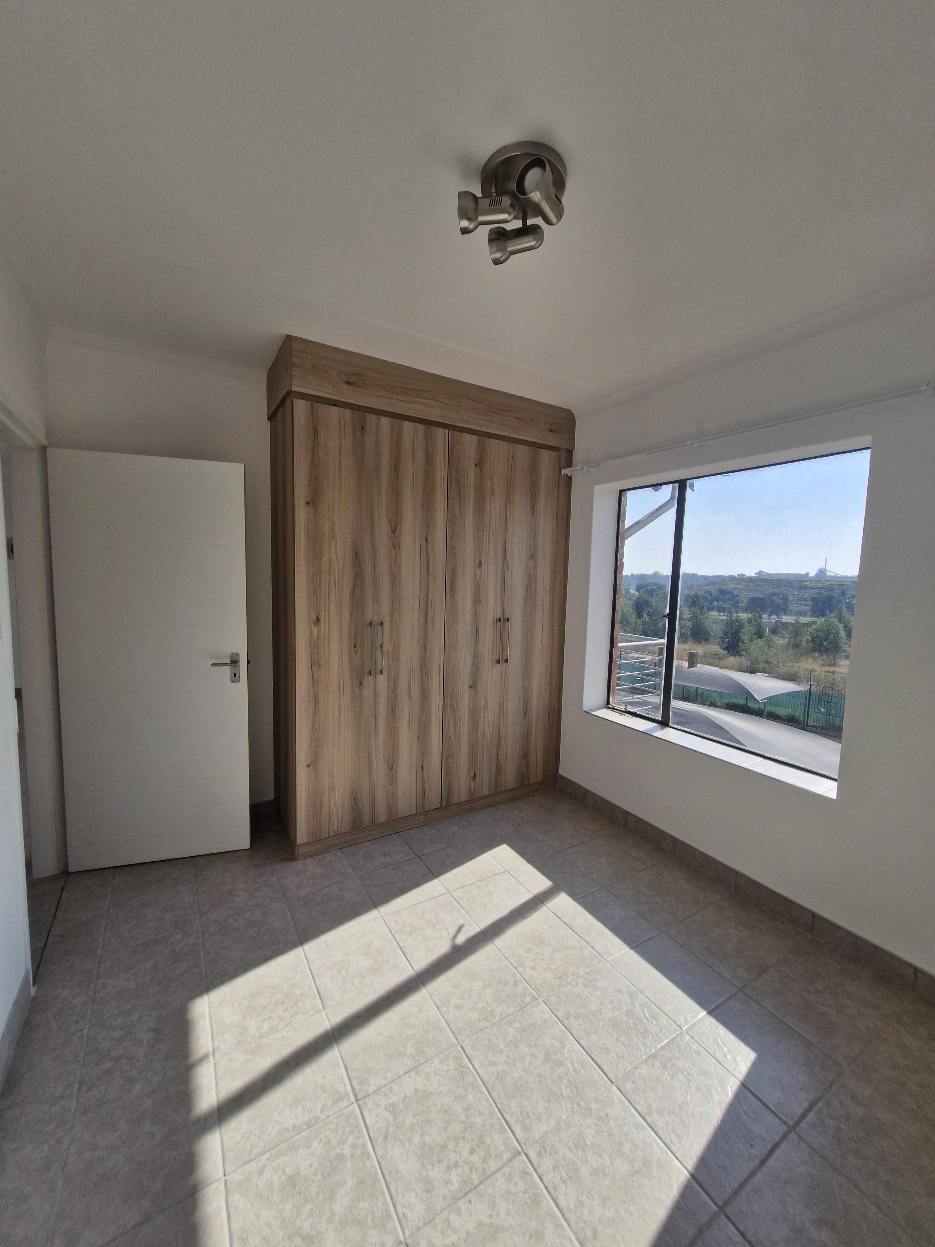The kitchen and lounge are open plan, perfect for easy cleaning and creates a spacious atmosphere. The kitchen is modern with superb finishes and has ample storage cupboards, a fitted stove hob, and an oven. This 2-bedroom unit comes with a lovely balcony looking out on the estate.