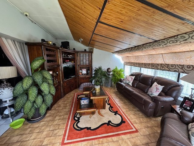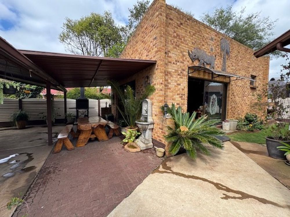 The dining room flows seamlessly into a spacious family room, ideal for everyday living and entertaining. There are four generously sized bedrooms with nine built-in cupboards (BIC), including a luxurious main bedroom with an en-suite. The home offers three bathrooms, a convenient guest loo, and a separate laundry. Additional features include staff quarters, three secure garages, and five carports, providing ample parking.