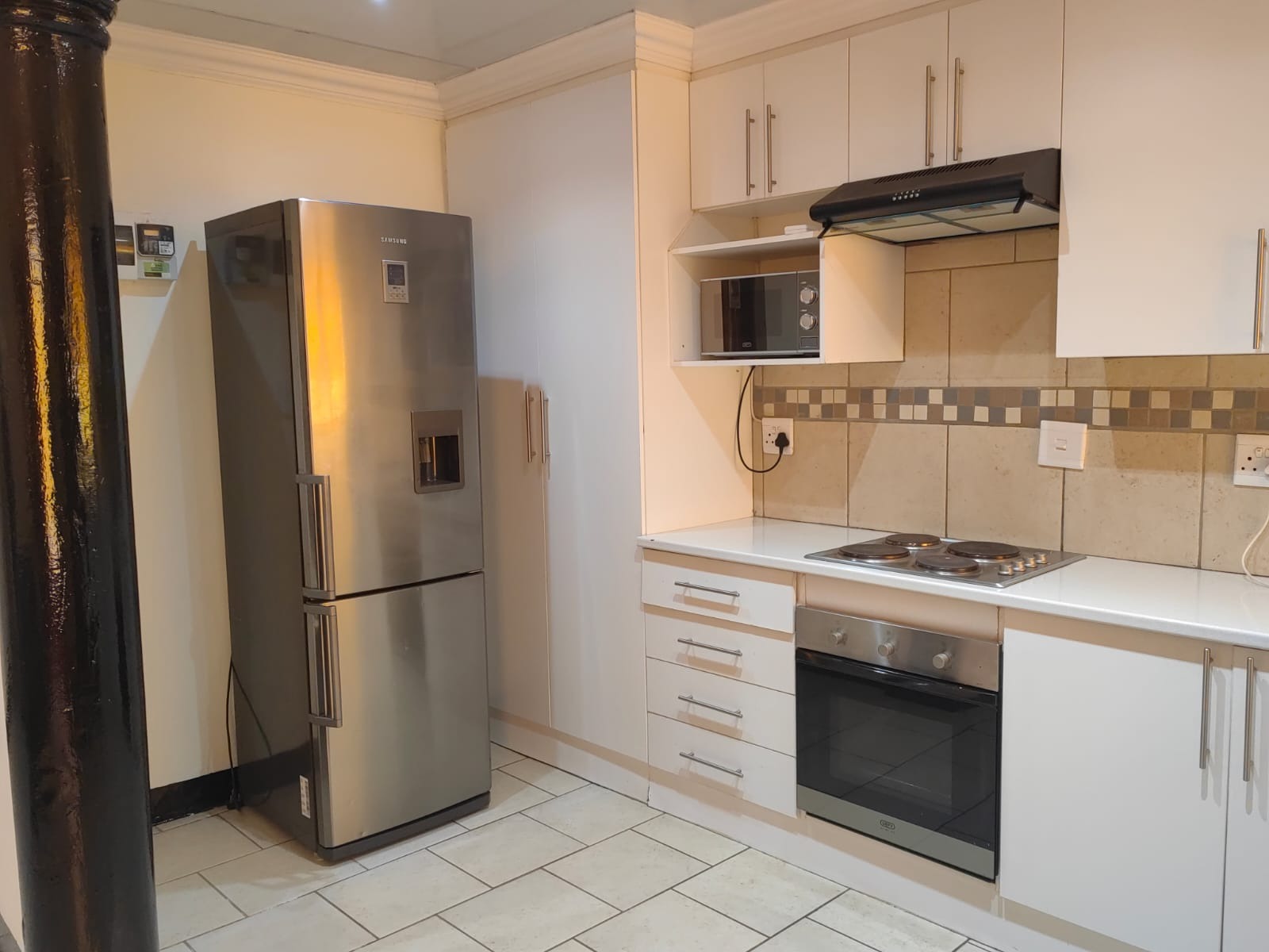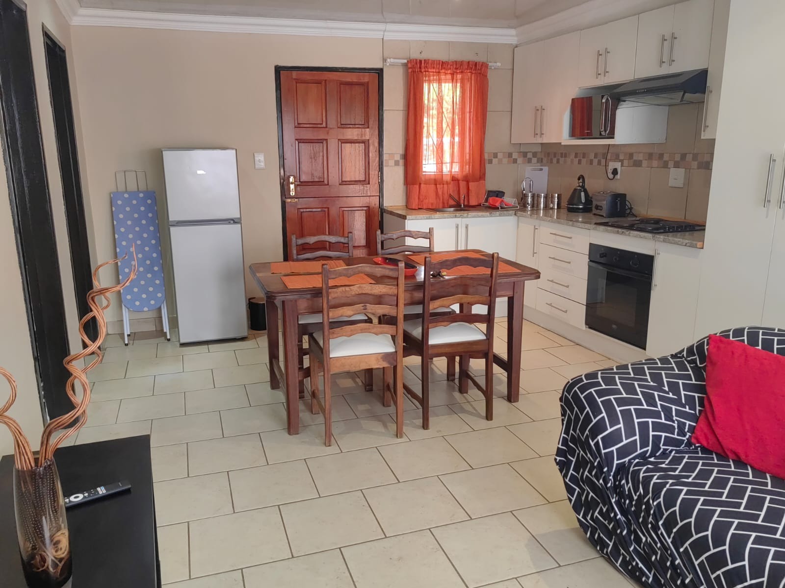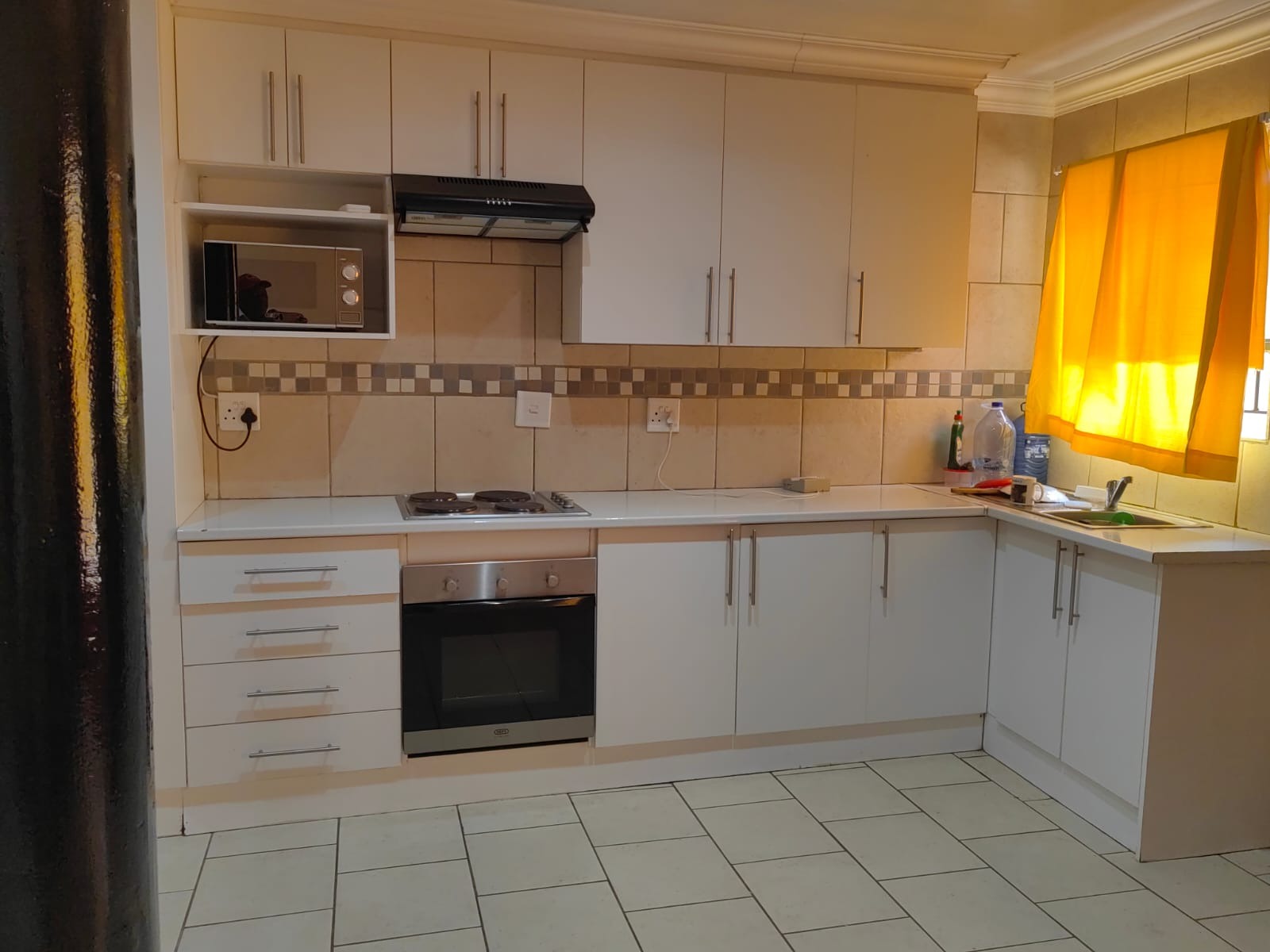 2-Bedroom Unit: Open-plan kitchen and living room, 2 spacious bedrooms with modern built-in cupboards, and a bathroom with a shower. Features include an alarm system, cameras, and armed response.