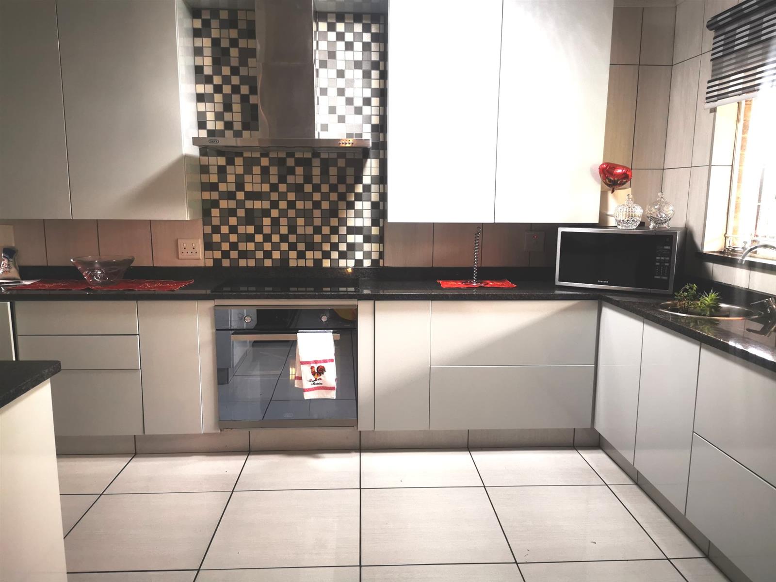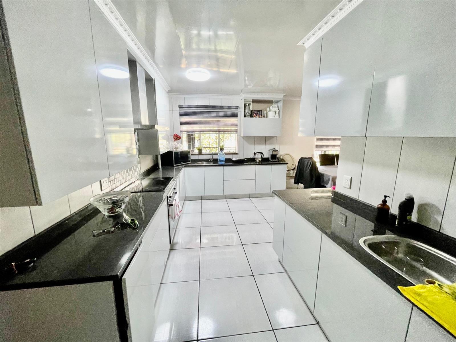 At the heart of the home lies a contemporary, designer kitchen that combines aesthetic appeal with practical functionality. Featuring sleek finishes, ample cabinetry, and generous work surfaces, this space is ideal for both everyday use and culinary creativity. It is a kitchen designed to bring people together — whether for casual breakfasts or elegant dinner gatherings.