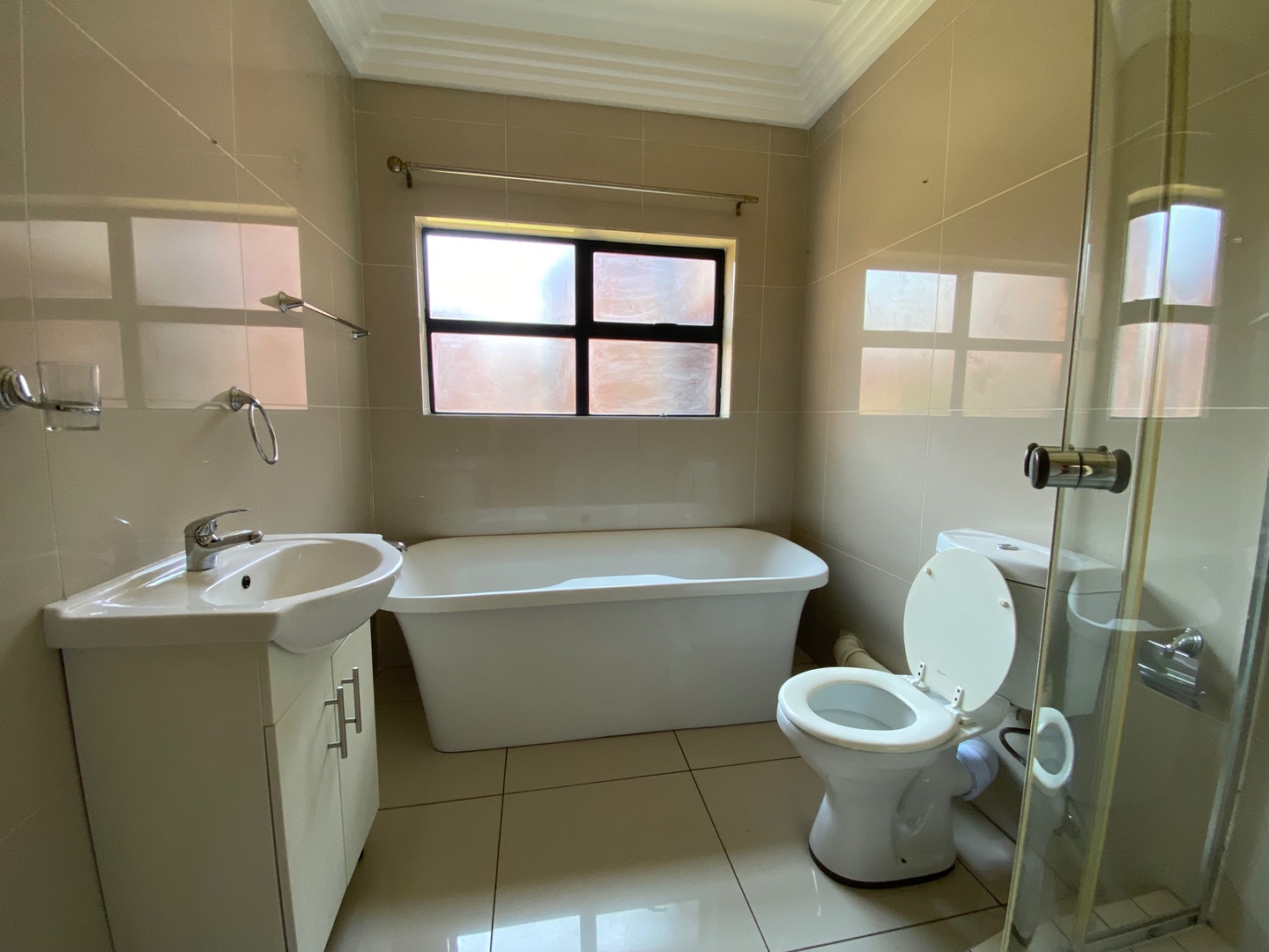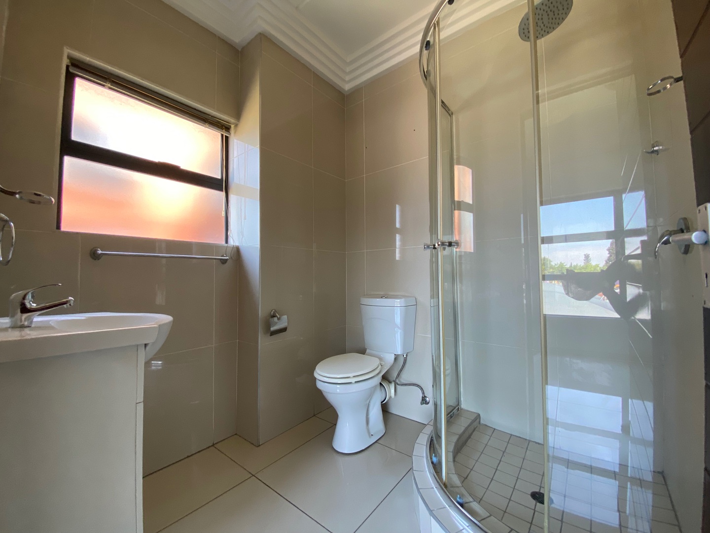 This beautiful, neat as a pin apartment offers three double bedrooms(one en-suit), two modern bath rooms, a large tiled lounge/dining room with an open plan modern kitchen. The under covered patio is large with built-in braai. The parking offers a basement secured parking and secured carport.