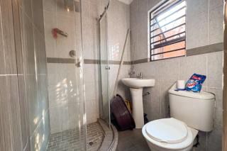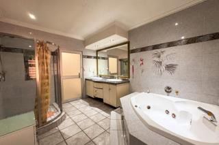Three modern bathrooms cater to family needs. The flatlet includes a kitchen, living area, bedroom, and bathroom. Extras: 16 CCTV cameras, electric fencing, solar-heated pool, fish pond, braai area, 5-car garage, and generous driveway parking. Ideal for refined family living!