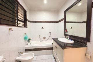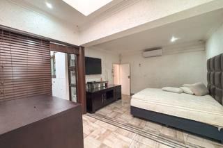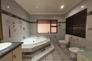 Enjoy the open-plan layout with two lounges, a dining area, and a stylish bar leading to a covered patio and lush garden. The main suite boasts walk-in cupboards and a spa-style en-suite. All bedrooms are tiled with built-in cupboards and aircon.