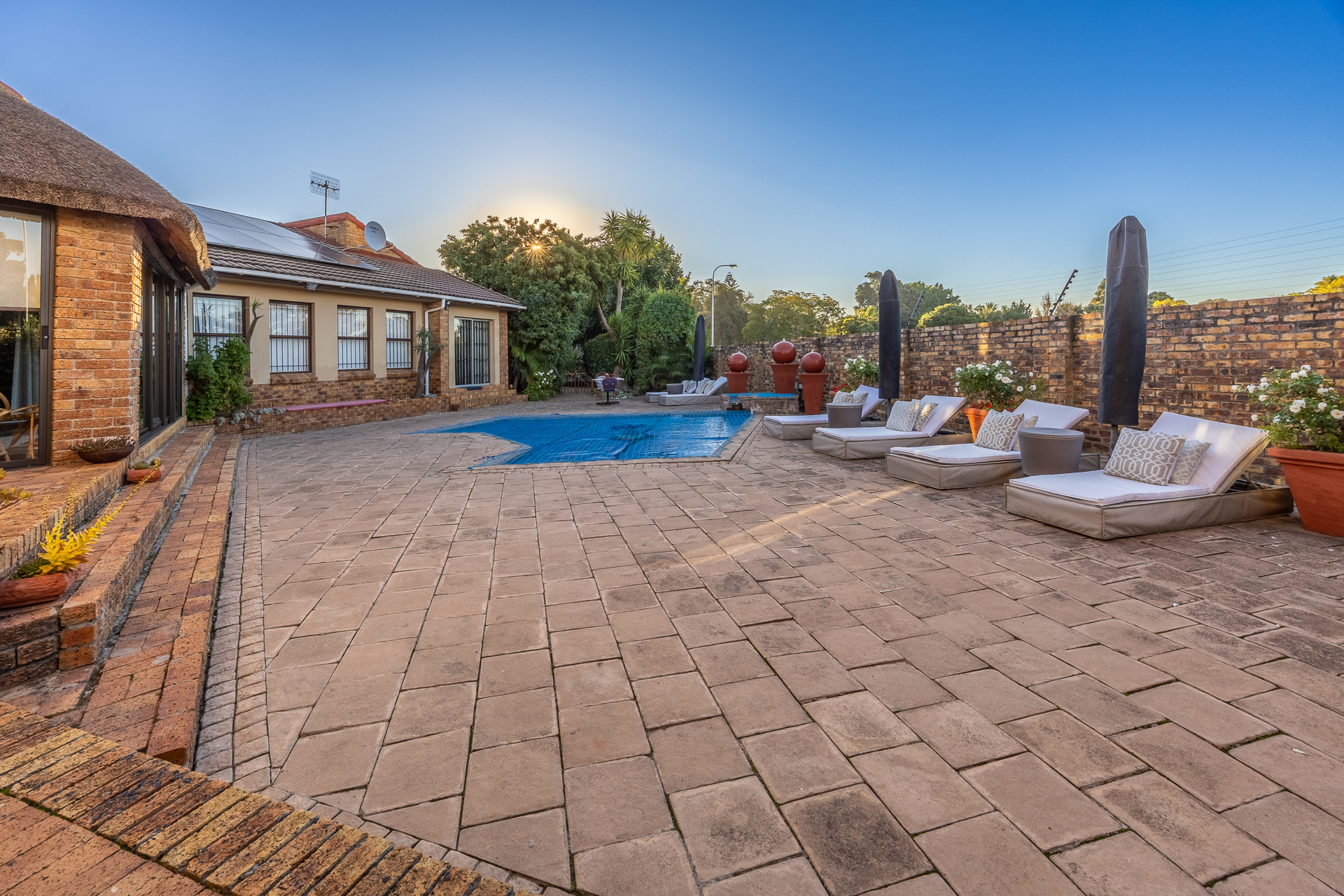 * Spacious open-plan living and dining areas with air conditioning and sliding doors to the pool