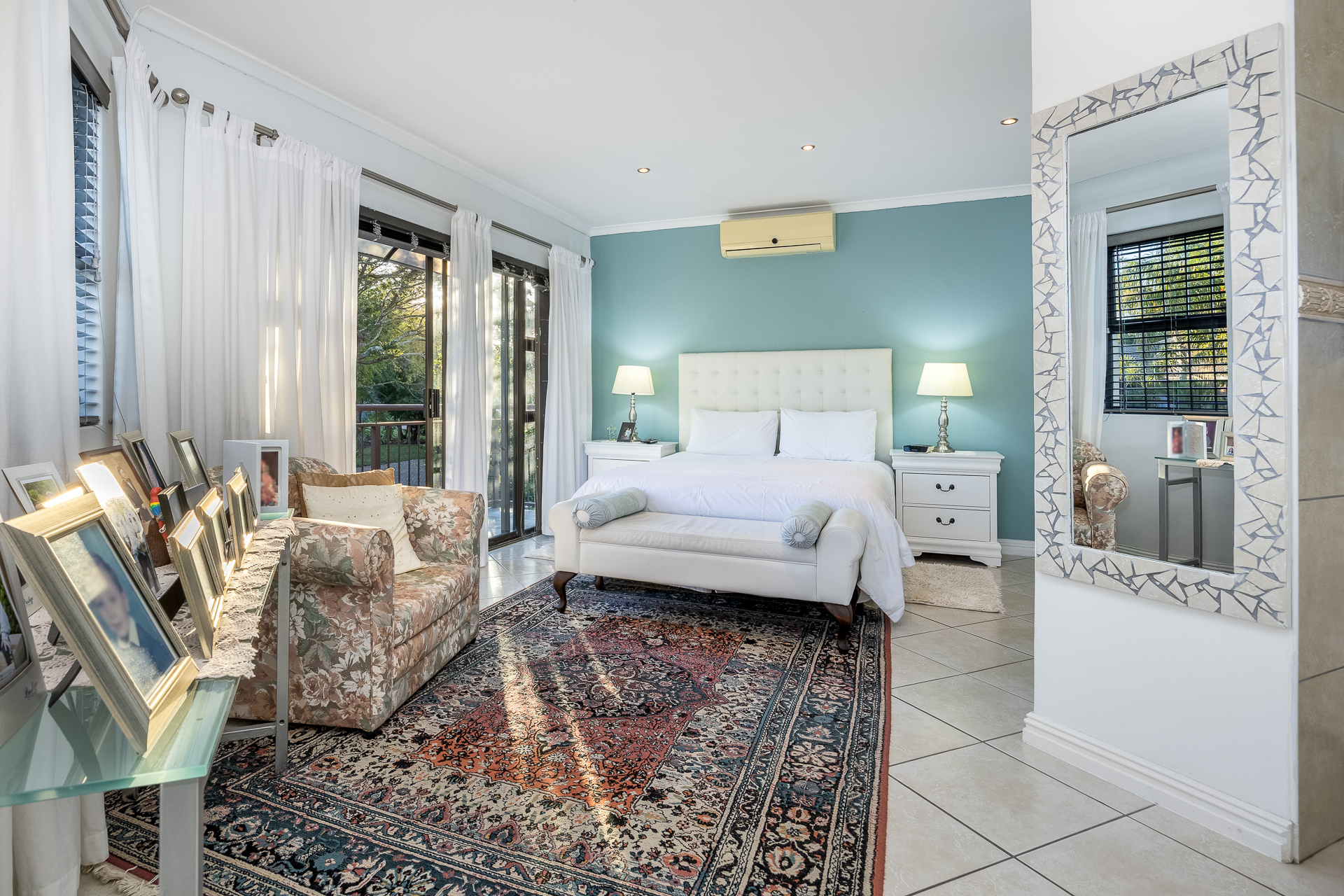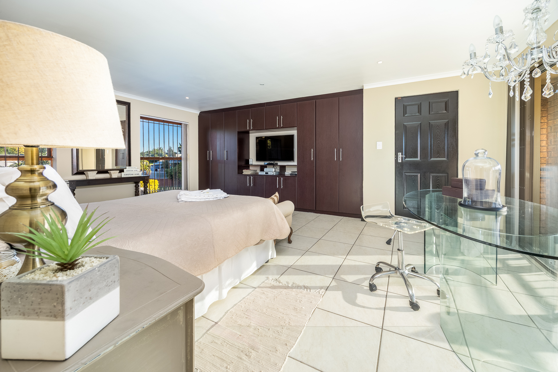 * Large en-suite bedroom with balcony, air conditioning, and built-in cupboards