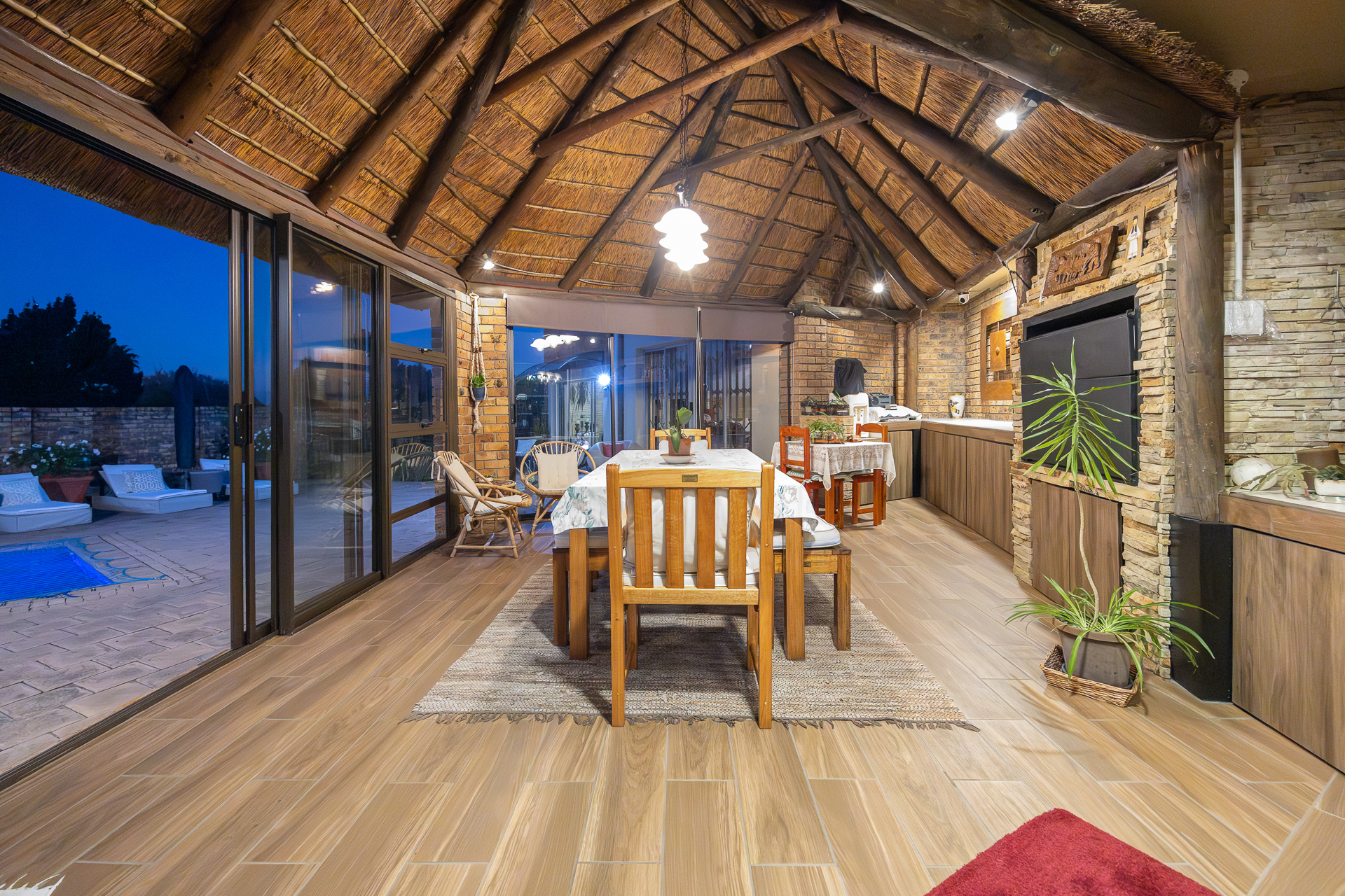 * Entertainment areas with bar and built-in braais