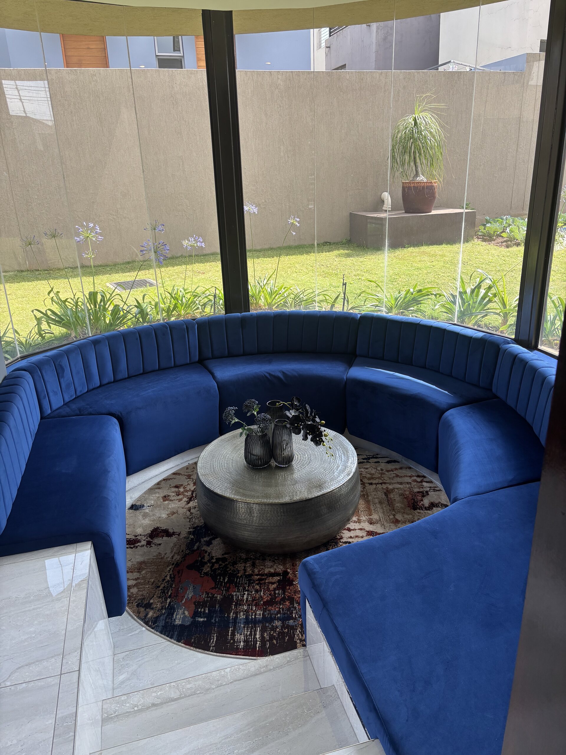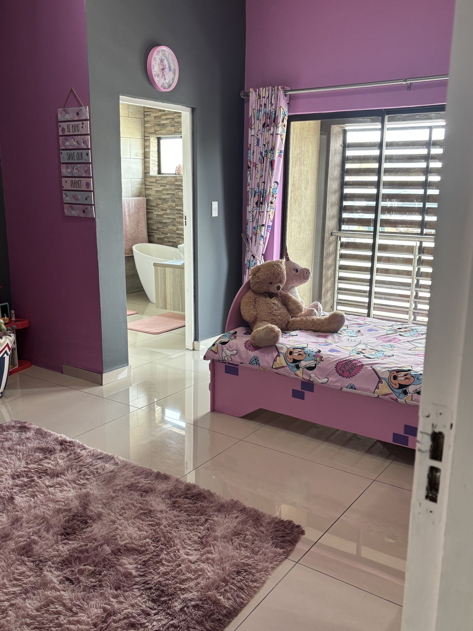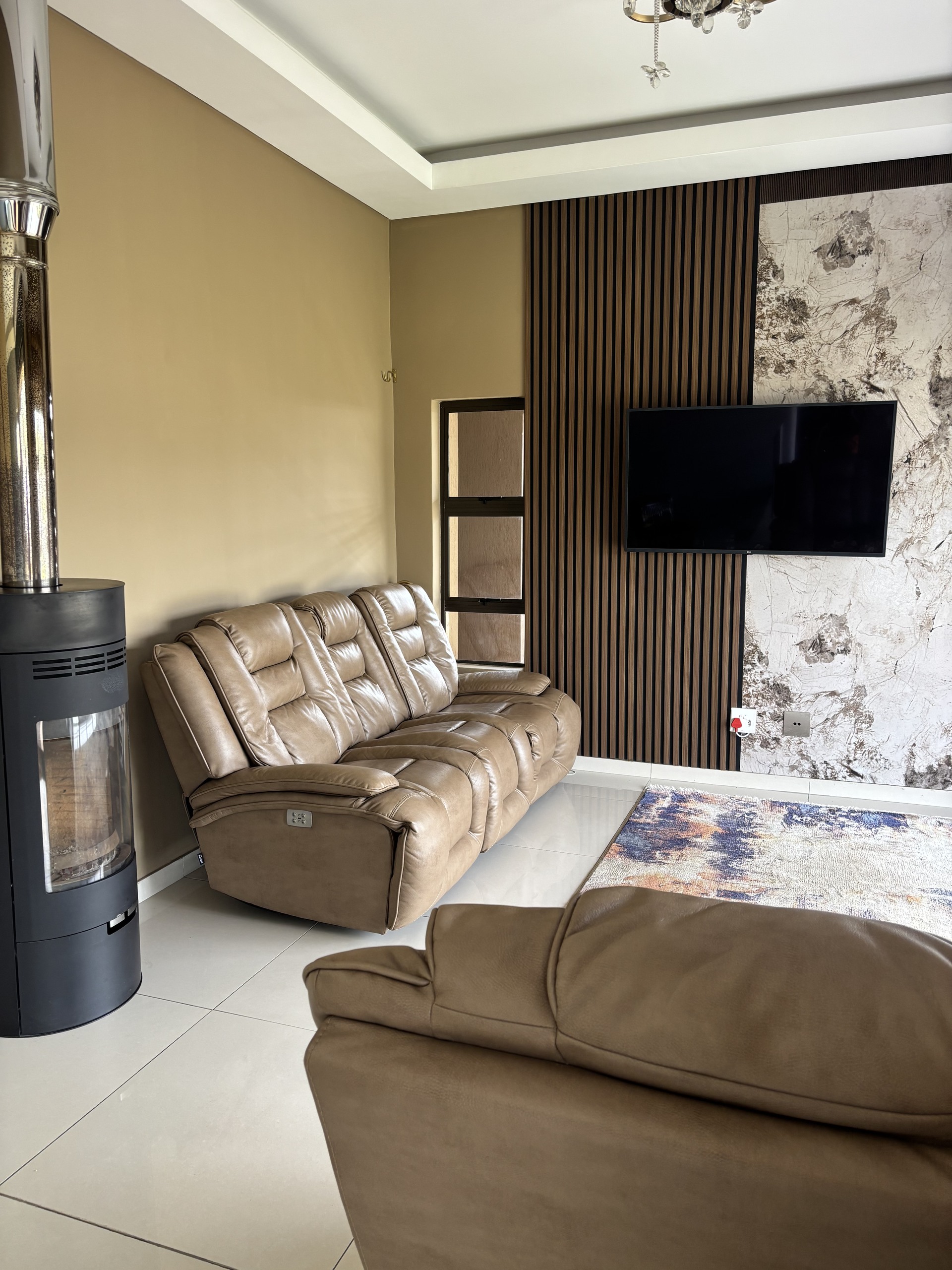 Moving upstairs, you’ll discover a private pyjama lounge with a charming wood-burning fireplace. The remaining three-bedroom suites are also located on this level, with the master bedroom featuring a luxurious bathroom suite and a vast walk-in closet. All the bedrooms have access to balconies. The upper floor also houses a gym, a study, and a laundry room. This home has a pool and caters to every need, offering a staff room and even parking for a golf cart!