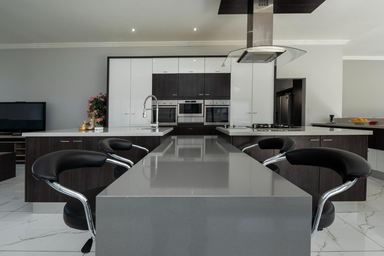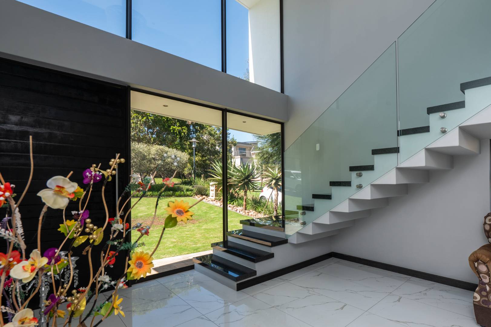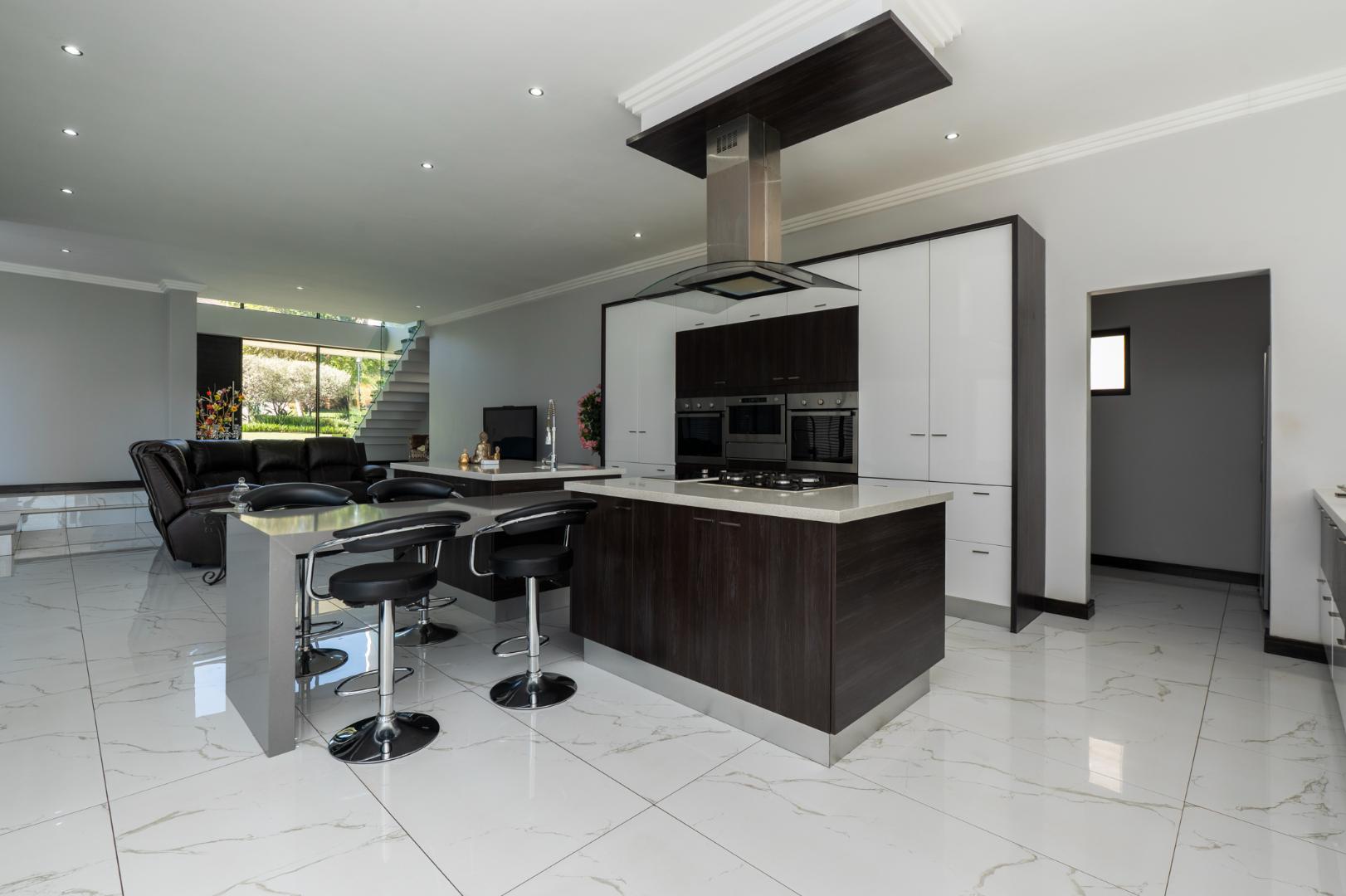 As you enter this architecturally designed home, a stunning chandelier illuminates the entrance area, setting the tone for the home’s elegance with double volume glass and frameless glass feature staircase which adds a modern touch and allows natural light to flow through the home. The downstairs large open plan living area hosts a comfortable formal lounge, spacious kitchen and dining room.