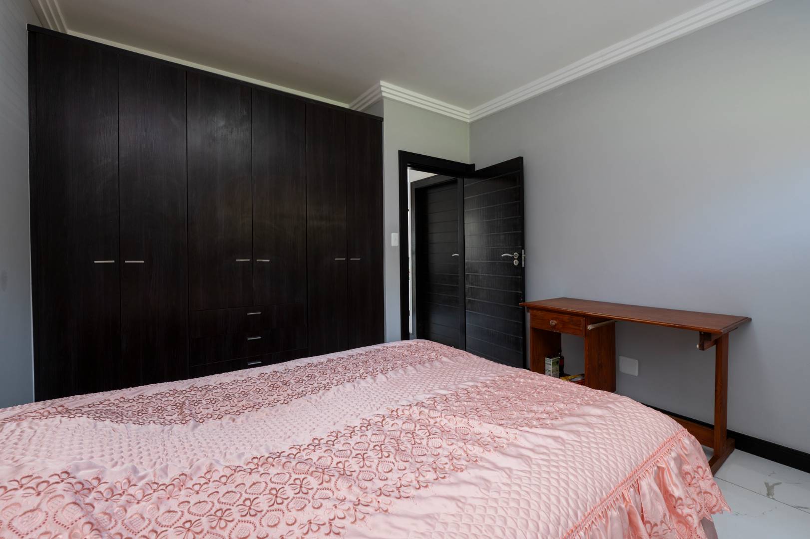 The double garage is extra large and has space for either a workshop or motorbikes, bicycles or other ‘toys’