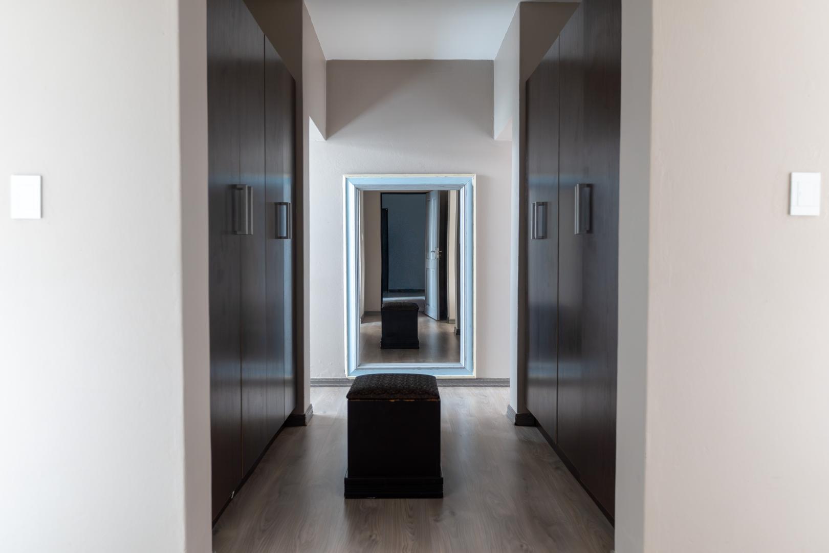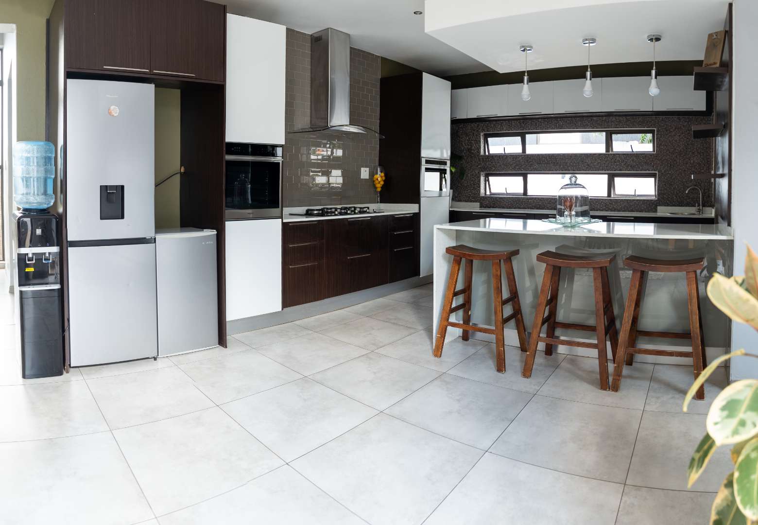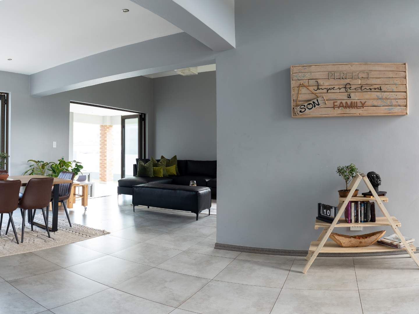 From the moment you arrive, you’ll be greeted by a welcoming atmosphere. The home boasts two spacious lounges, offering versatile spaces for everyday living and effortless entertaining. At the heart of this residence is a well-appointed kitchen with a separate scullery, thoughtfully designed for functionality while maintaining a connection to the living areas.