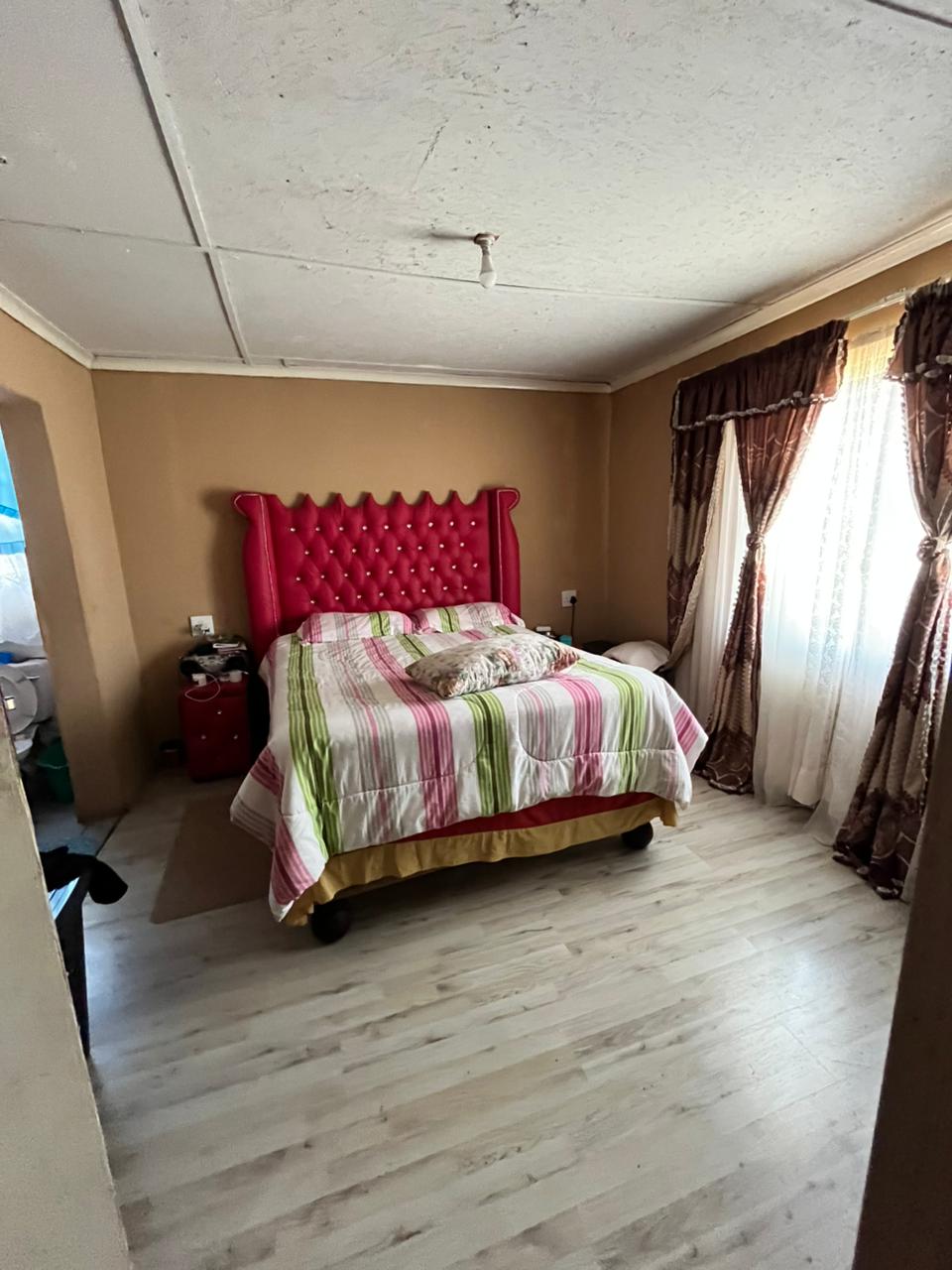 This three-bedroom house is located in Ezibeleni Zone 2, conveniently close to Ikhala College and Bulelani High School. The main bedroom features an en-suite bathroom fitted with a shower. The kitchen is equipped with built-in cupboards, providing ample storage space. The property boasts a spacious yard with sufficient parking space.