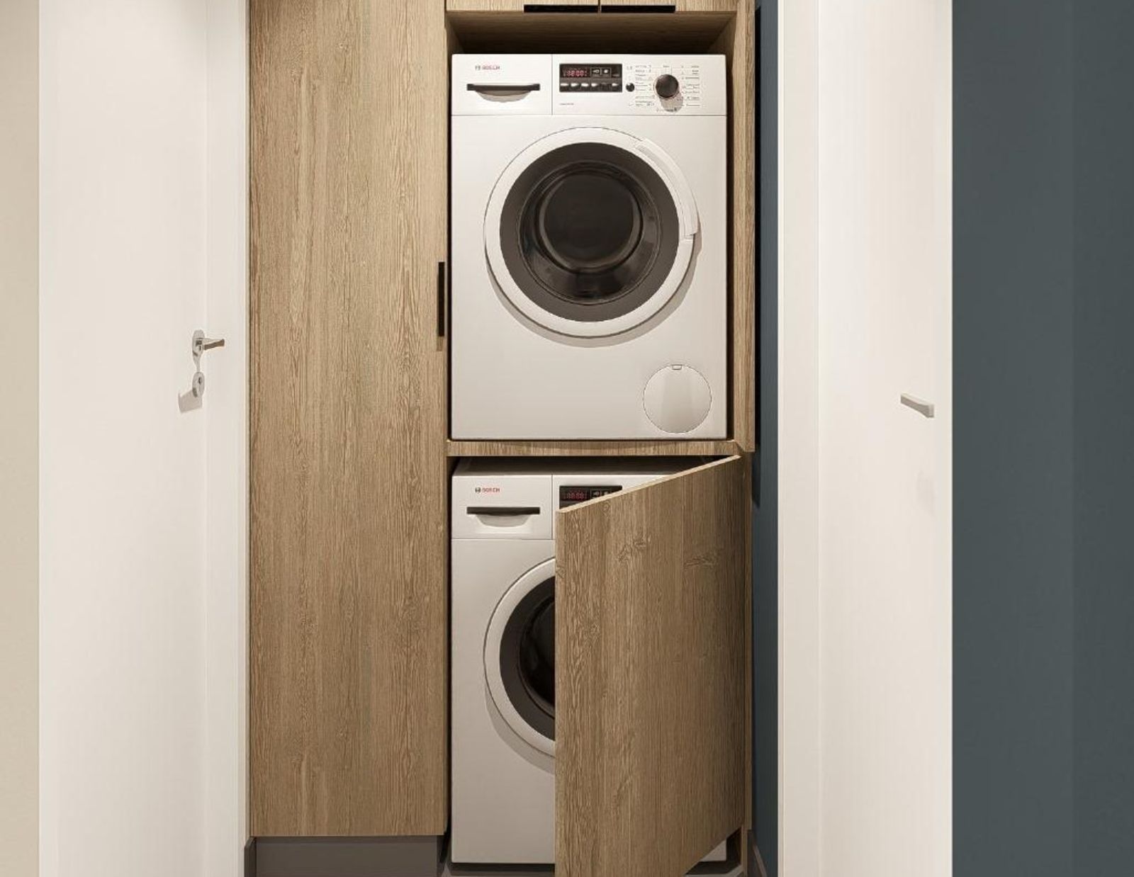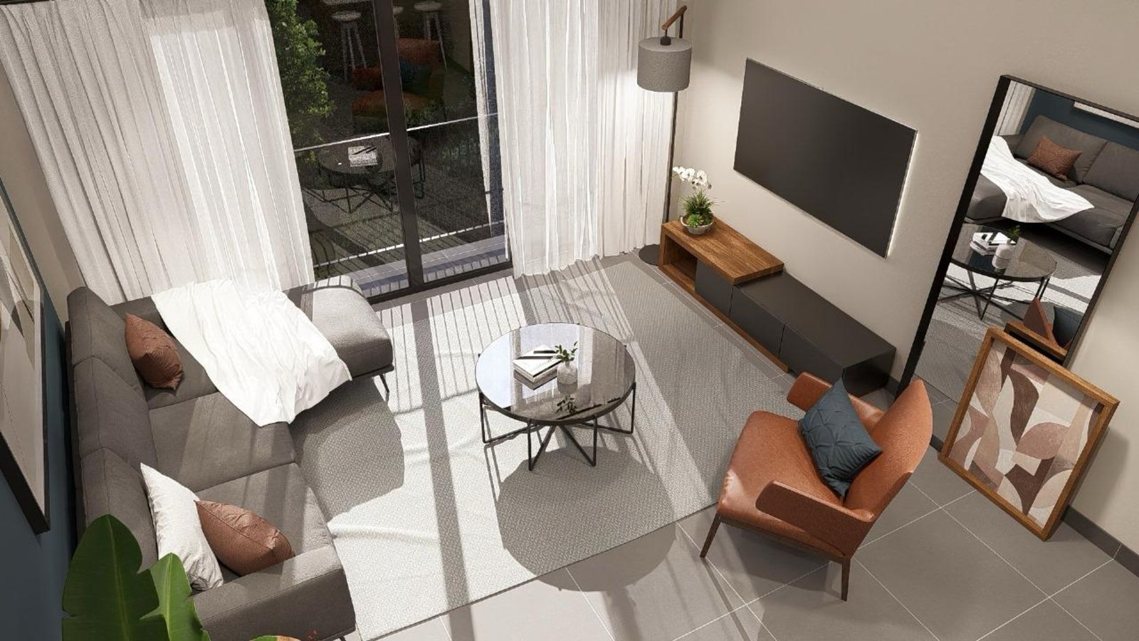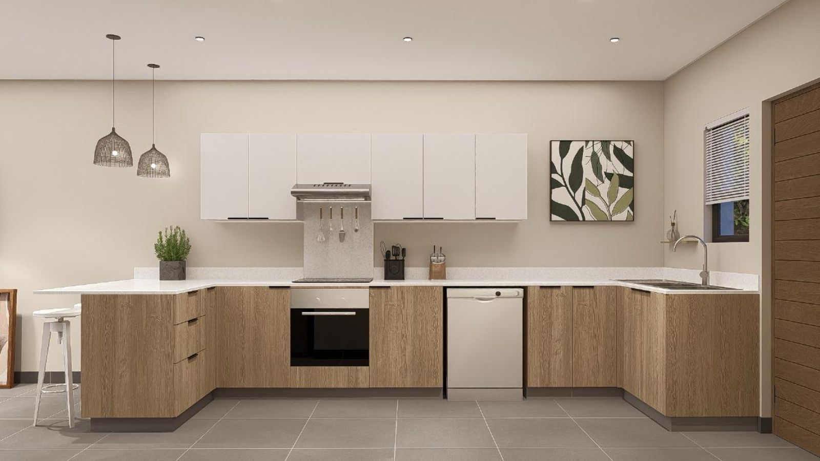 Each apartment is thoughtfully designed with elegance and functionality in mind. The open-plan kitchen is beautifully appointed with sleek cabinetry, gas hob, electric oven, and designated space for two under-counter appliances, flowing seamlessly into a living area.