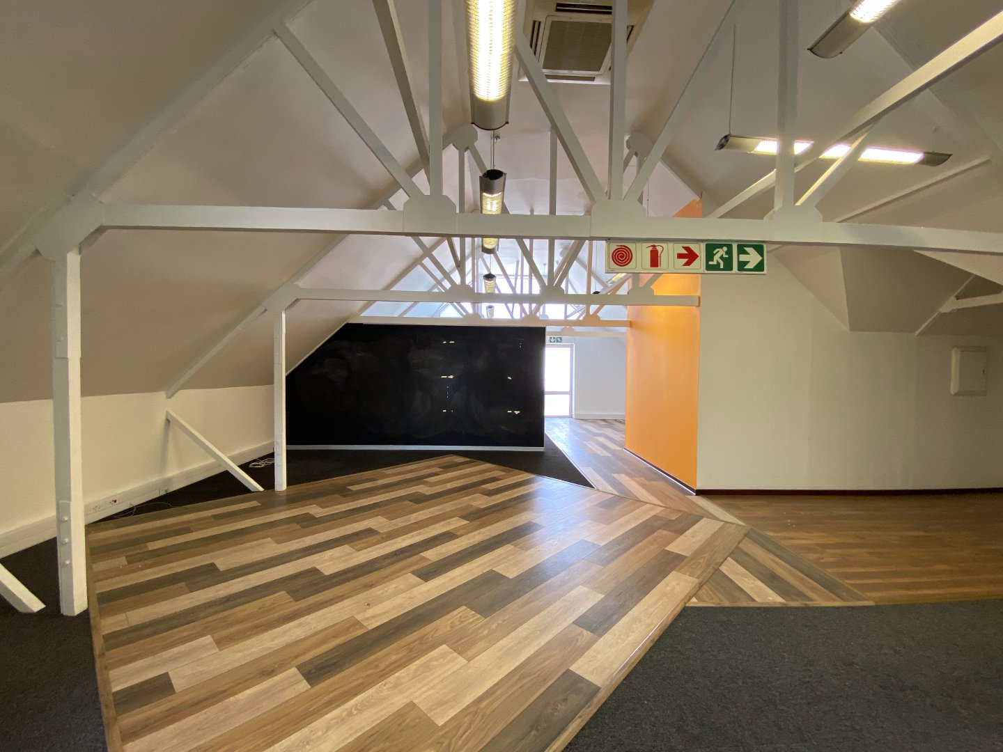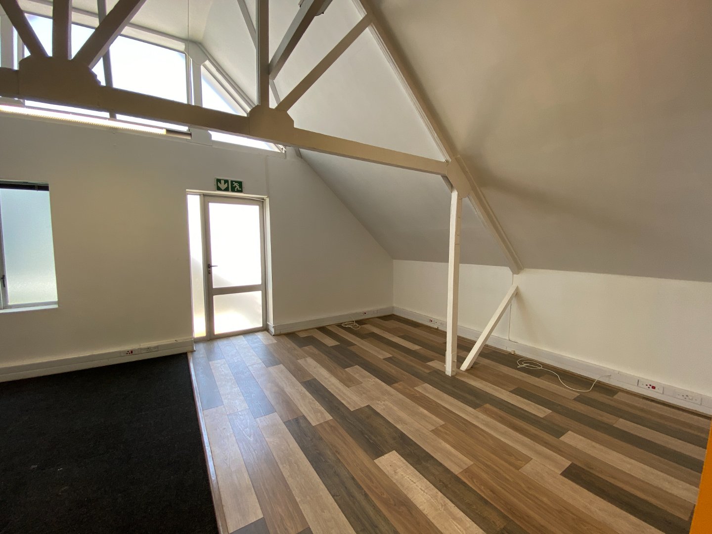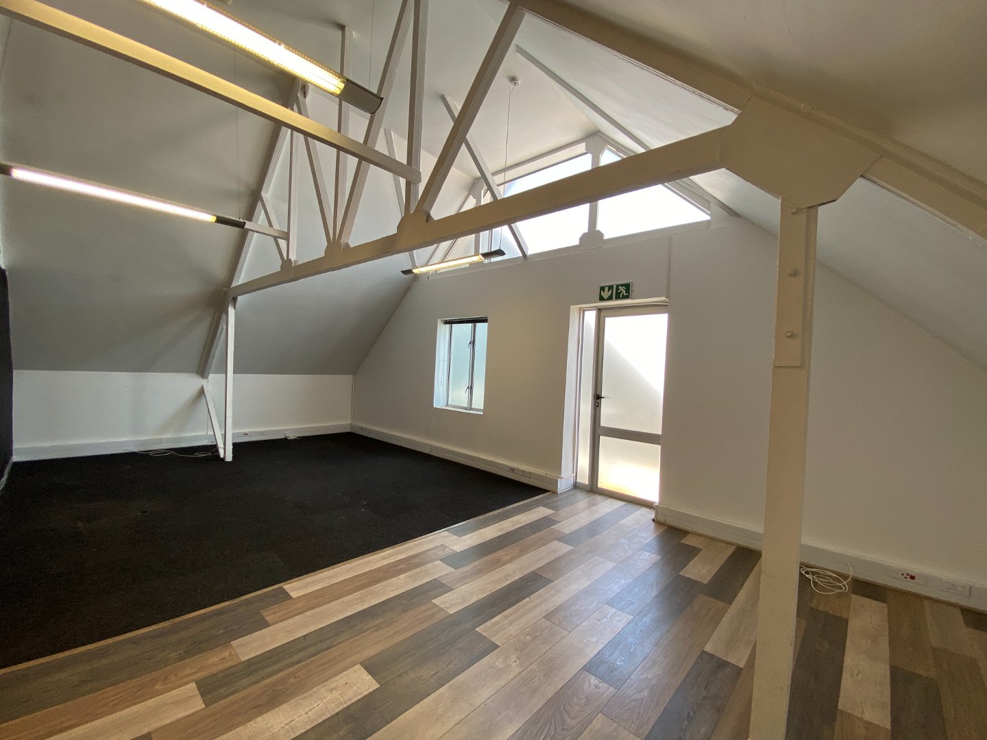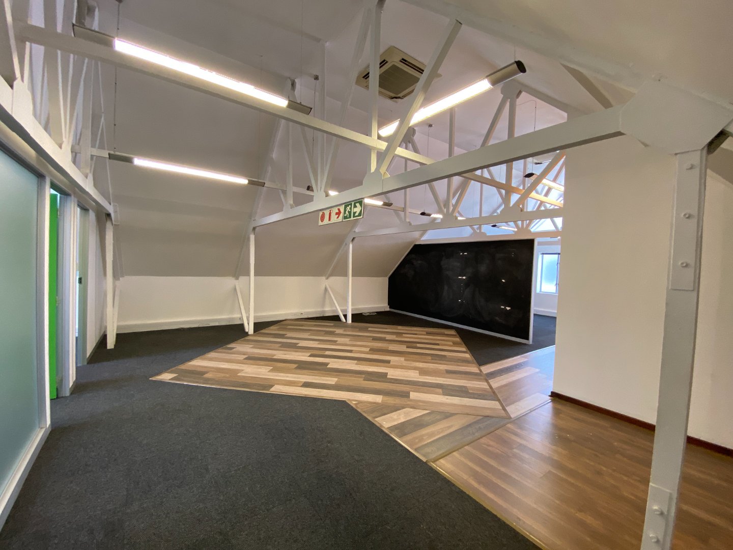 This loft office features 2 private offices, an open plan element as well as a kitchen. Office is airconditioned and there is a small outside area by the fire escape.