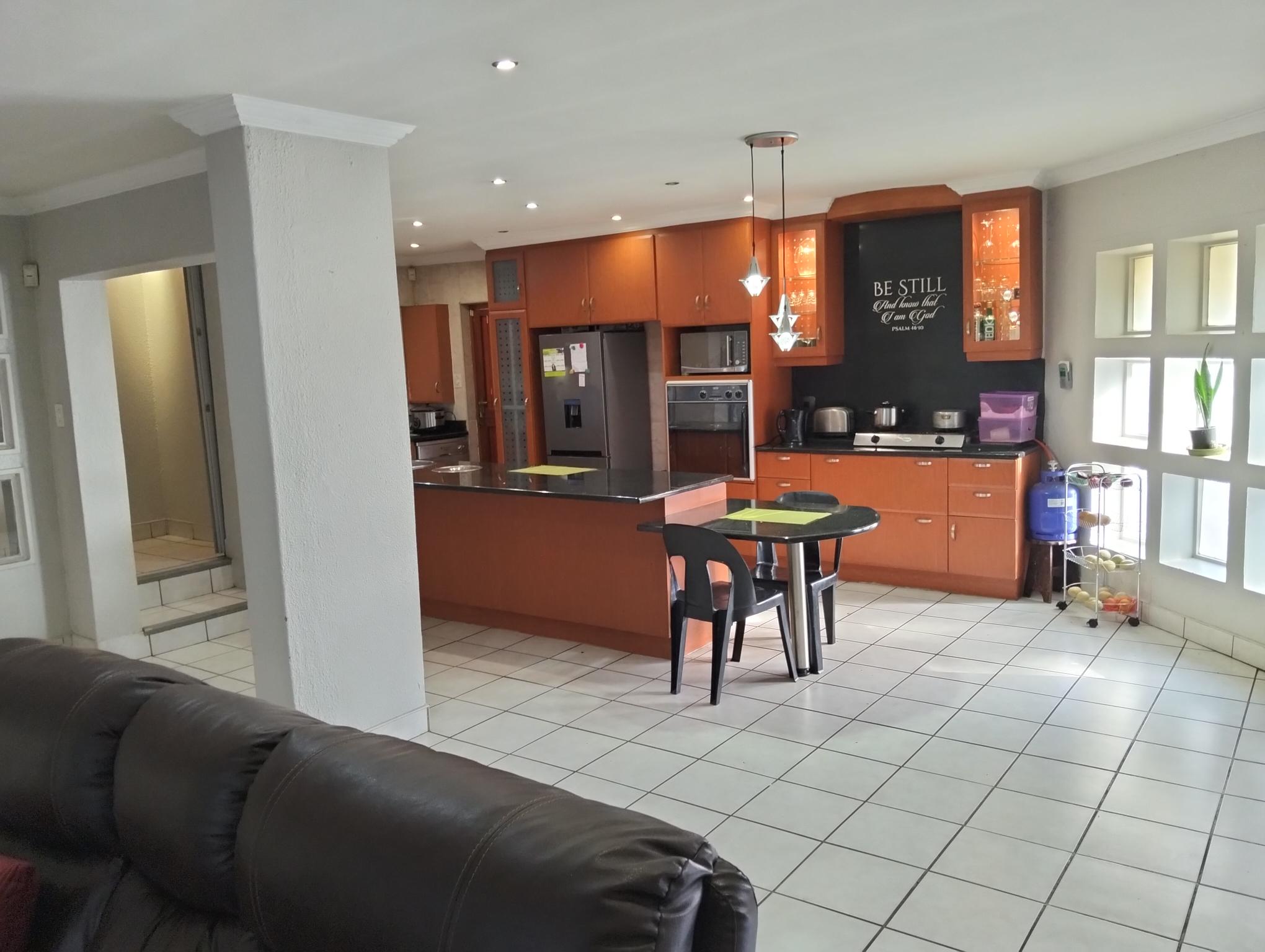 Kitchen with granite finishes and ample cupboard space and breakfast nook.