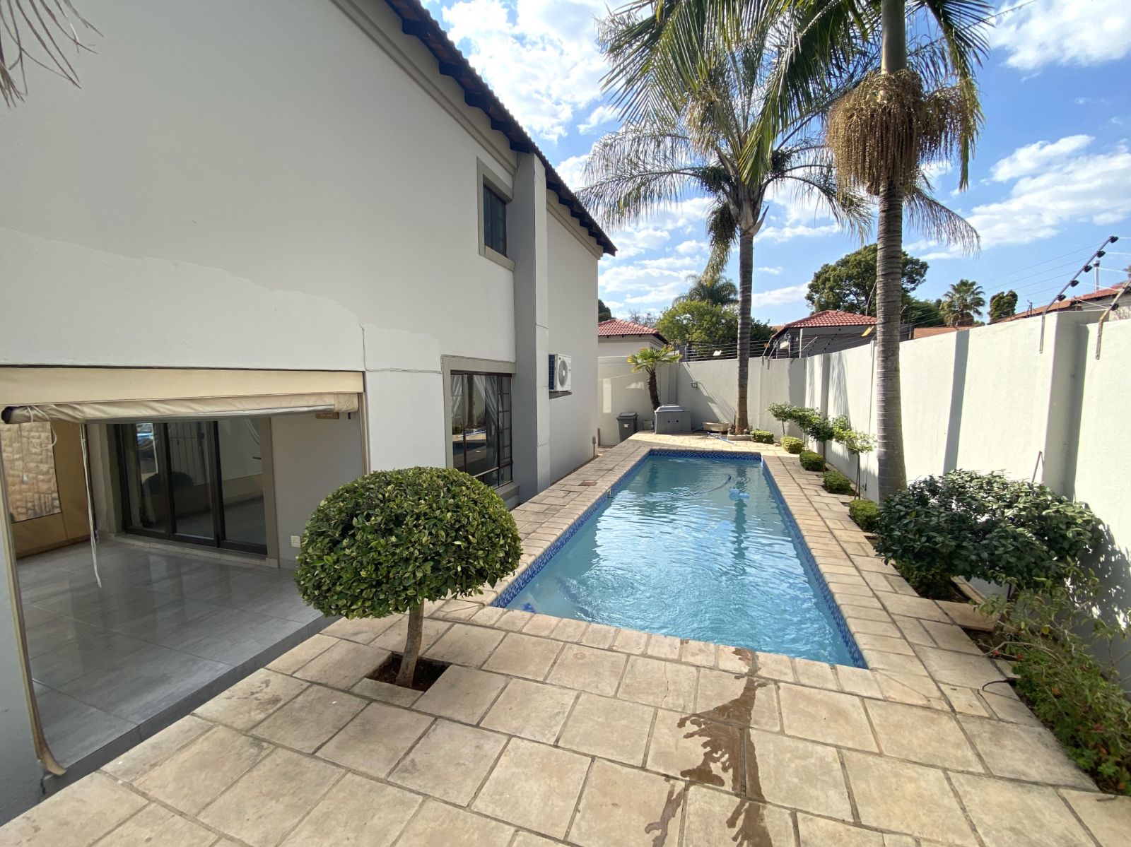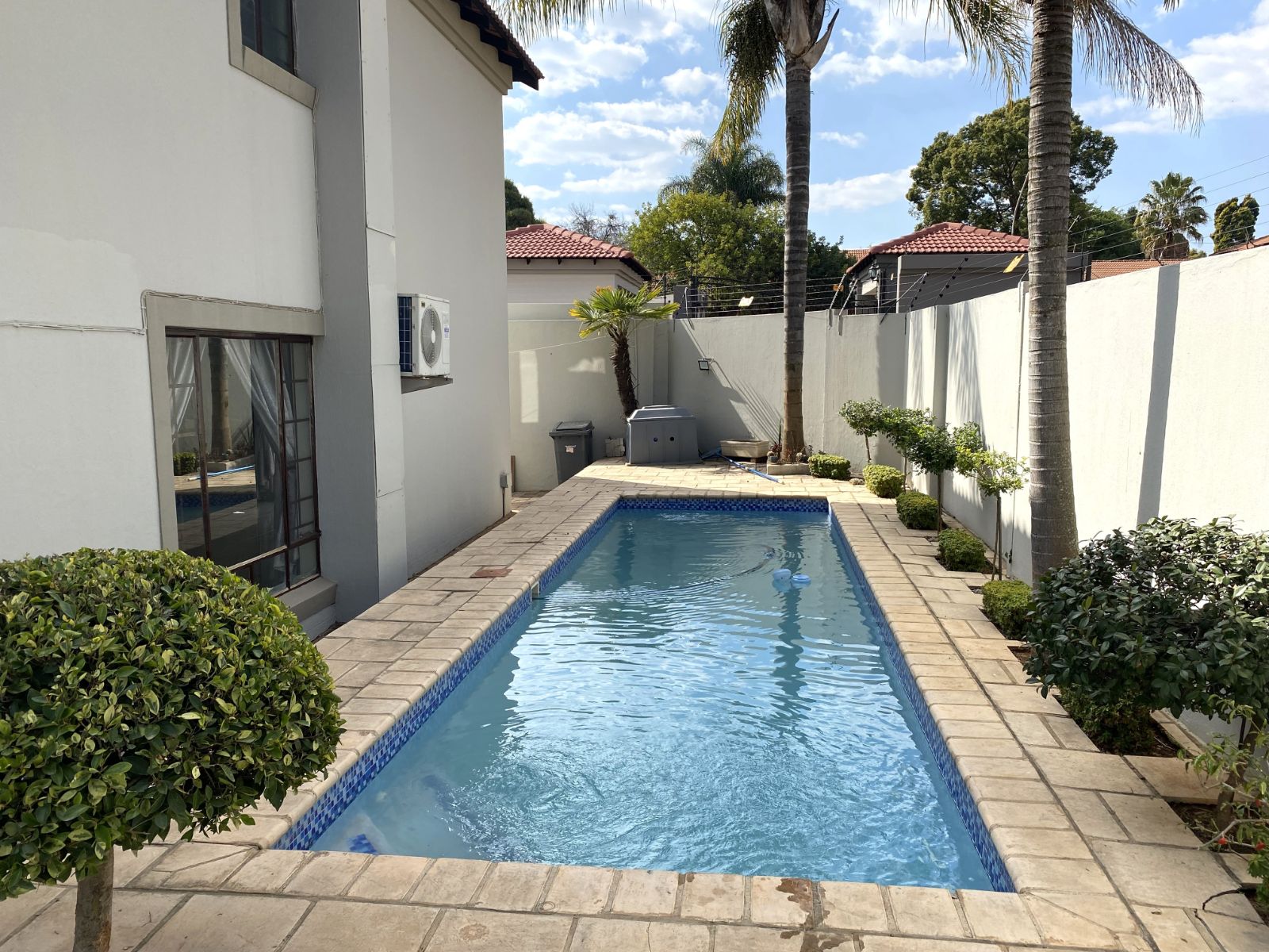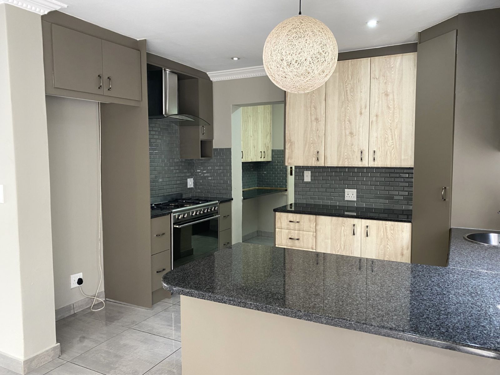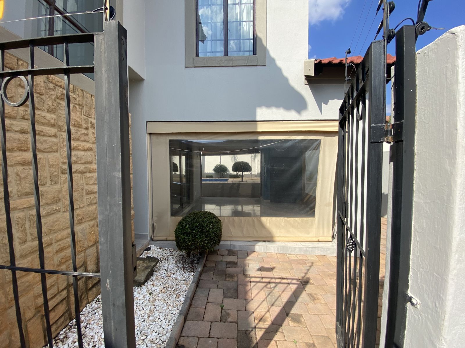 The living area opens up to an enclosed patio with a built-in braai, flowing seamlessly to a sparkling private pool set in a fully enclosed garden — perfect for entertaining or unwinding in total privacy.