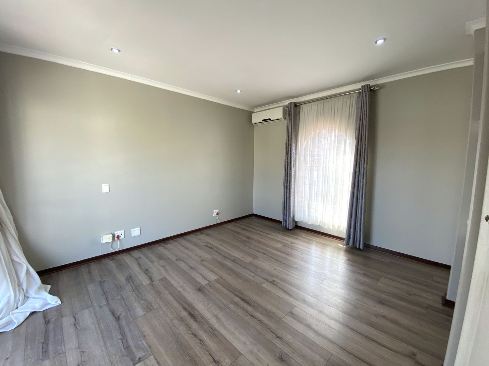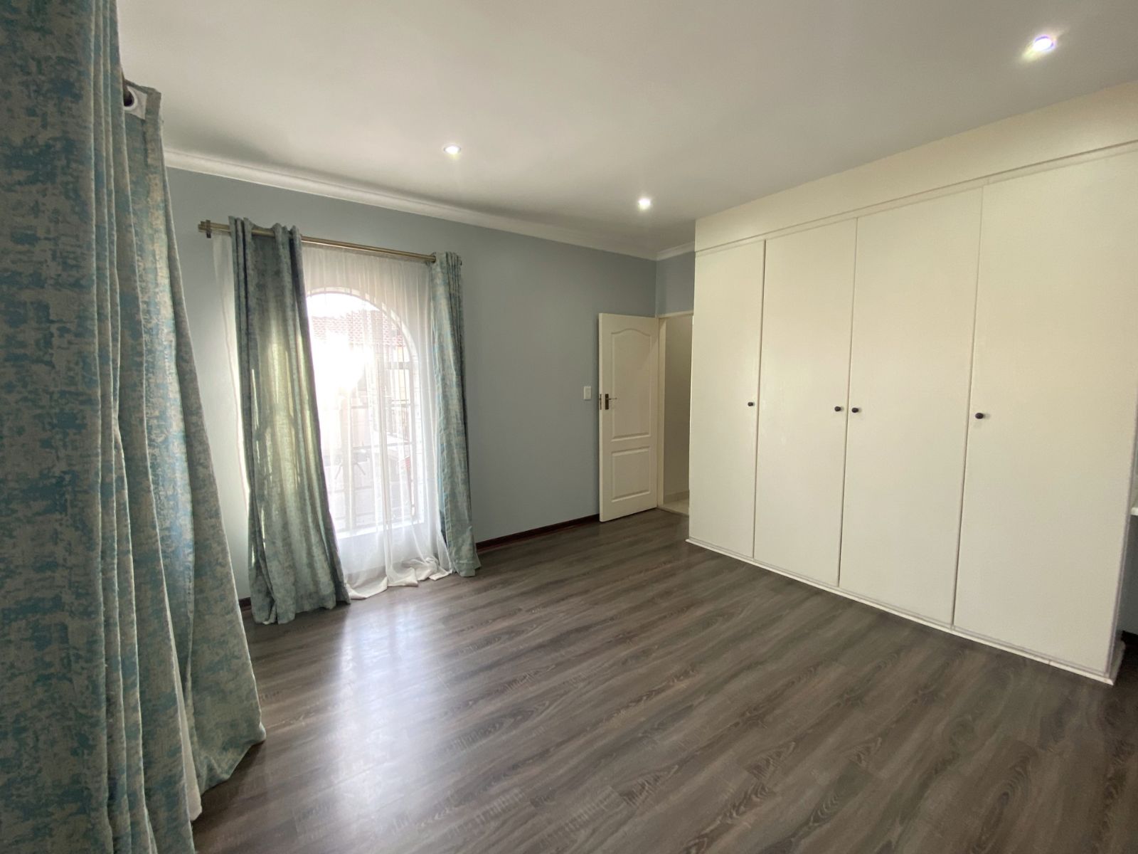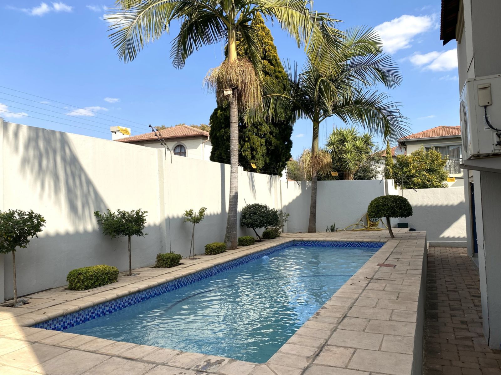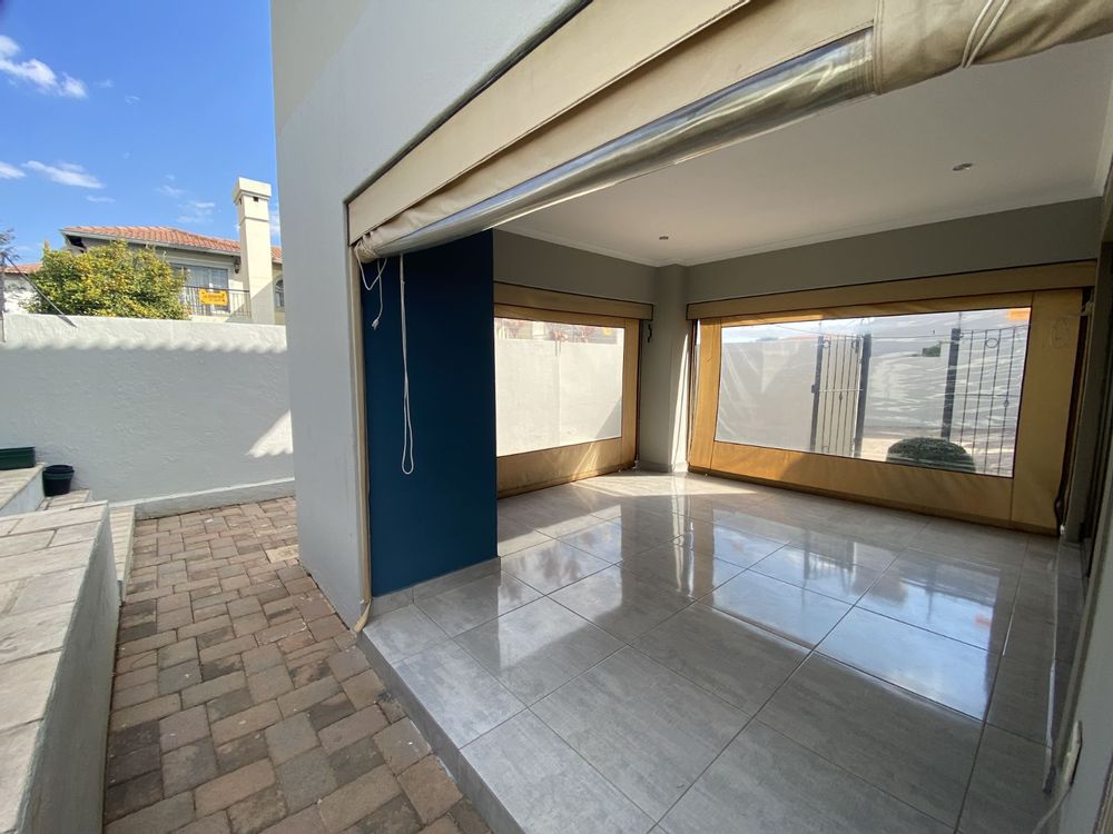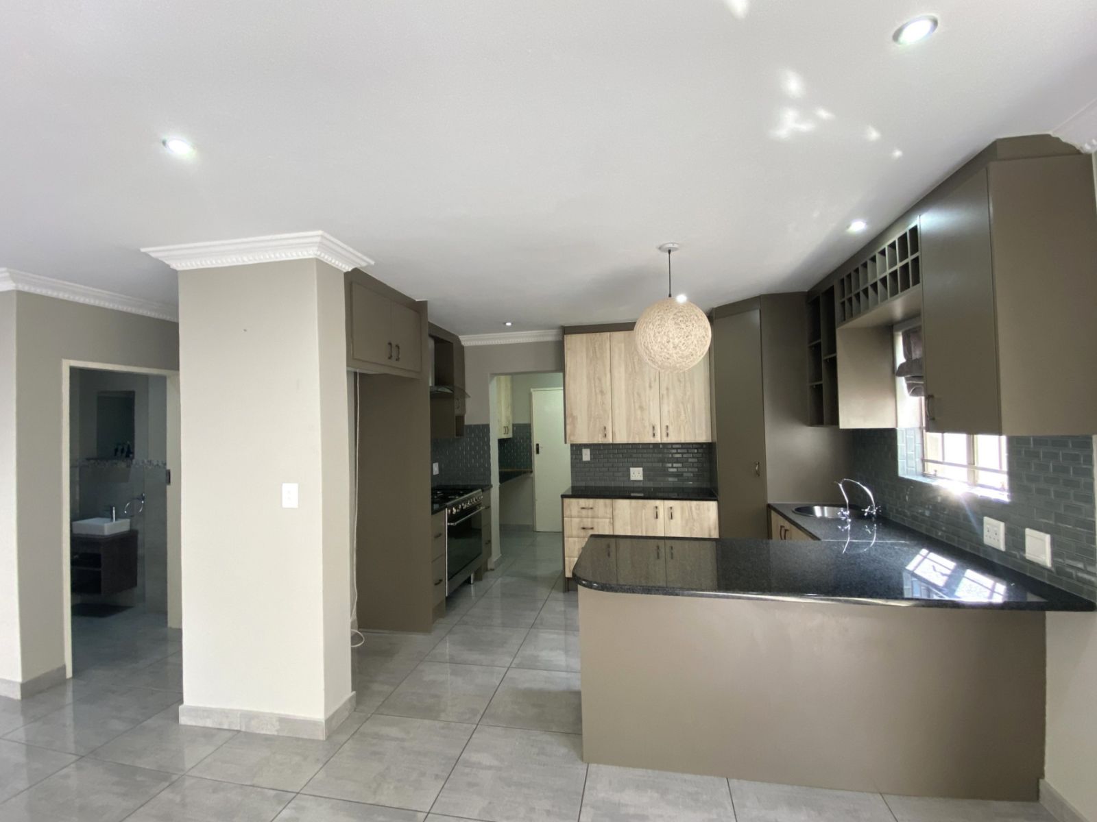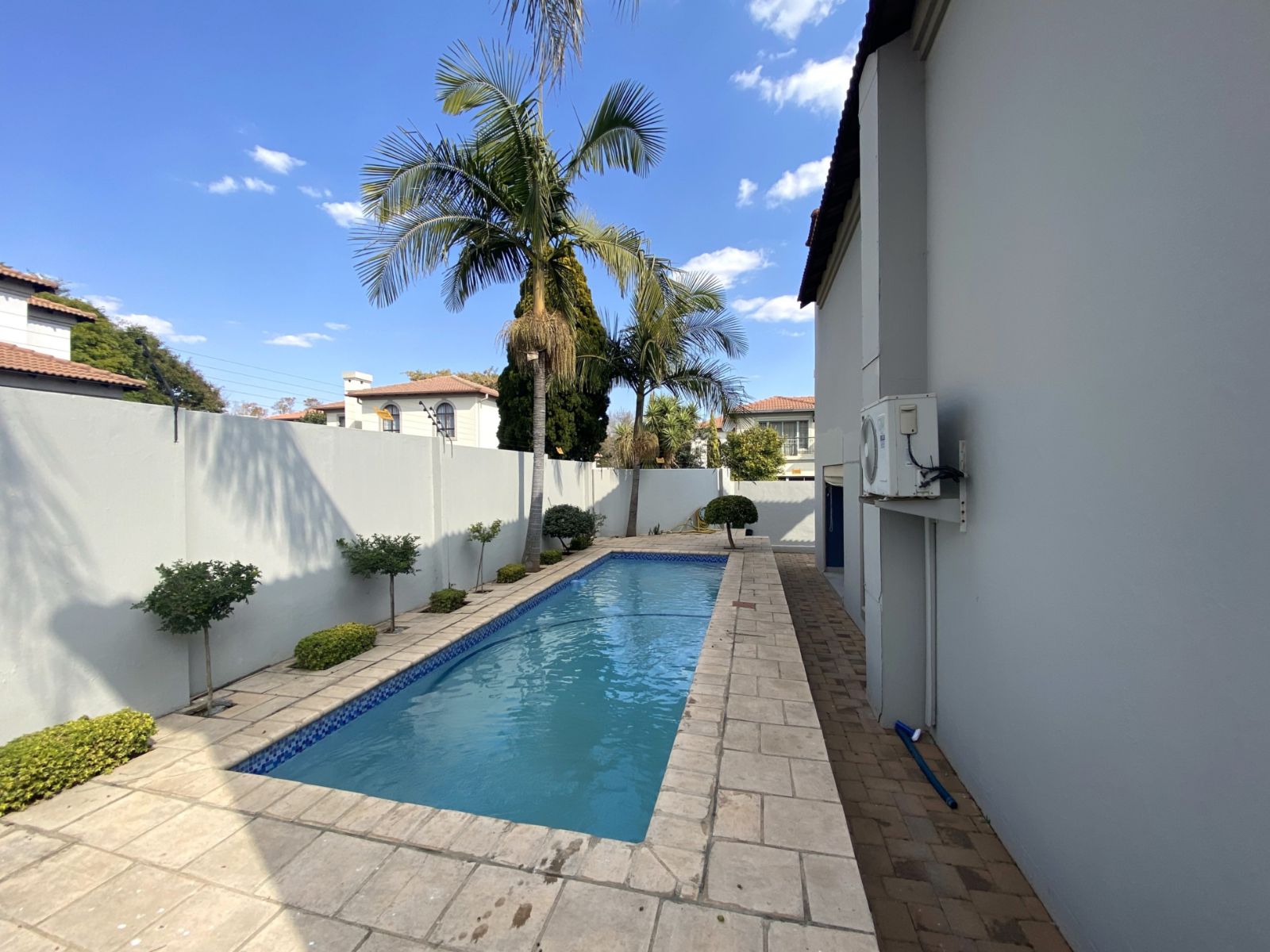 The living area opens up to an enclosed patio with a built-in braai, flowing seamlessly to a sparkling private pool set in a fully enclosed garden — perfect for entertaining or unwinding in total privacy.