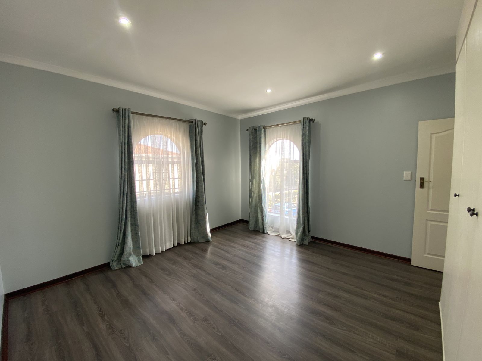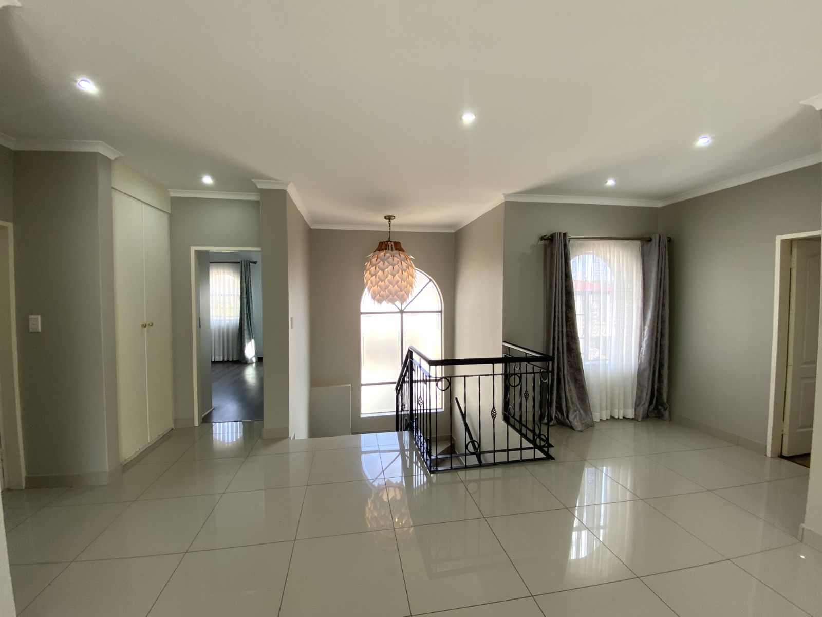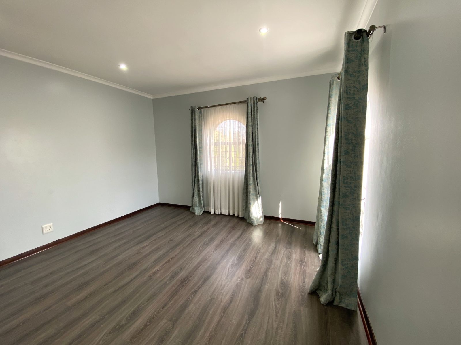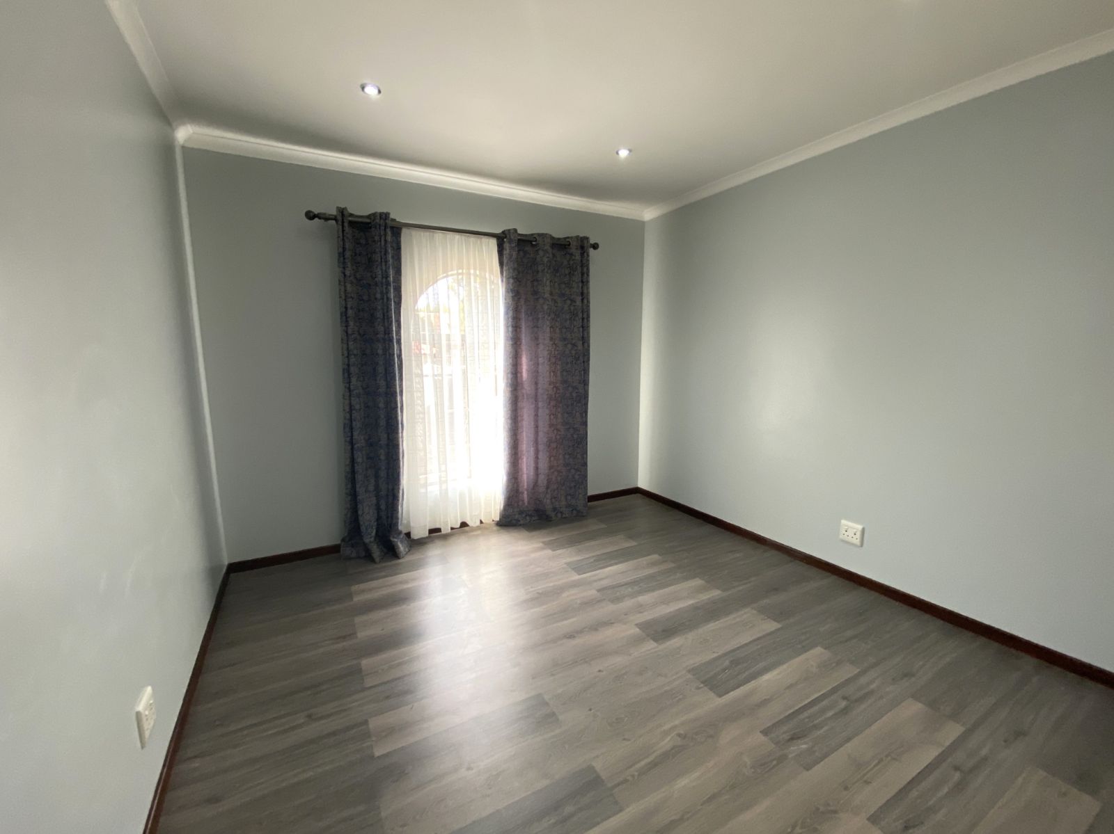 The living area opens up to an enclosed patio with a built-in braai, flowing seamlessly to a sparkling private pool set in a fully enclosed garden — perfect for entertaining or unwinding in total privacy.