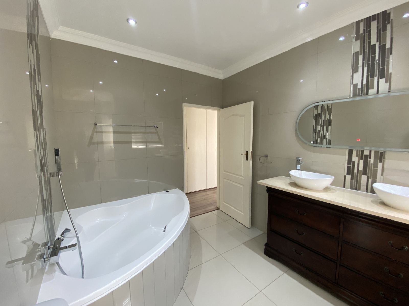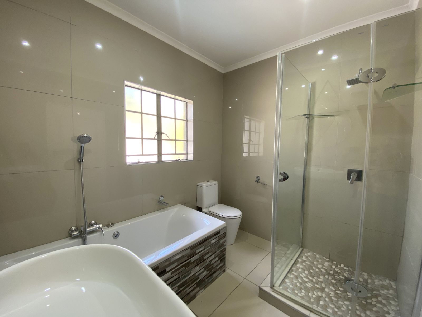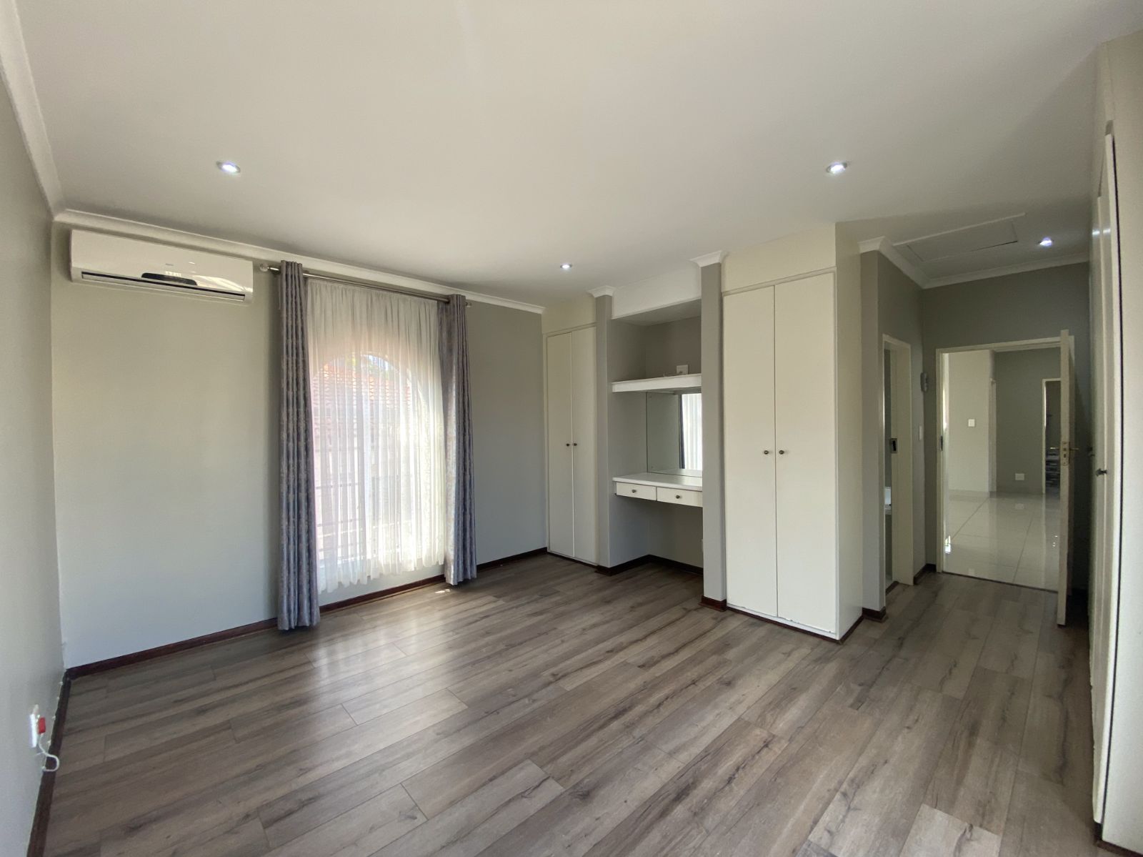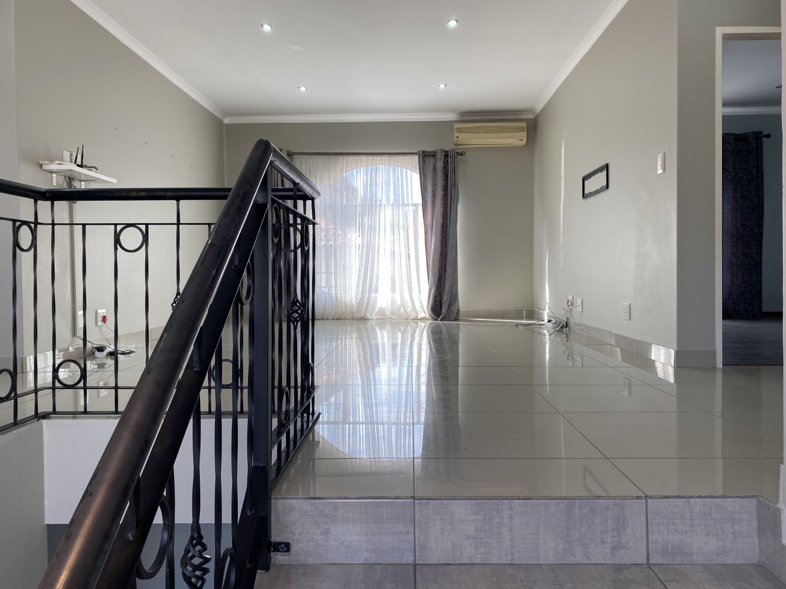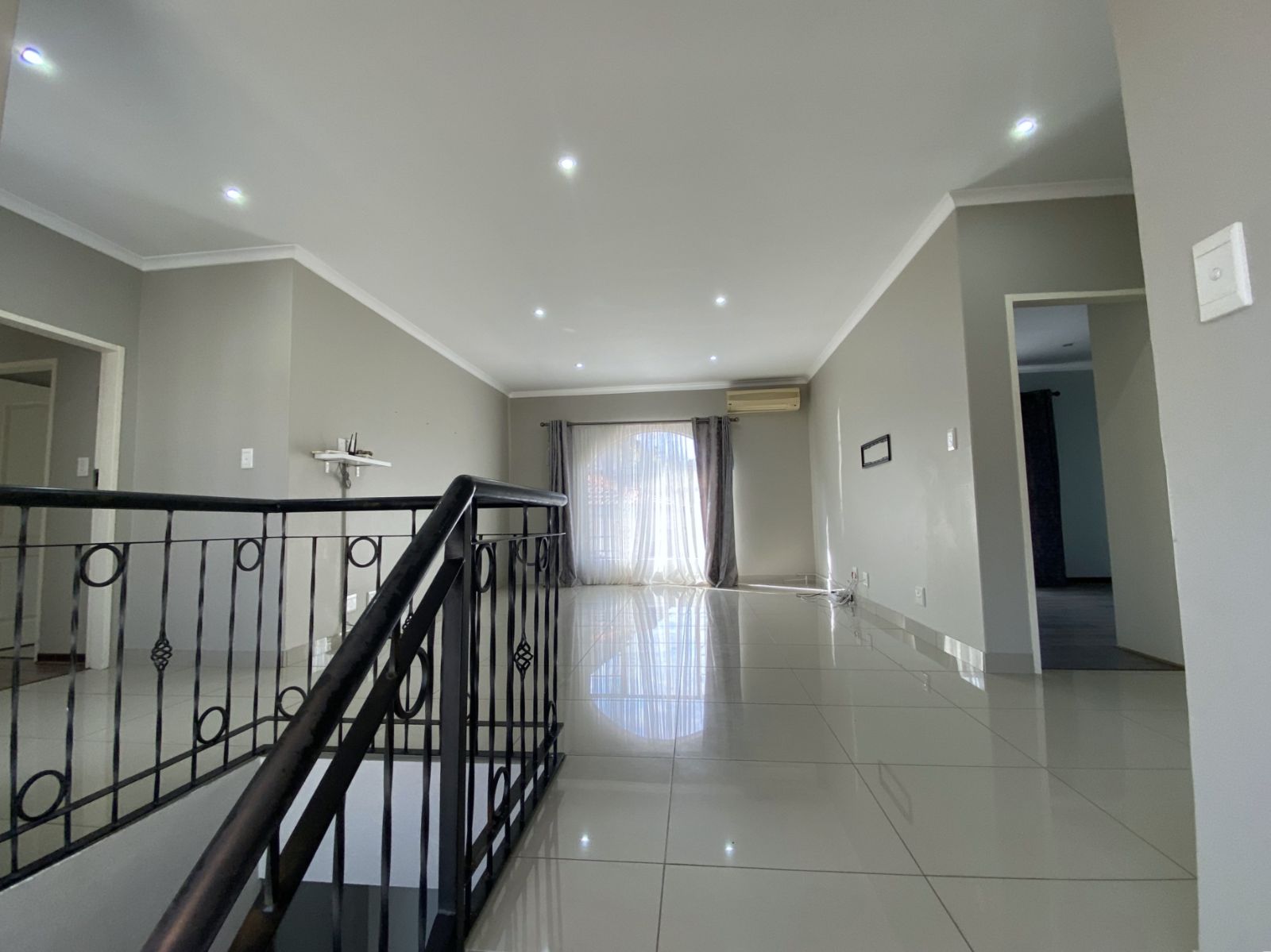 The living area opens up to an enclosed patio with a built-in braai, flowing seamlessly to a sparkling private pool set in a fully enclosed garden — perfect for entertaining or unwinding in total privacy.