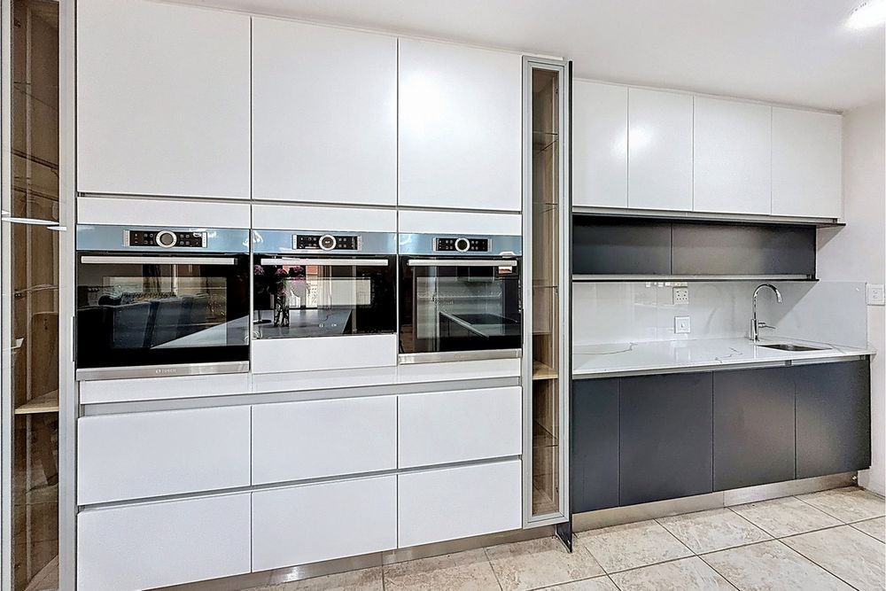 The heart of this home lies in its brand-new, state-of-the-art kitchen with a double oven, and built-in microwave. Adorned with top-tier finishes and quartz countertops, the kitchen boasts a central island, built-in lighting, and ample soft-close cupboard space, ensuring both beauty and functionality. The adjoining scullery and laundry room provide additional convenience, with water-resistant cupboards under the sinks. This modern kitchen is designed for those who love to cook and entertain, offering the perfect space for every culinary need.