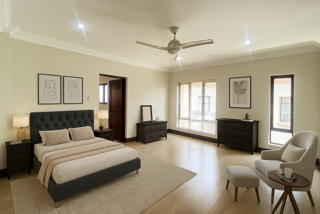 The residence features four luxurious bedrooms, all en-suite, thoughtfully designed to provide comfort, privacy, and elegance for every member of the household. Adding to the home’s appeal is an open-plan flatlet with a private entrance, ideal for extended family, guests, or executive rental opportunities. A separate domestic quarter with en-suite further enhances the home’s practicality.