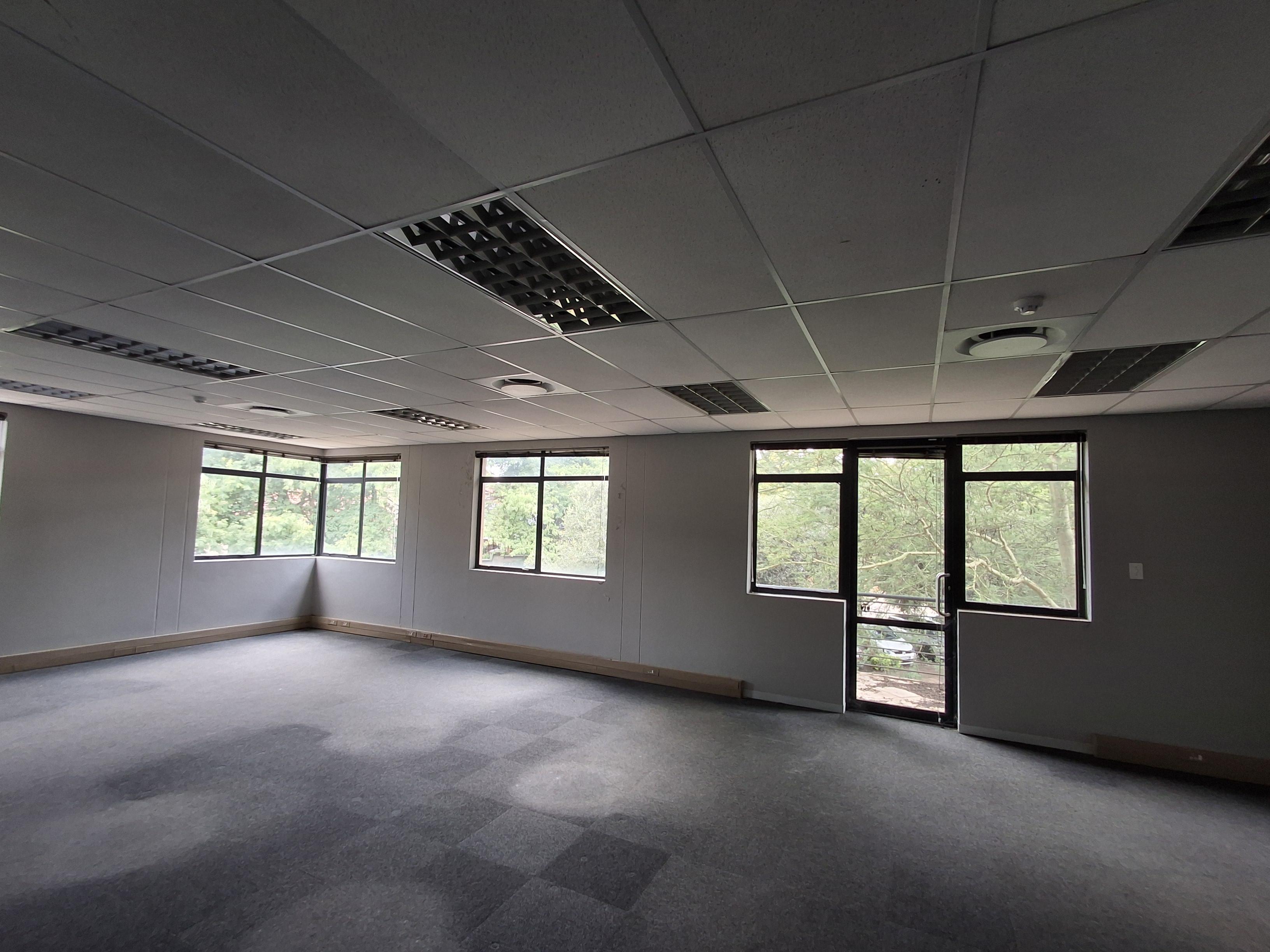 Surrounded by lush gardens and mature trees, creating a peaceful work environment
