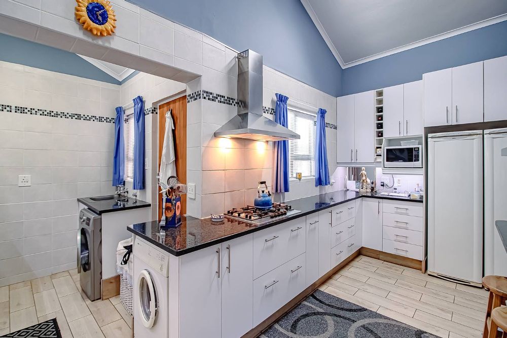 The heart of the home is a picture-perfect, modern open-plan kitchen designed for the gourmet cook. With granite countertops, a gas stove, an extractor fan, and a scullery and laundry area, this kitchen boasts quality finishes throughout. The combination of laminated flooring and tiles adds to the elegant aesthetic of the property.