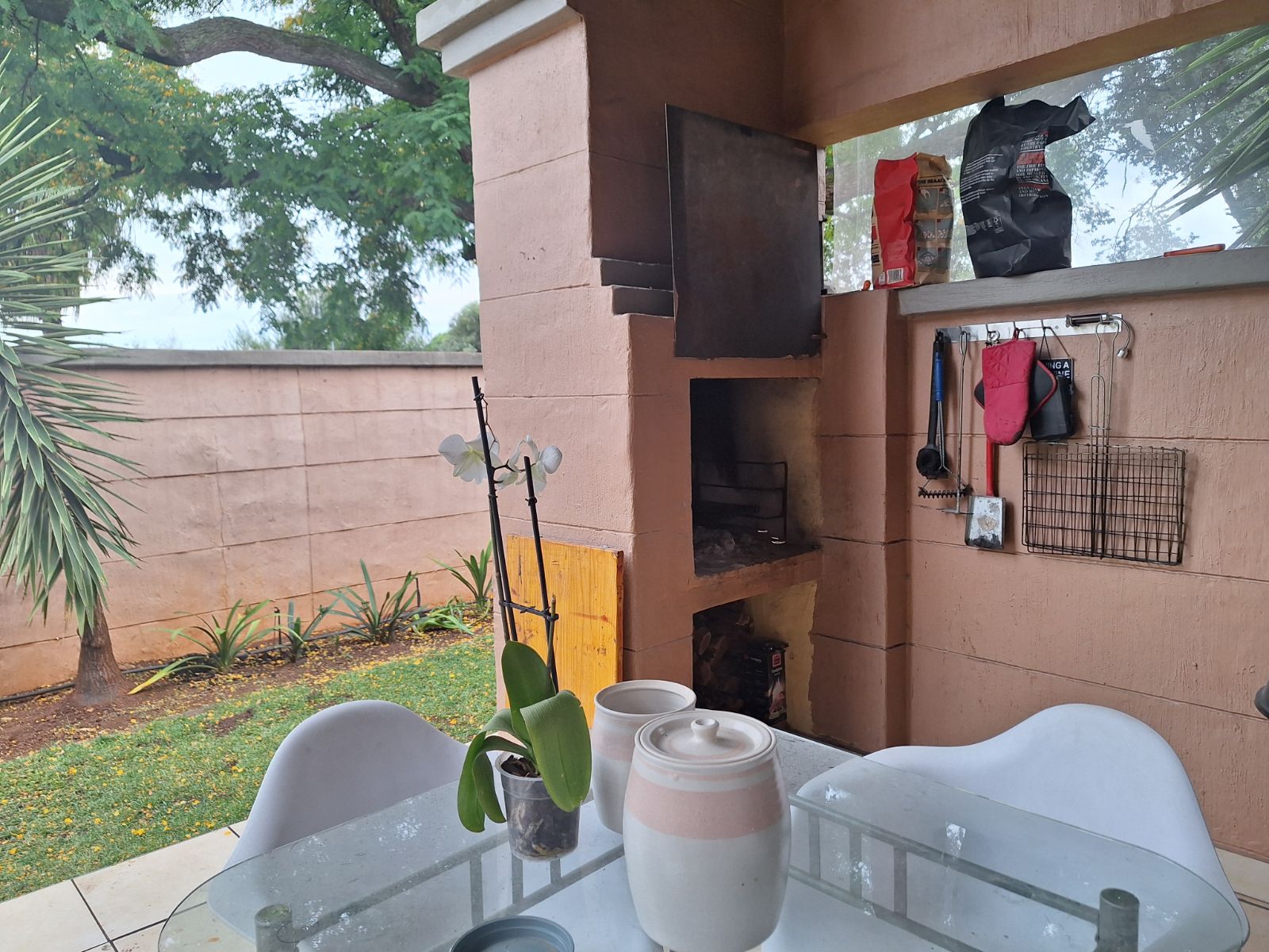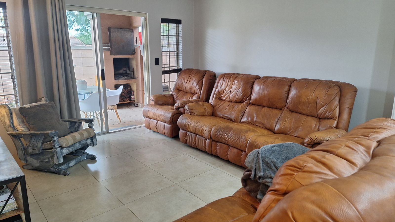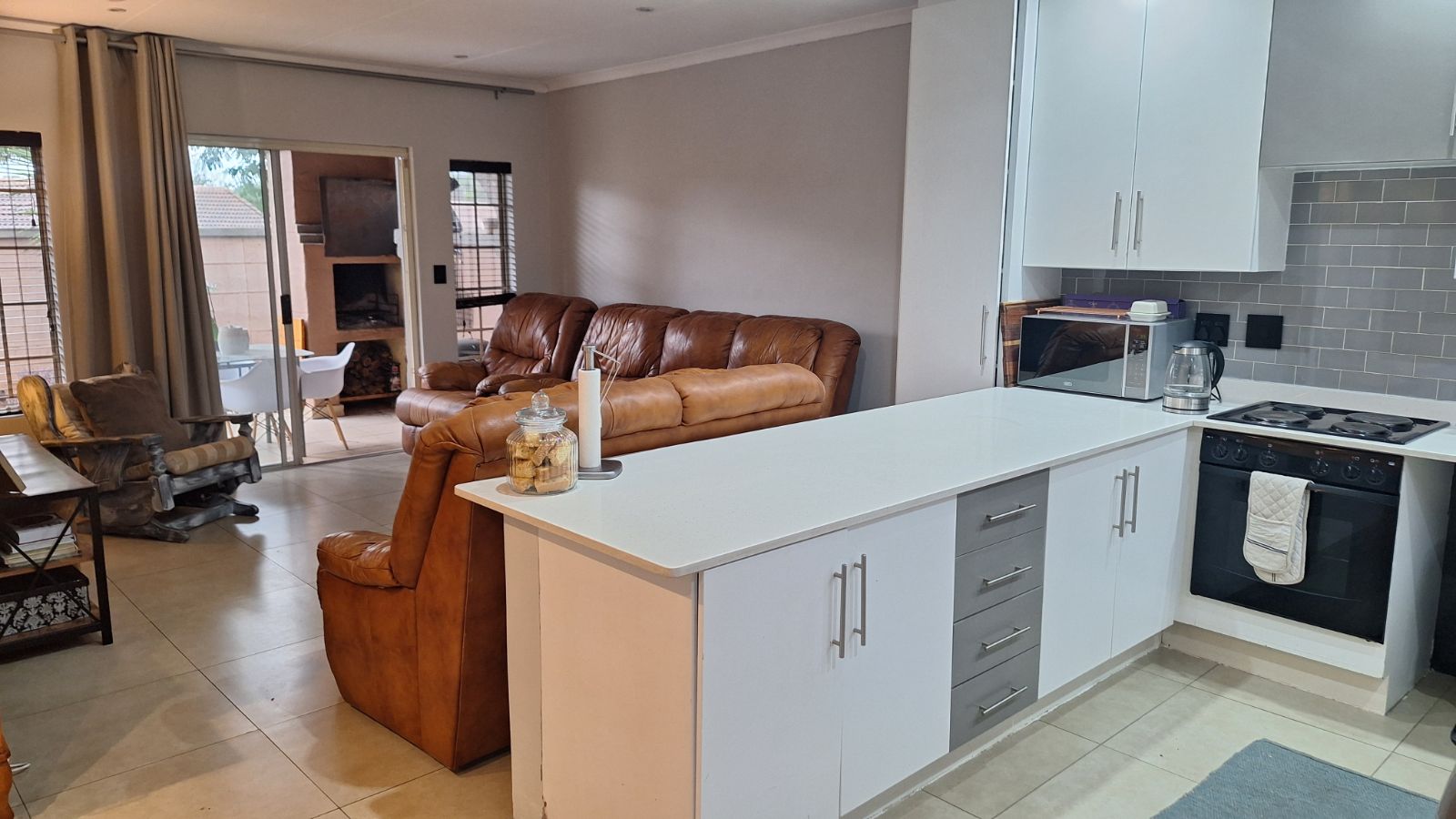 This home boasts a modern open-plan layout featuring a stylish kitchen with sleek cabinetry, ample counter space, and quality finishes. The spacious lounge and dining area flow effortlessly to a covered patio with a built-in braai, perfect for entertaining and relaxing. The private, fully walled garden offers peace, privacy, and a touch of greenery.