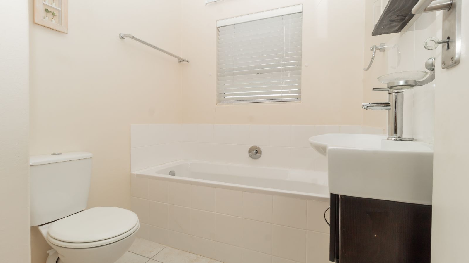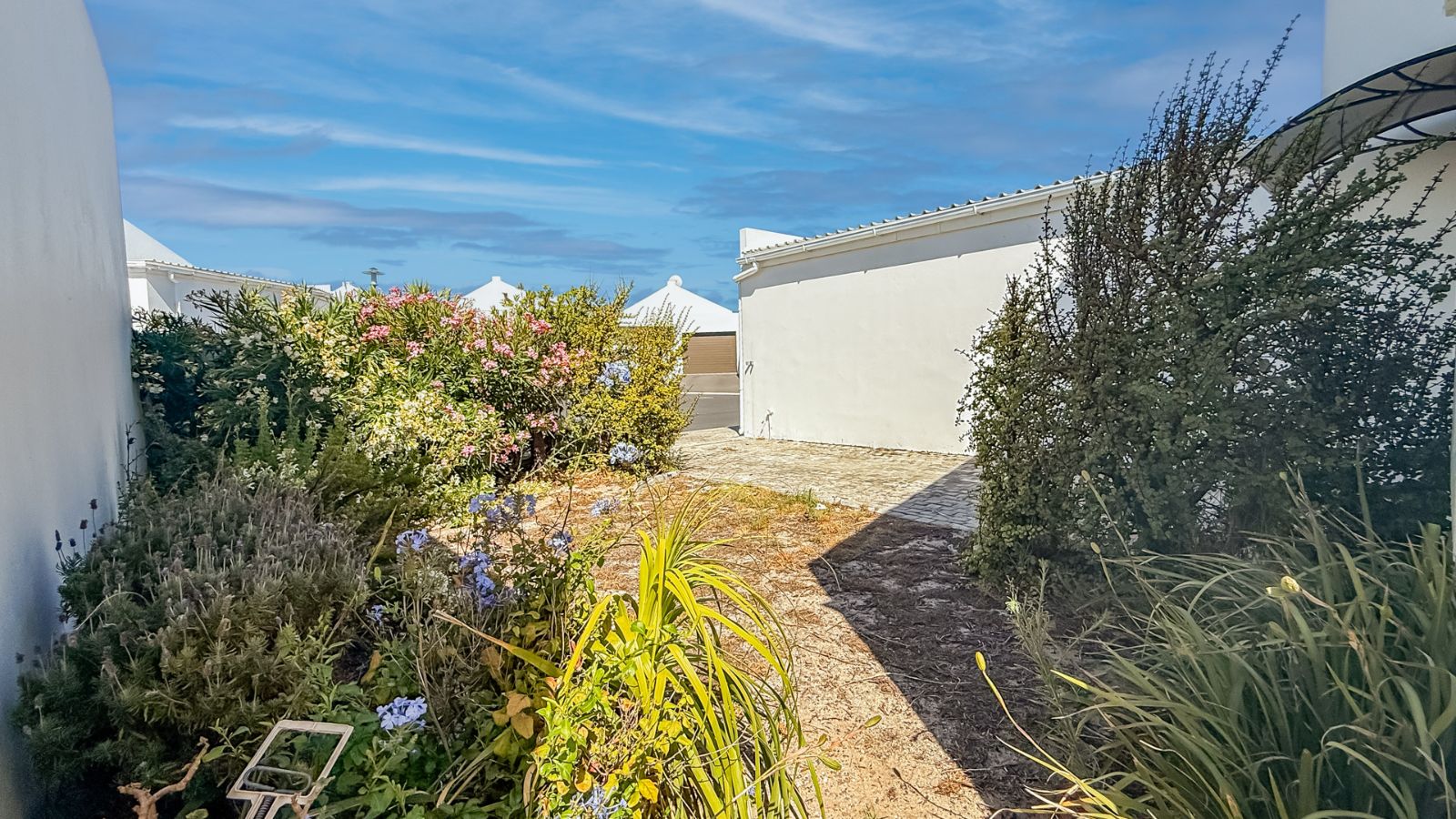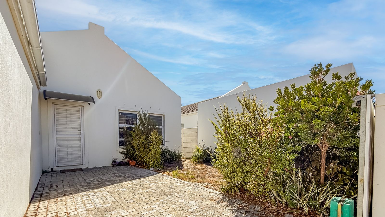 Both bedrooms feature built-in cupboards, with the main boasting an en-suite bathroom and direct access to the private back garden – your little oasis. A single garage with extra laundry space (plumbed and ready to go), plus an off-street parking bay behind a secure gate, completes the package. Bonus? A solar geyser for energy efficiency.