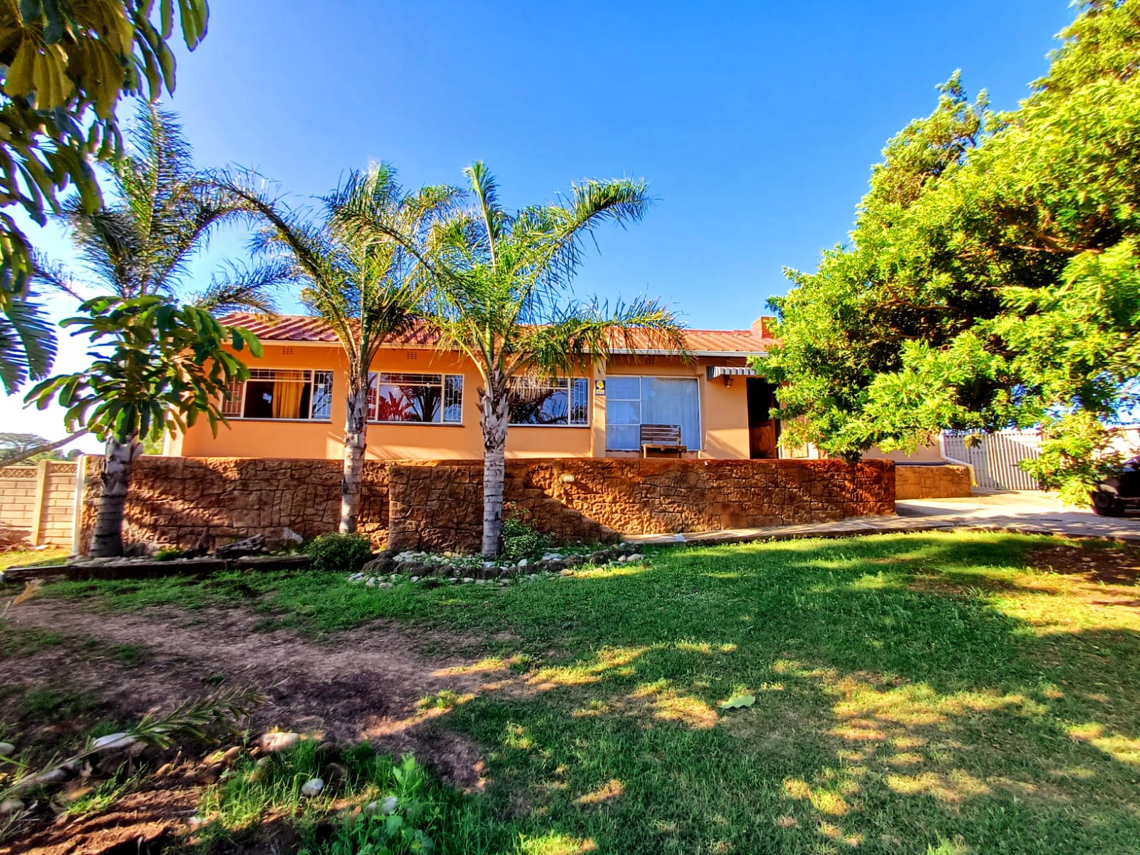 Framed by stately palm trees, the property welcomes you with a lovely front stoep — the perfect spot to enjoy your morning coffee. Step inside to discover: