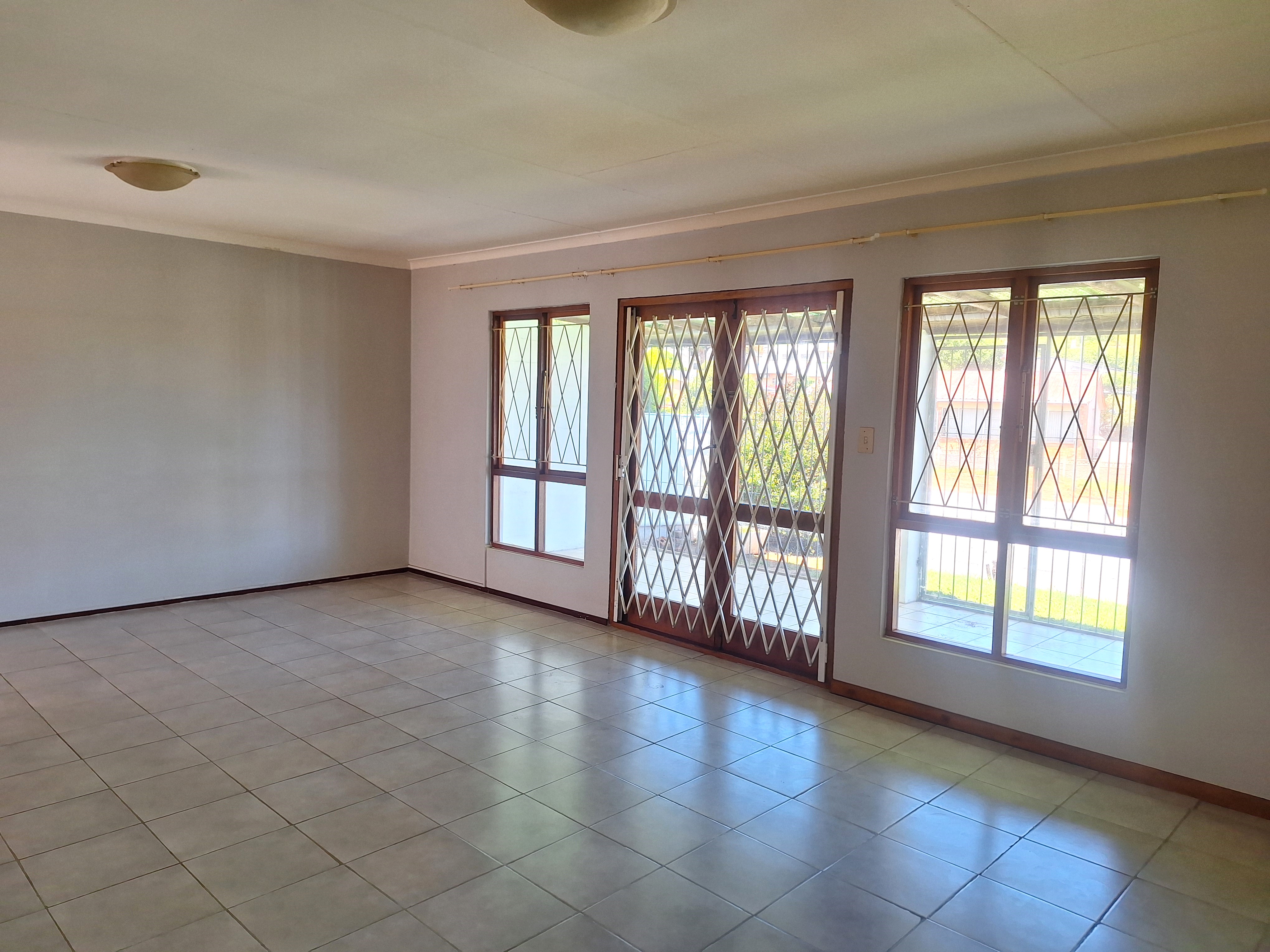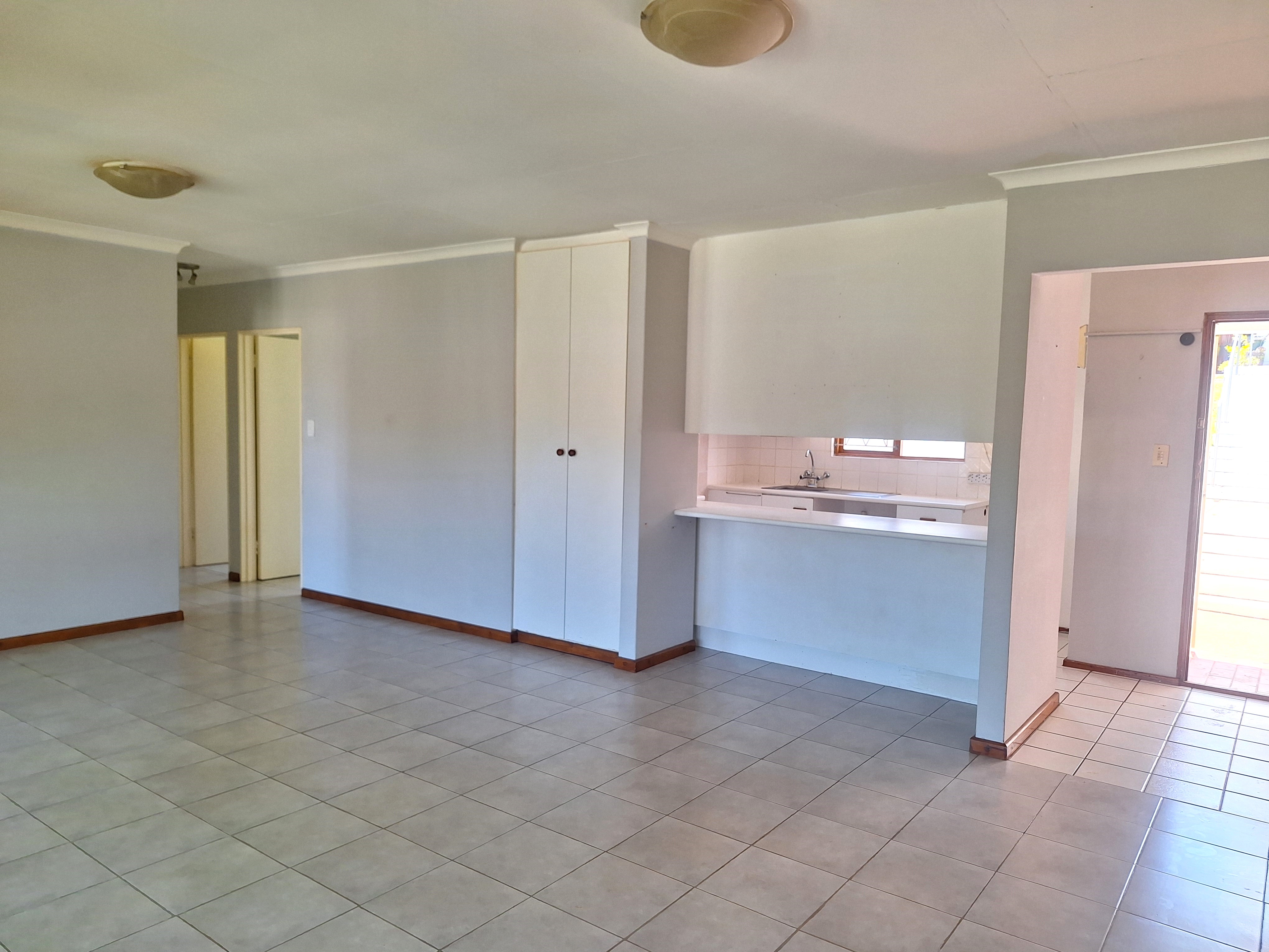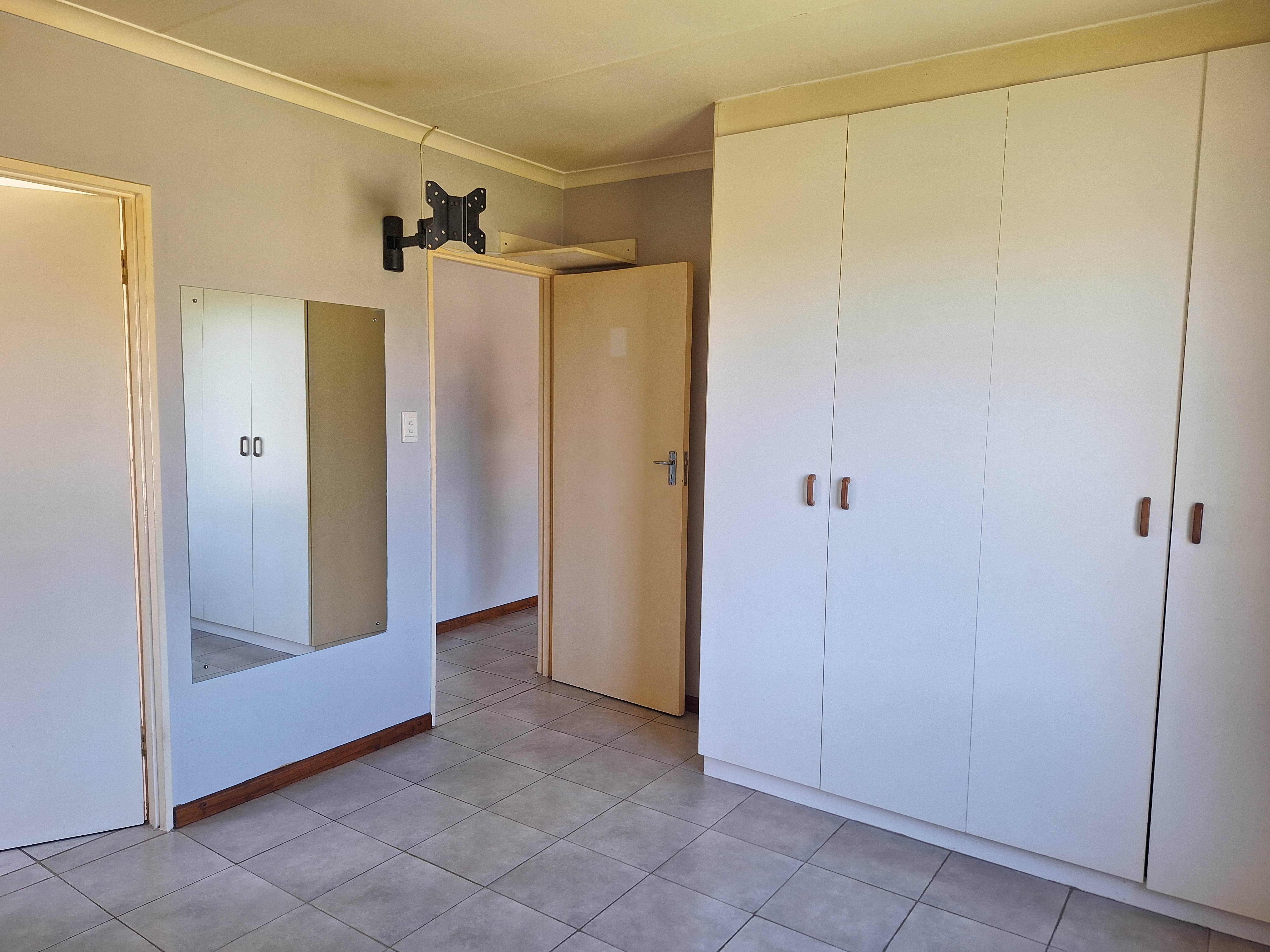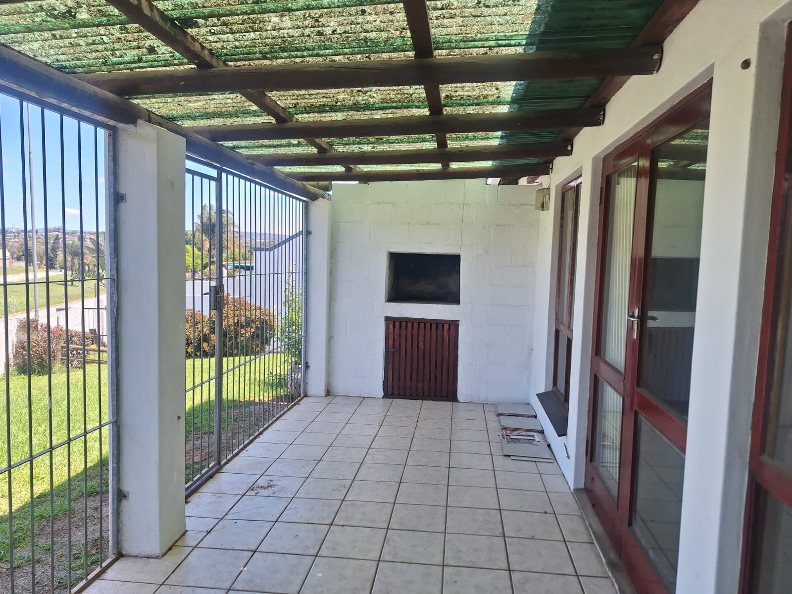 As you enter, you’ll find a well-designed kitchen to your right, leading into a spacious open-plan lounge and dining area. The lounge opens onto a cozy braai/entertainment area, perfect for relaxing or entertaining guests.