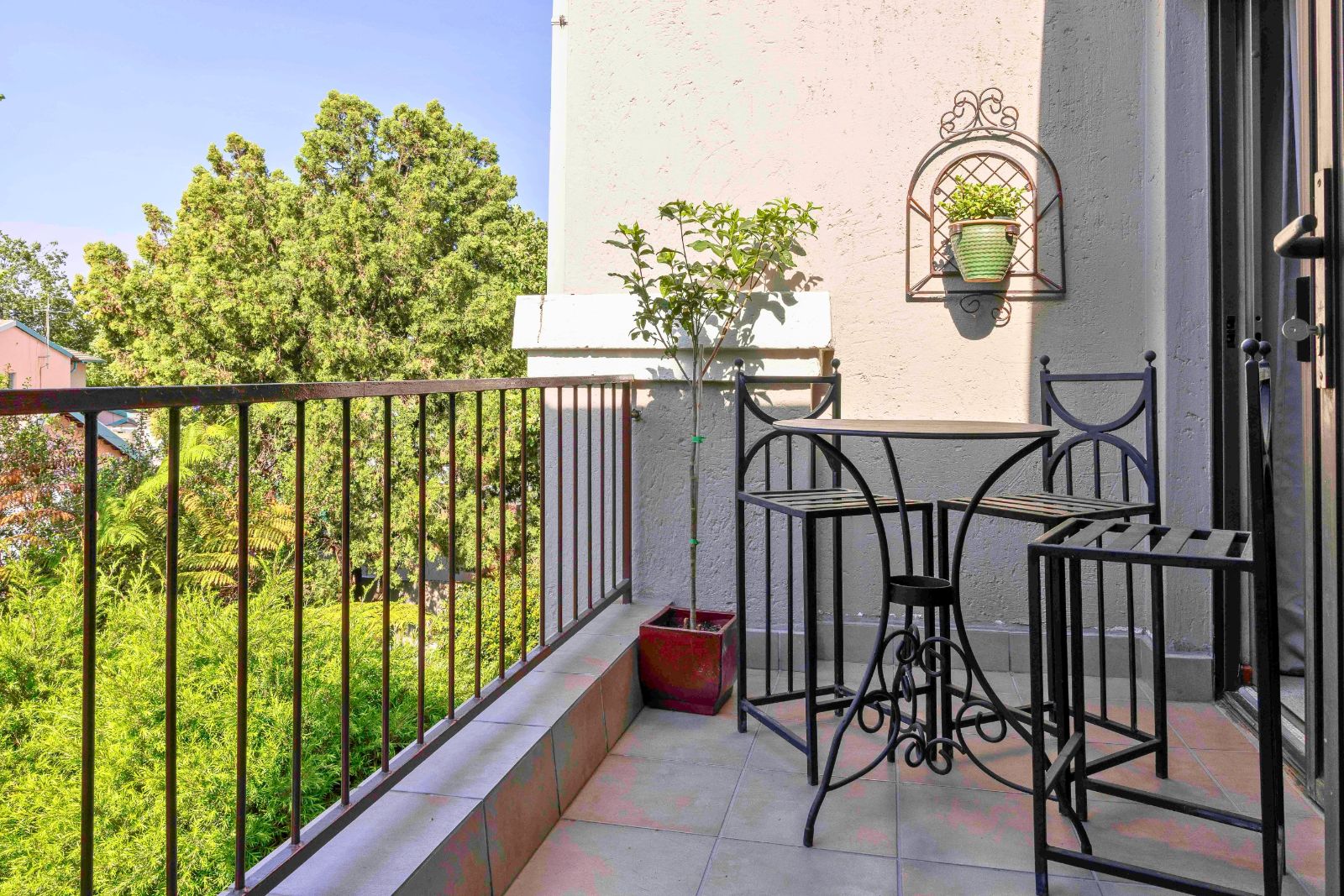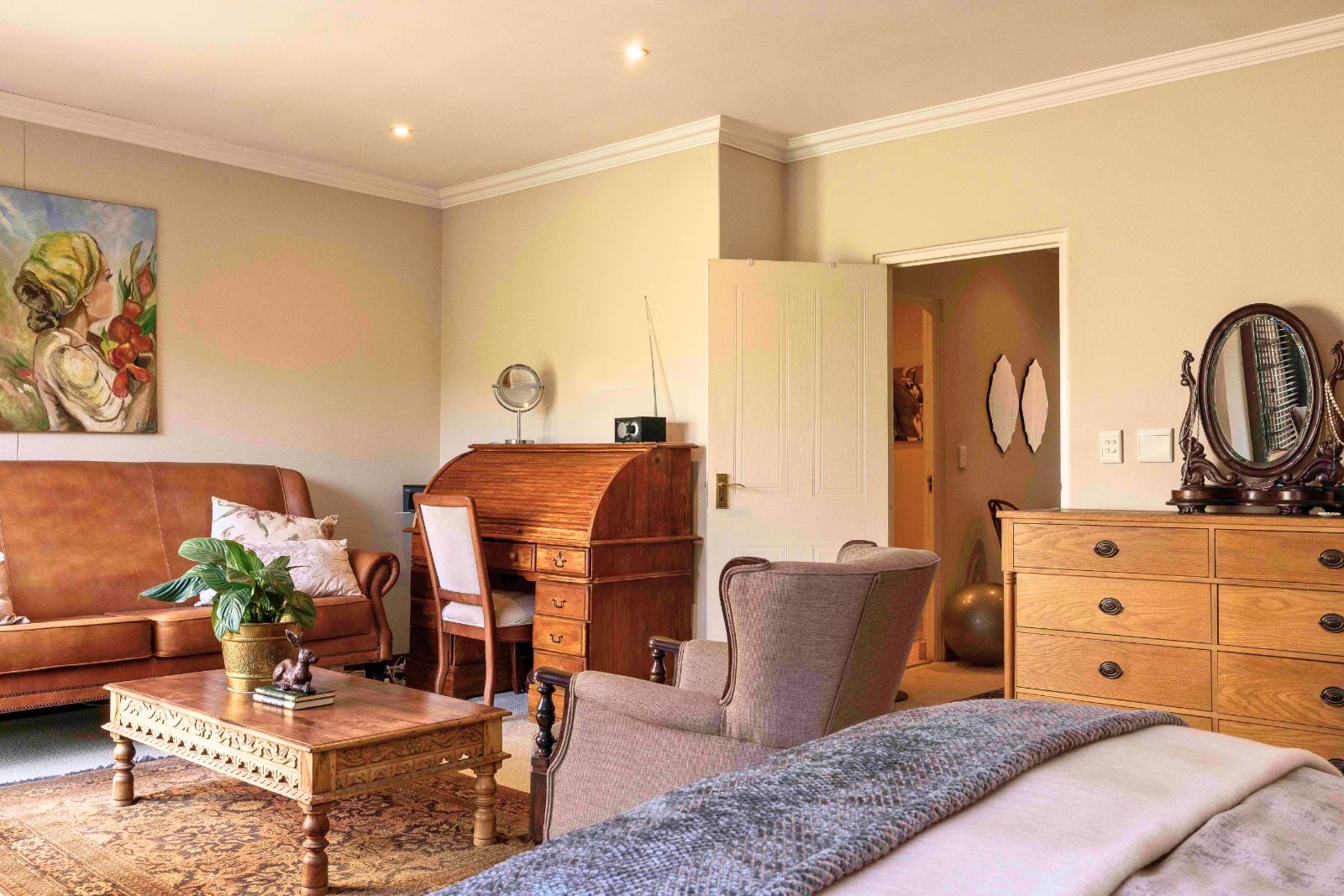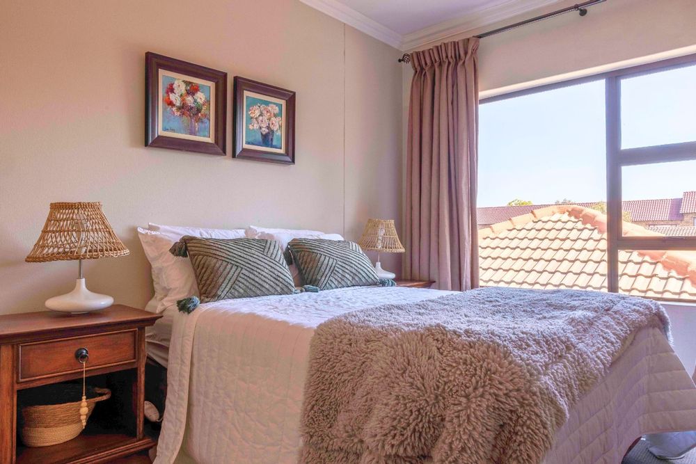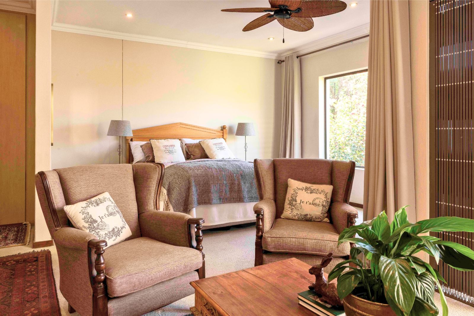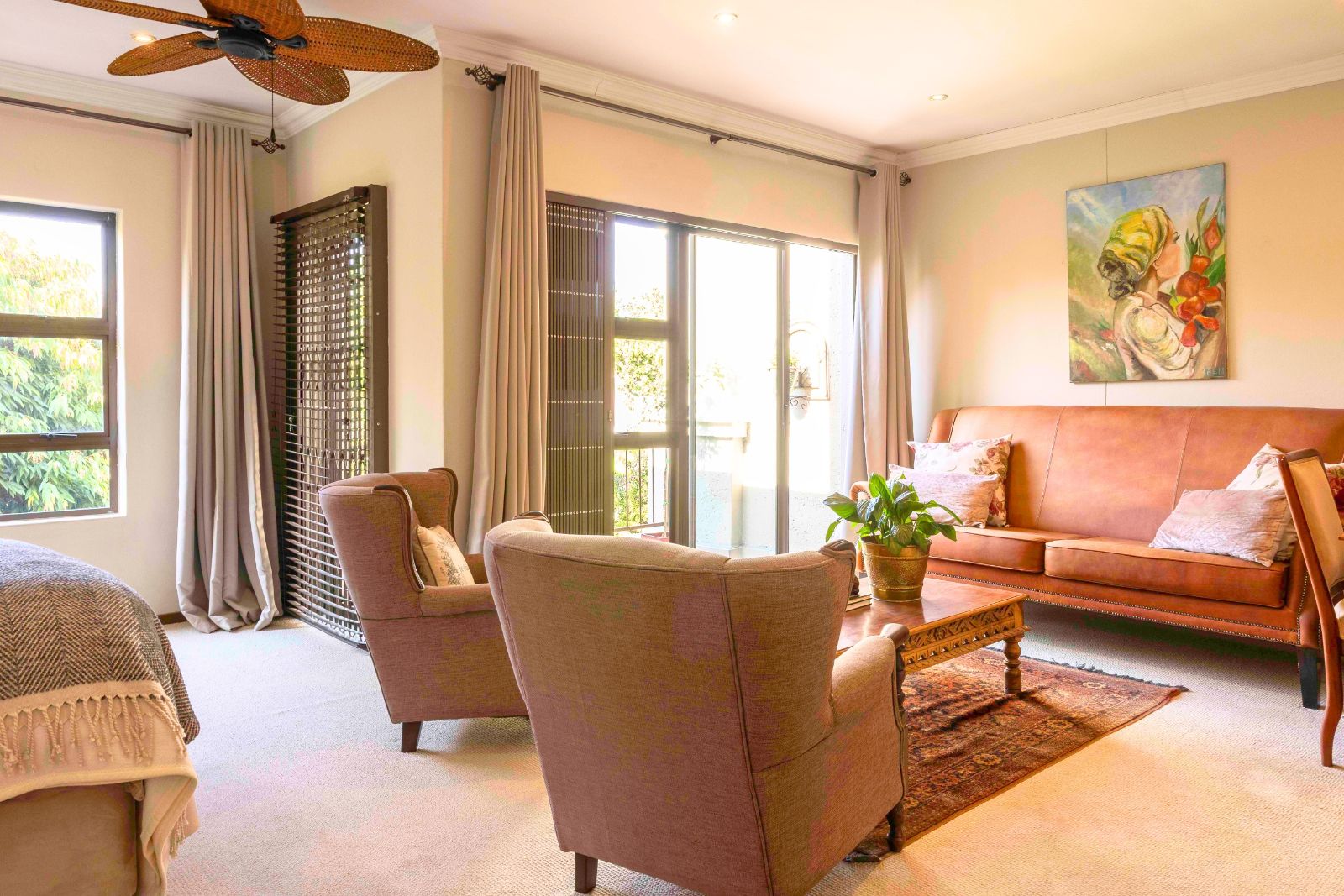 1x Extra large master bedroom with north-facing windows and doors opening onto sunny balcony overlooking lush garden