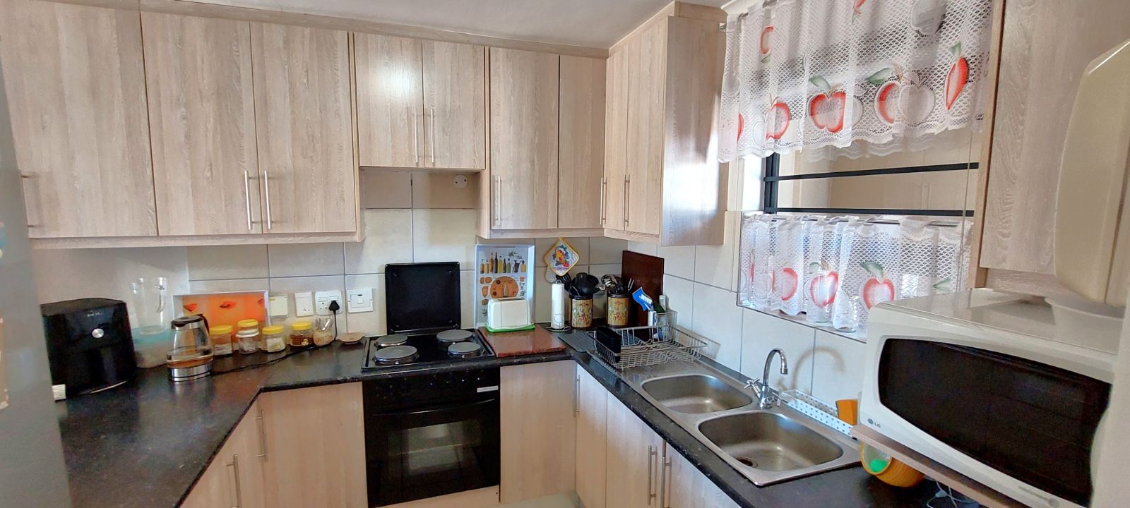 Enjoy this lovely, sunny, ground-floor apartment located within a secure complex offering 24-hour security. It features two carpeted bedrooms with enhanced built-in cupboard space. The full bathroom includes a shower, bath, and basin. The open-plan living area boasts sliding doors that lead out to an undercover patio complete with a built-in braai. The kitchen and living areas benefit from extensive additional fitted cupboard space. The unit comes with one basement parking bay and ample visitors' parking.
