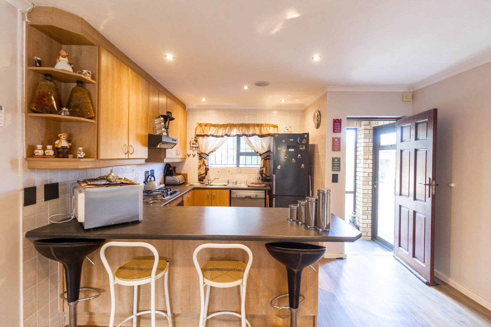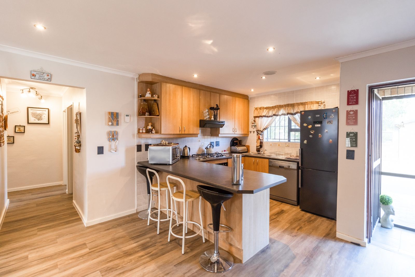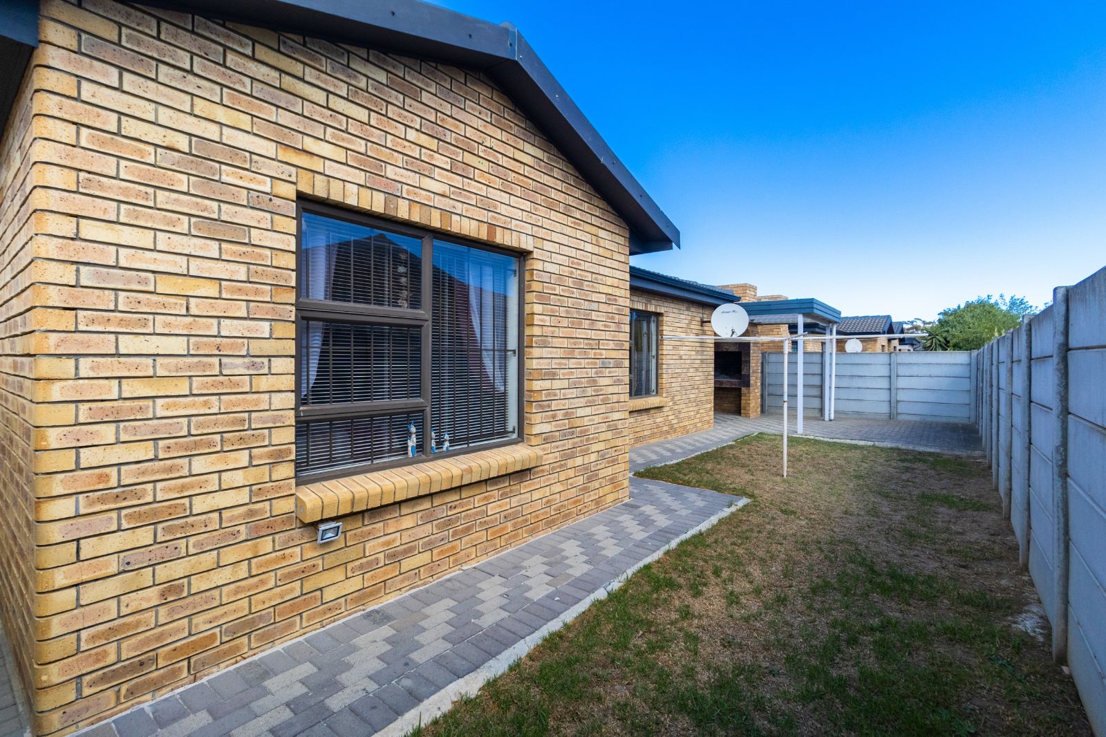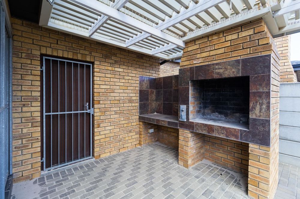 Step through the enclosed door entrance into the open-plan kitchen designed for functionality, seamlessly flowing into a spacious living area that creates a welcoming space for family and friends. Sliding doors open to a covered patio with a built-in braai, perfect for outdoor entertaining and relaxing in your private garden.
