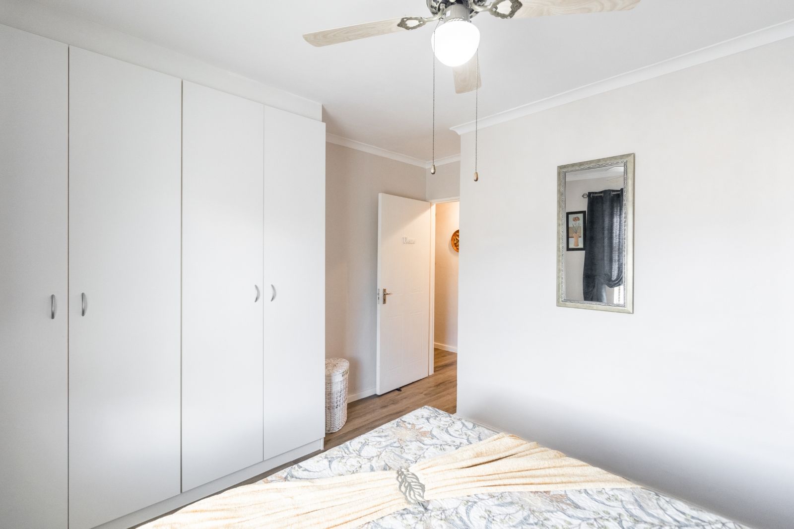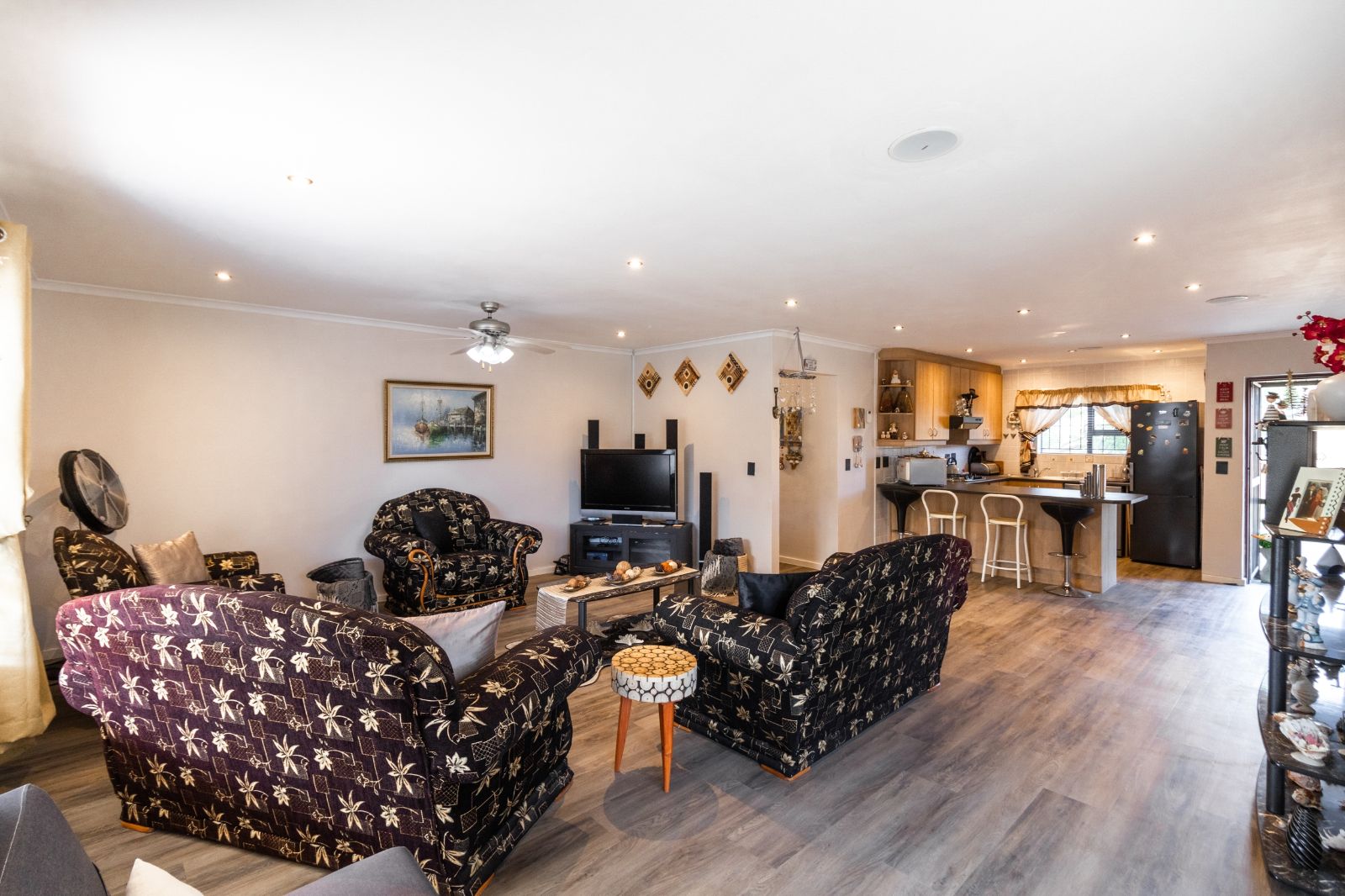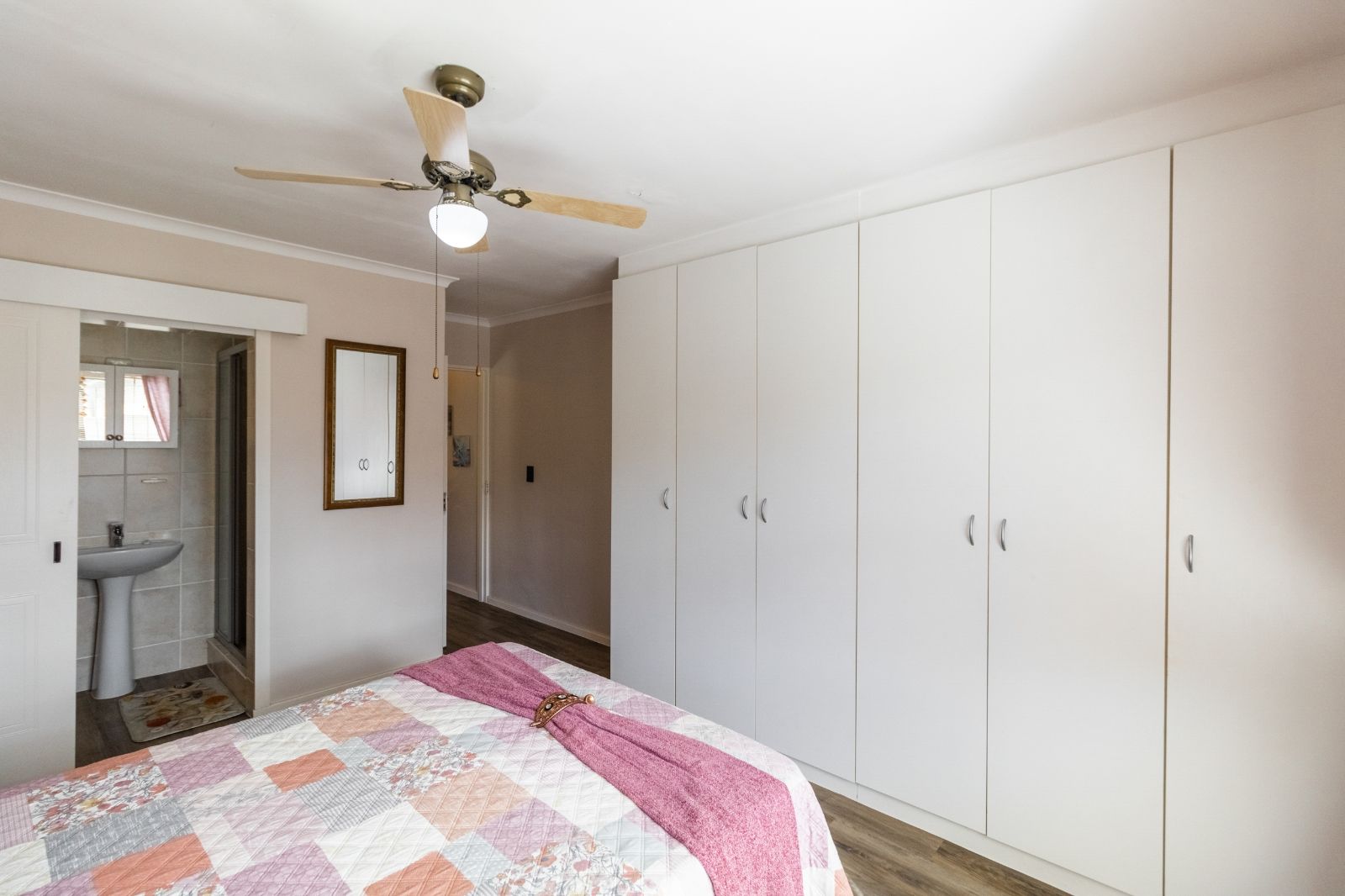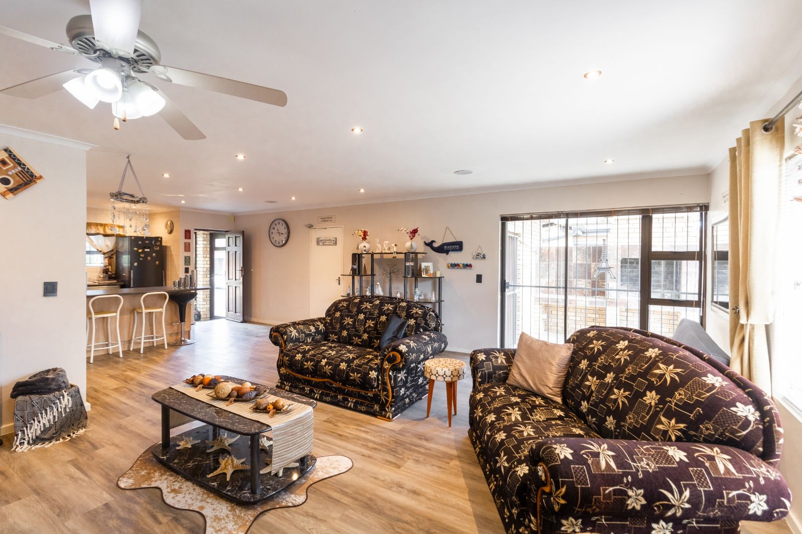 Step through the enclosed door entrance into the open-plan kitchen designed for functionality, seamlessly flowing into a spacious living area that creates a welcoming space for family and friends. Sliding doors open to a covered patio with a built-in braai, perfect for outdoor entertaining and relaxing in your private garden.