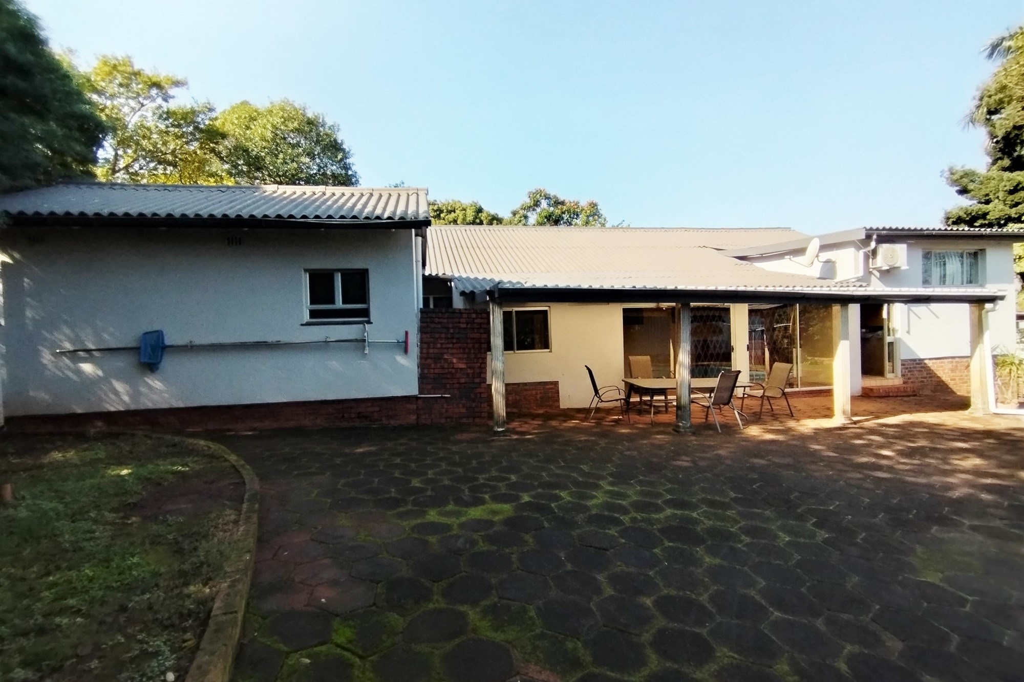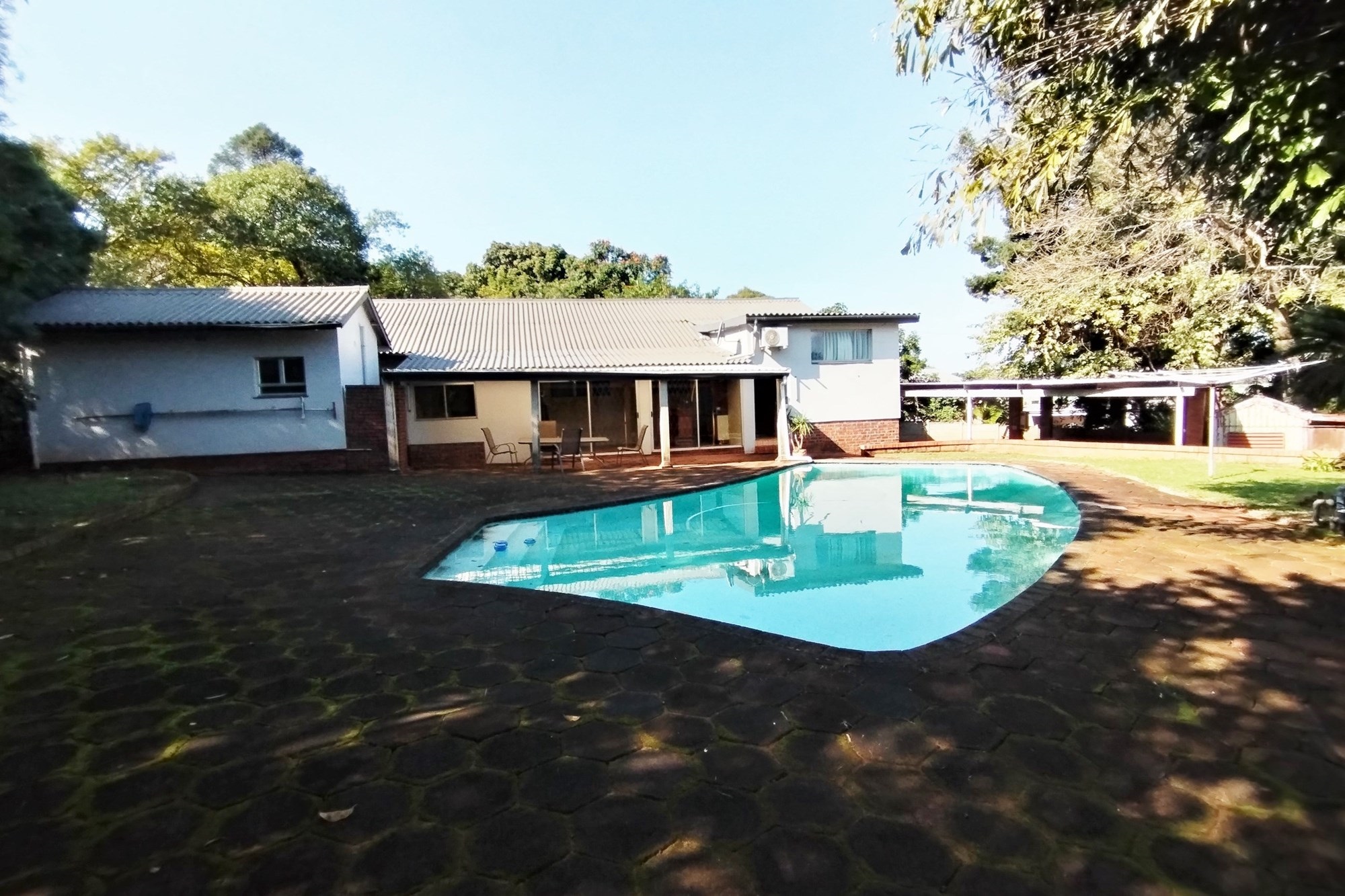Welcome to your dream property – a double stand with dual street access, offering endless possibilities for a luxurious lifestyle. As you enter through the remote-controlled gate, you are greeted by a beautifully paved yard, perfect for outdoor entertainment. This expansive plot is large enough to accommodate a third house, making it ideal for extended families, rental property or a student accommodation. The main house boasts 5 spacious bedrooms and 3 bathrooms, including 2 en-suite bathrooms with showers. The guest lounge, family lounge, and a bar area overlooking the sparkling pool, creating a tranquil and inviting atmosphere. The fully fitted kitchen is a chef's dream, complete with granite counter tops. On chilly evenings, cozy up by the fire place or utilize the scullery for added convenience. Need a space to work from home? The office space is the perfect solution. For added convenience, the main house has 2 air conditioners, ensuring comfort all year round. The second house is equally impressive, with a remote-controlled double garage and storage area. Inside, you will find an open plan fully fitted kitchen with granite tops, a lounge, and dining area. The 2 bedrooms are spacious and fitted with air conditioners. It also has a family bathroom and an en-suite bathroom. But that's not all – this property also boasts a large, fully fitted workshop, perfect for the DIY enthusiast or as a potential income-generating space. Don't miss out on the opportunity to make this property your own and live the ultimate lifestyle. Schedule a viewing today!