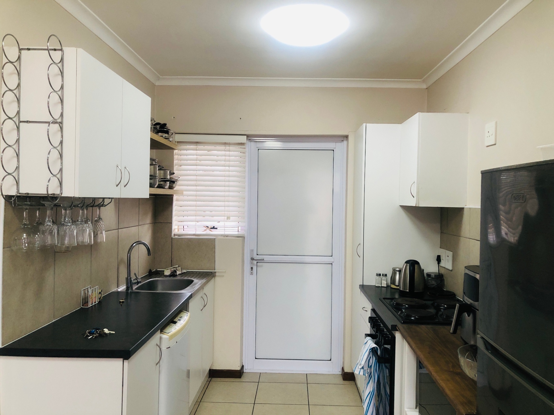 Kitchen, fully kittted kitchen neat and functional with a backdoor leading to the backyard-ideal for gardening or enjoying outdoor activities.