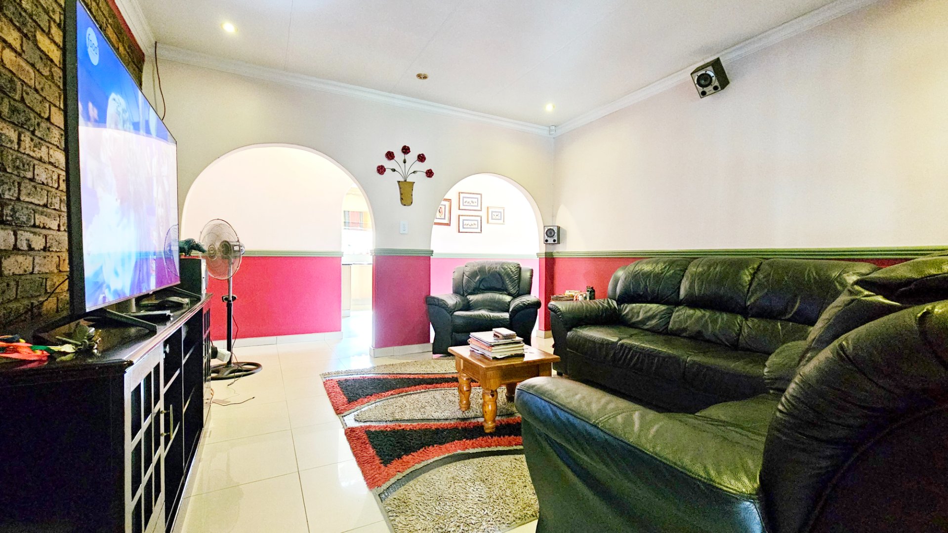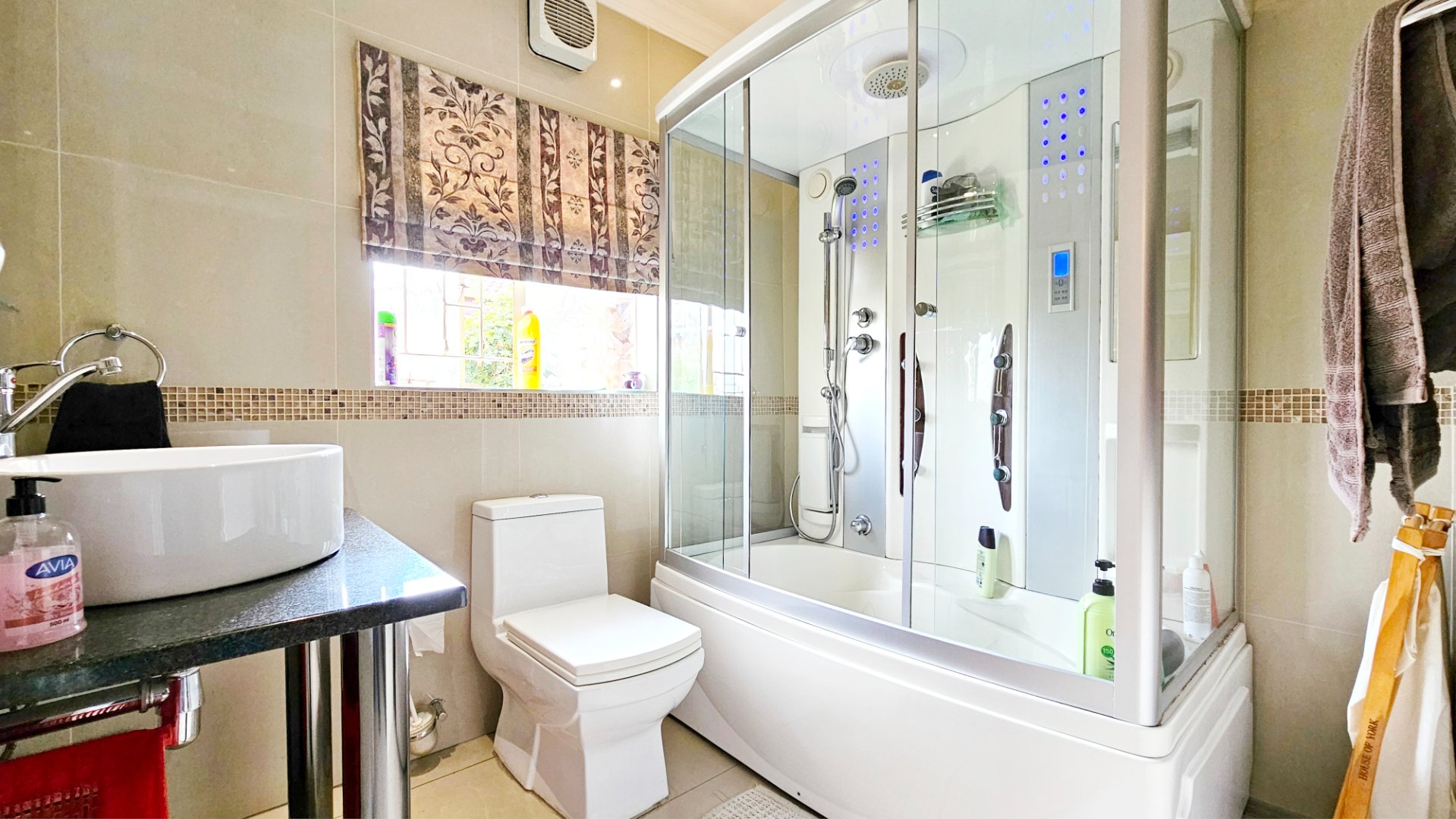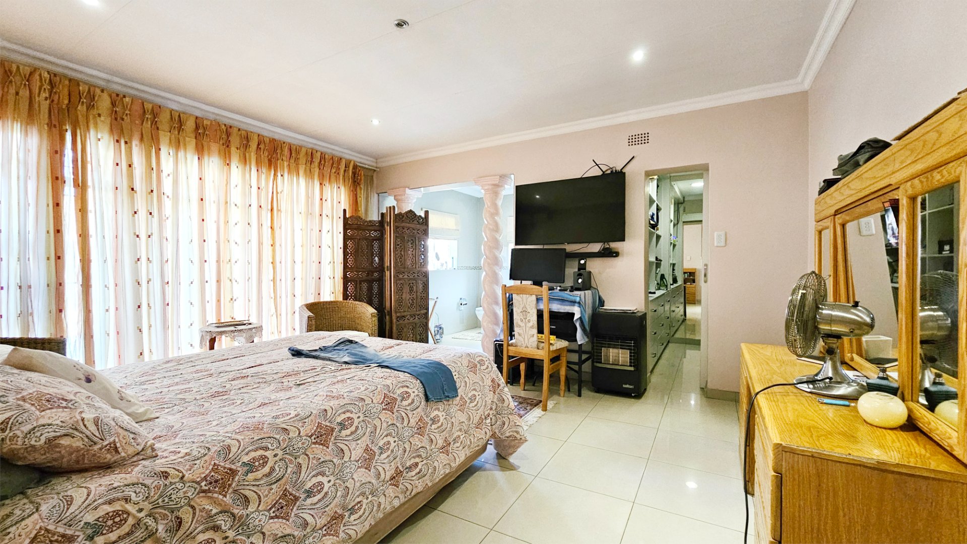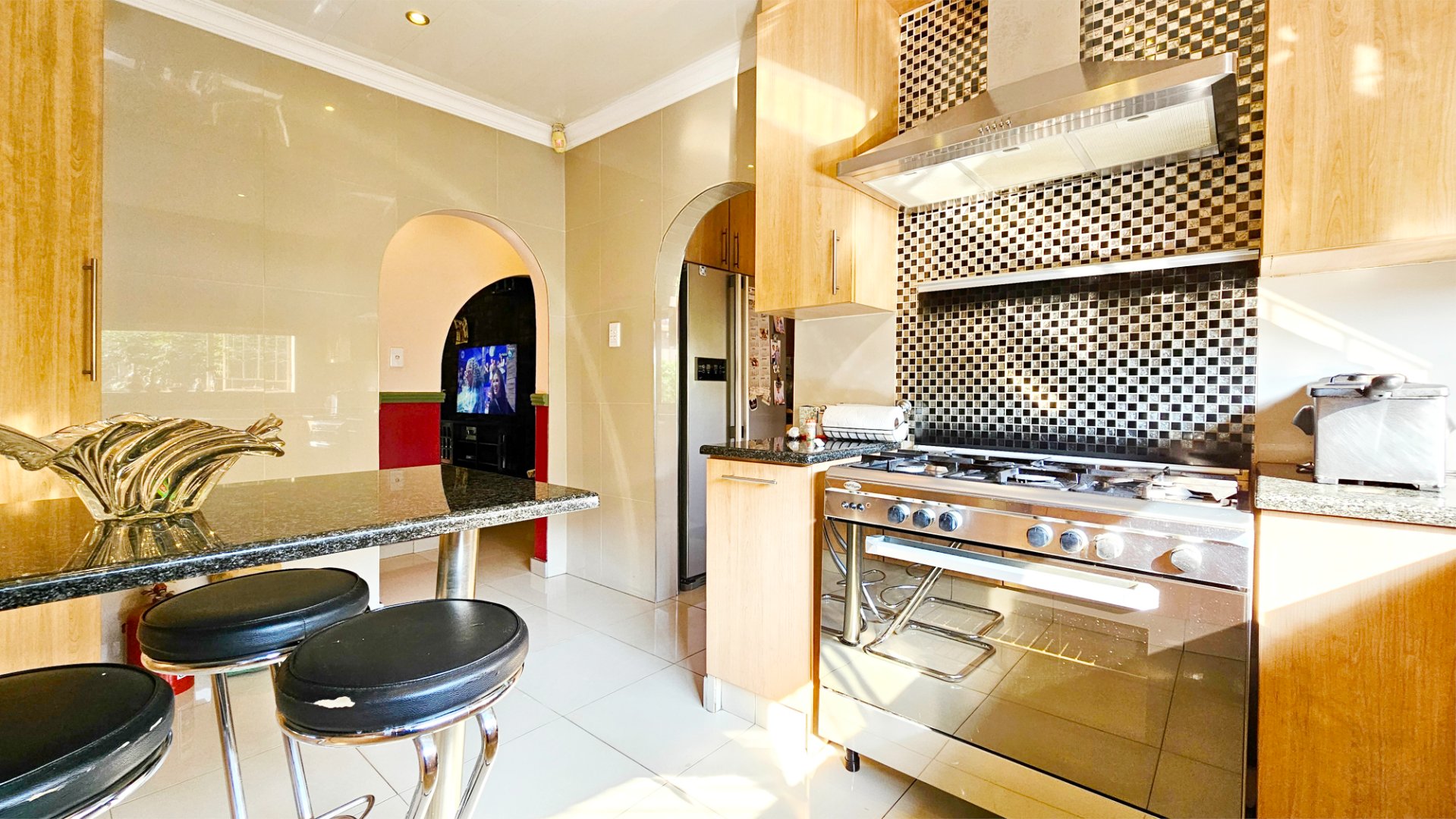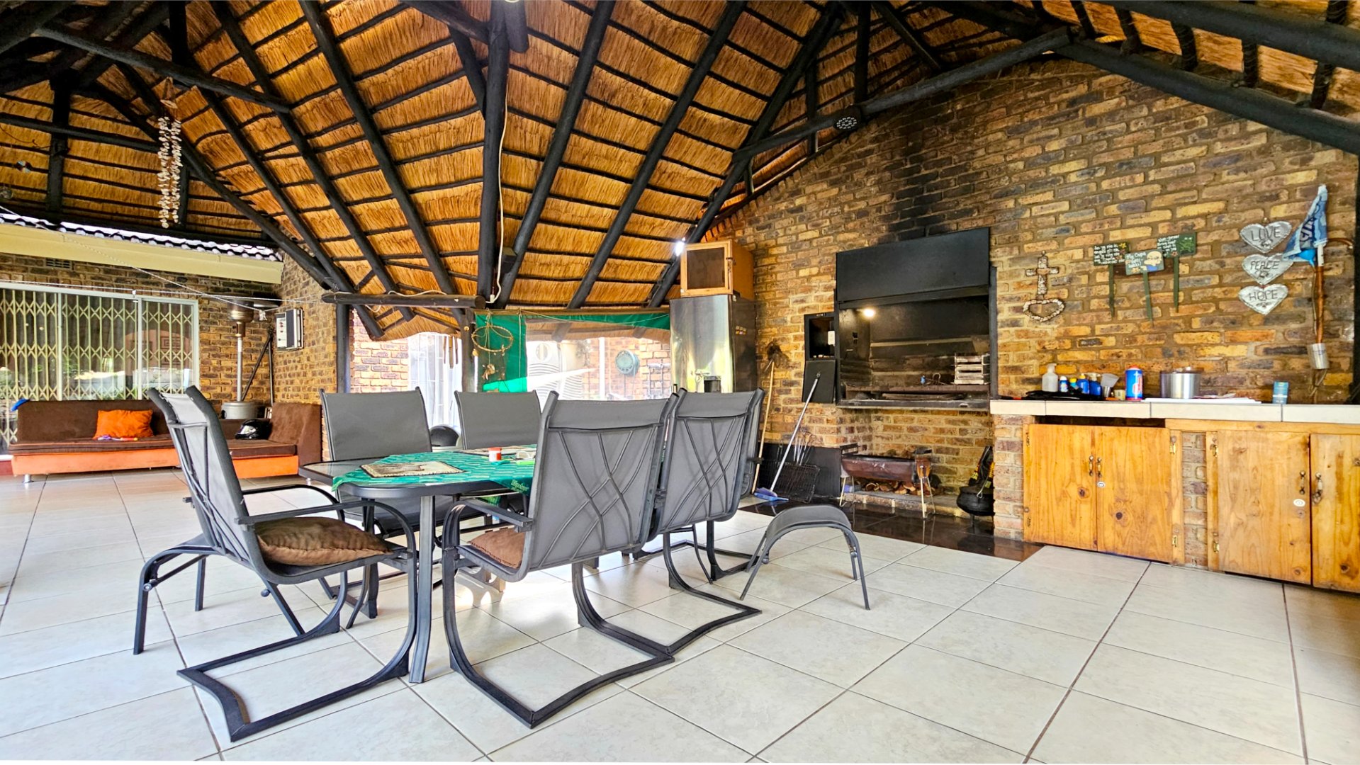 The property offers a solar powered automated gate, double automated garage, CCTV cameras and gas geysers.