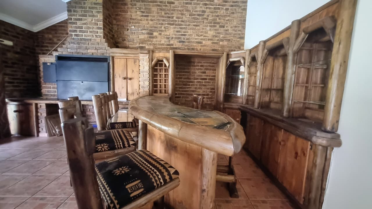 The cozy lounge and dining room create a welcoming atmosphere for socializing and sharing meals. The large, inside entertainment area is perfect for hosting gatherings, featuring a built-in braai, built-in bar, fireplace, air conditioning and a jacuzzi. Glass sliding doors lead out to the outside lapa and swimming pool, creating a blend of indoor and outdoor entertainment.