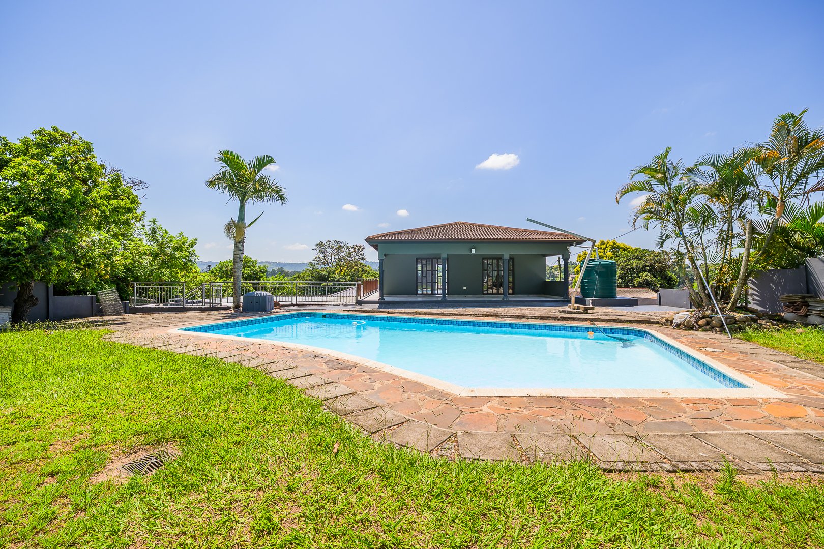 The third section of the property is all about lifestyle. A dedicated entertainment area offers endless possibilities and can easily be converted into a second flatlet if desired. Nearby, the sparkling swimming pool is privately positioned, allowing guests to relax and unwind in complete seclusion — perfect for hosting without disrupting the main living spaces.