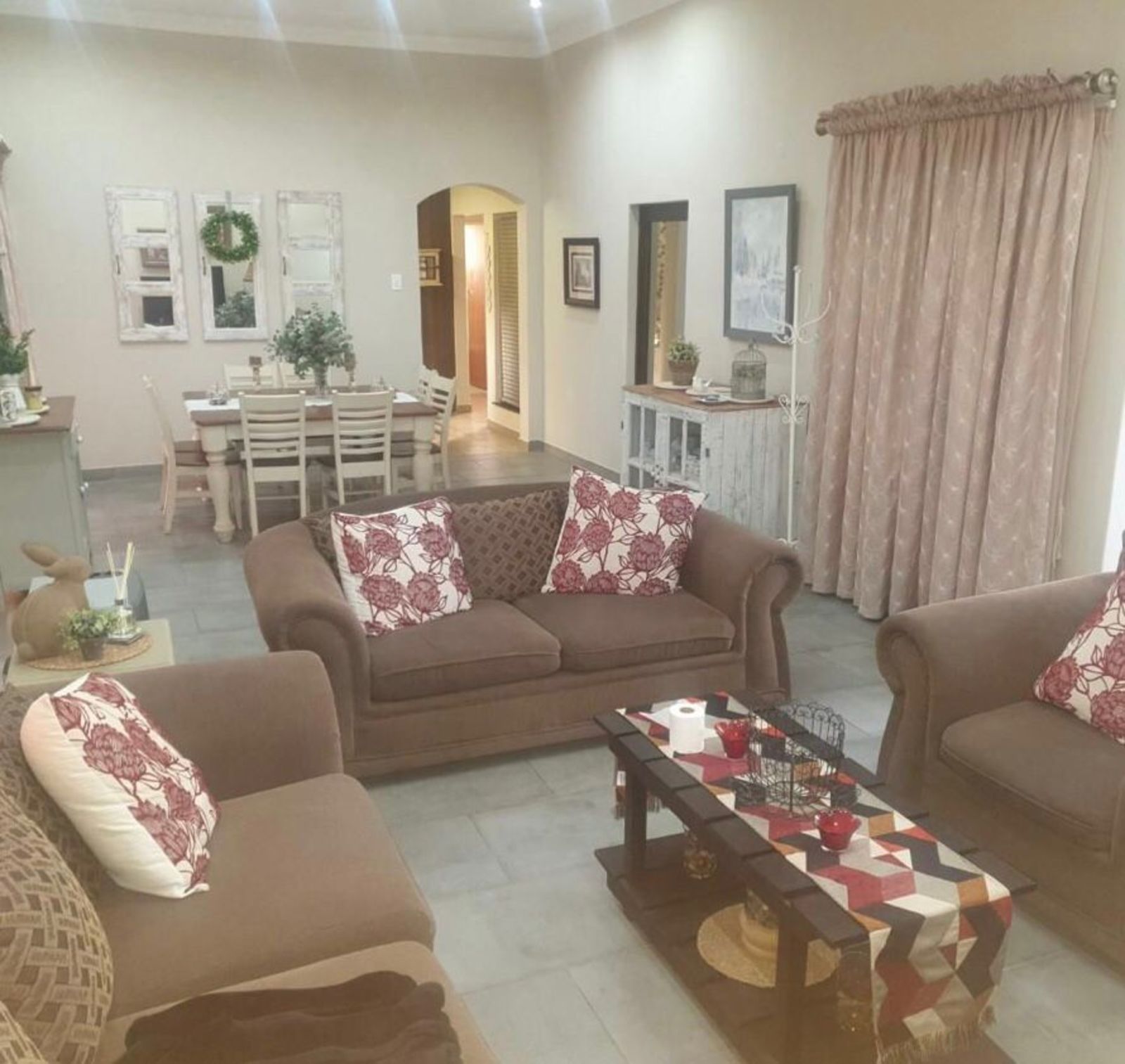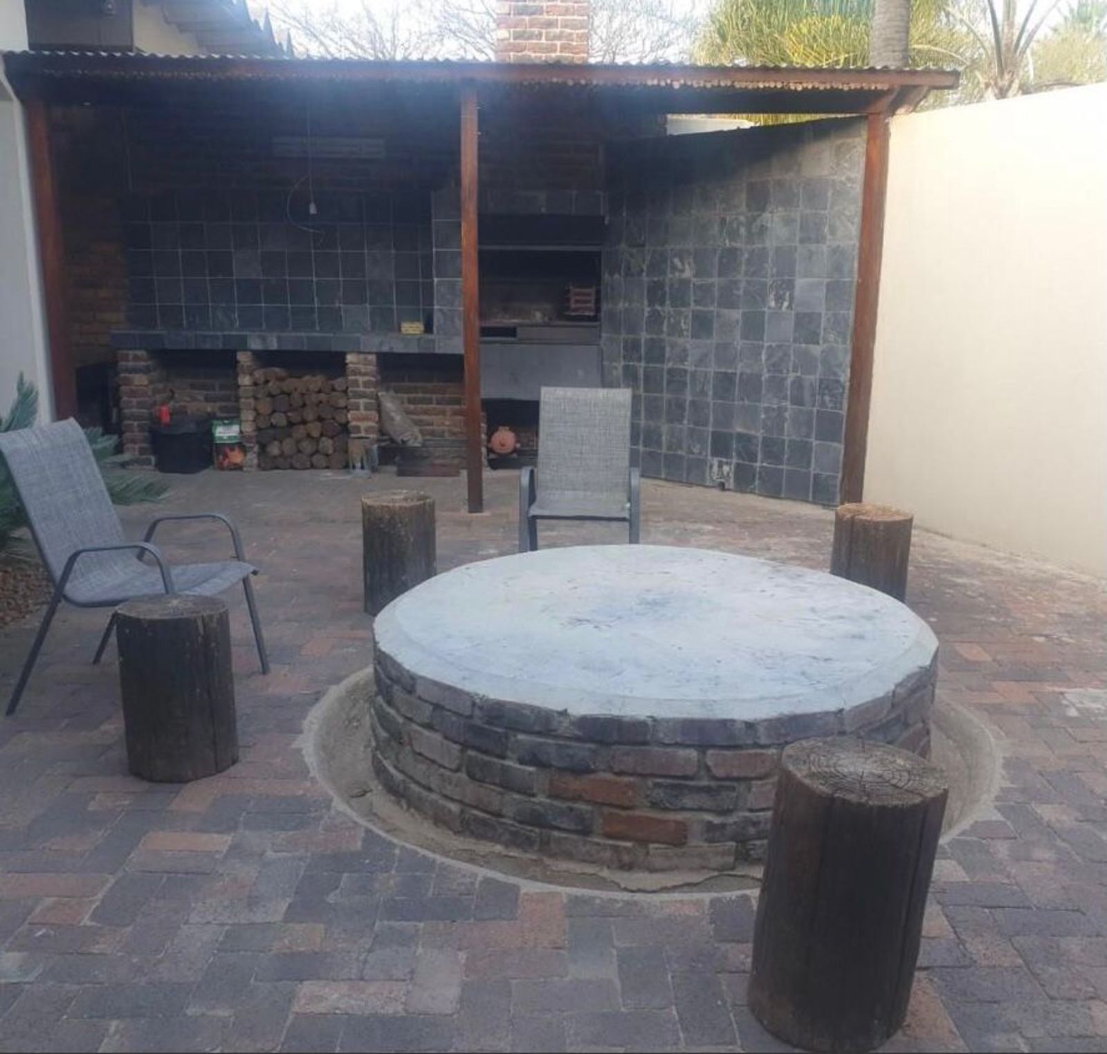 Outdoor living is a standout feature, with a generous braai area complete with a built-in braai. This space can be enclosed during winter with canvasses, making it perfect for year-round entertaining.