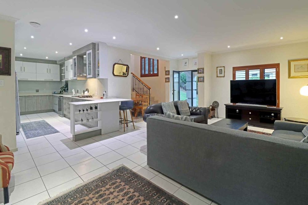 The TV room and dining room create inviting living spaces, designed for both relaxation and connection. An enclosed patio with a built-in braai opens to the garden and sparkling pool — a true entertainer’s dream.