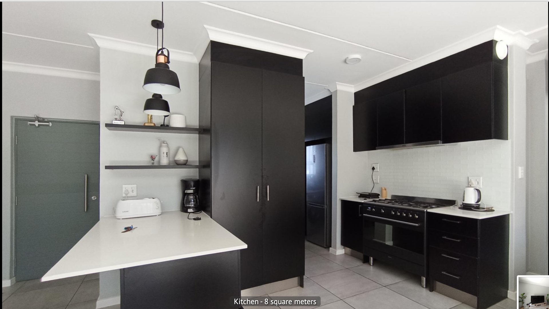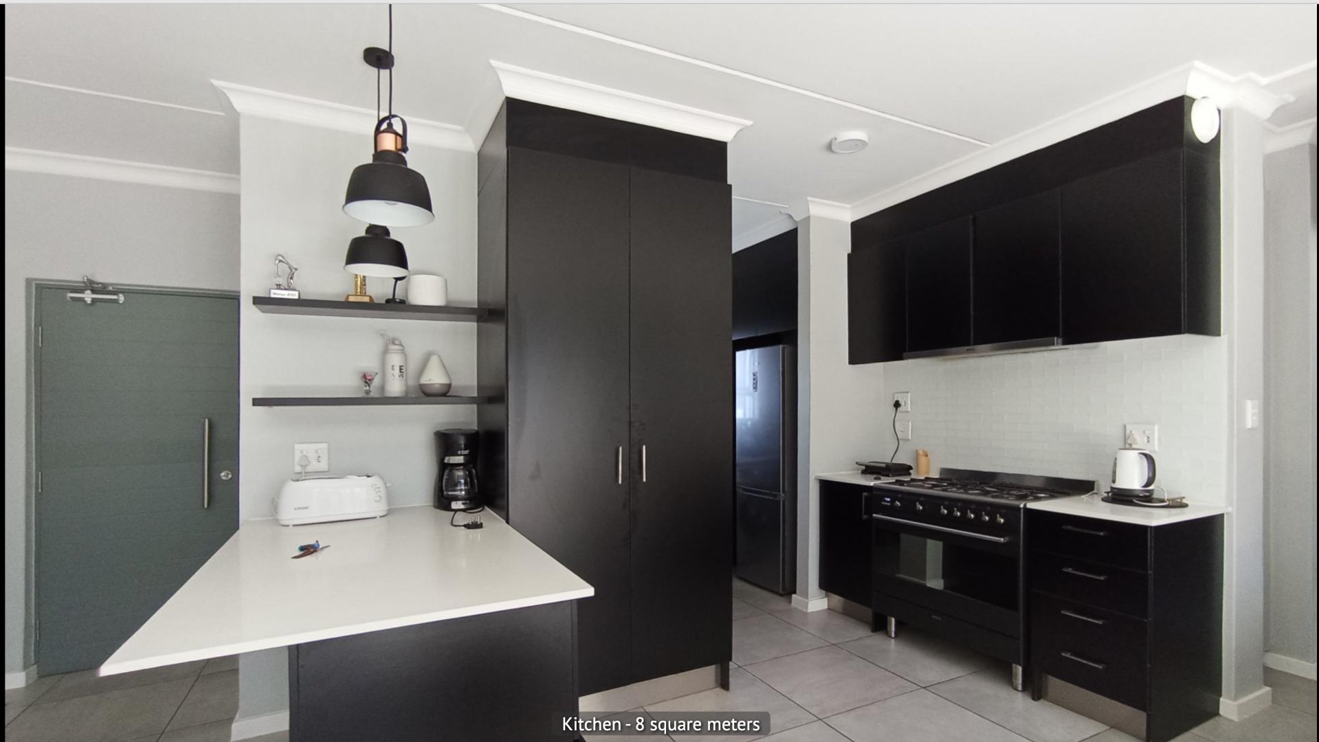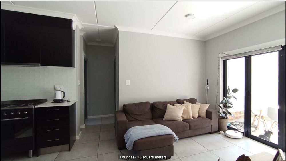 Featuring two generously sized bedrooms with built-in cupboards and two modern bathrooms, the unit is perfectly suited for couples, young families, or professionals. The kitchen is both practical and stylish, with ample cupboard and counter space, room for two under-counter appliances, and a premium SMEG gas stove—an essential during load-shedding.