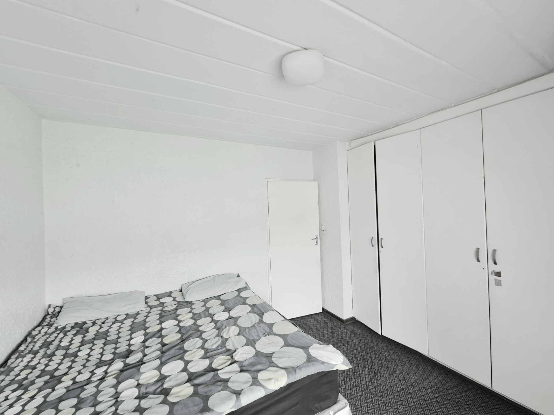 To the left of the kitchen, discover two bedrooms, each equipped with built-in cupboards, complemented by a bathroom featuring a toilet, basin, and bath.
