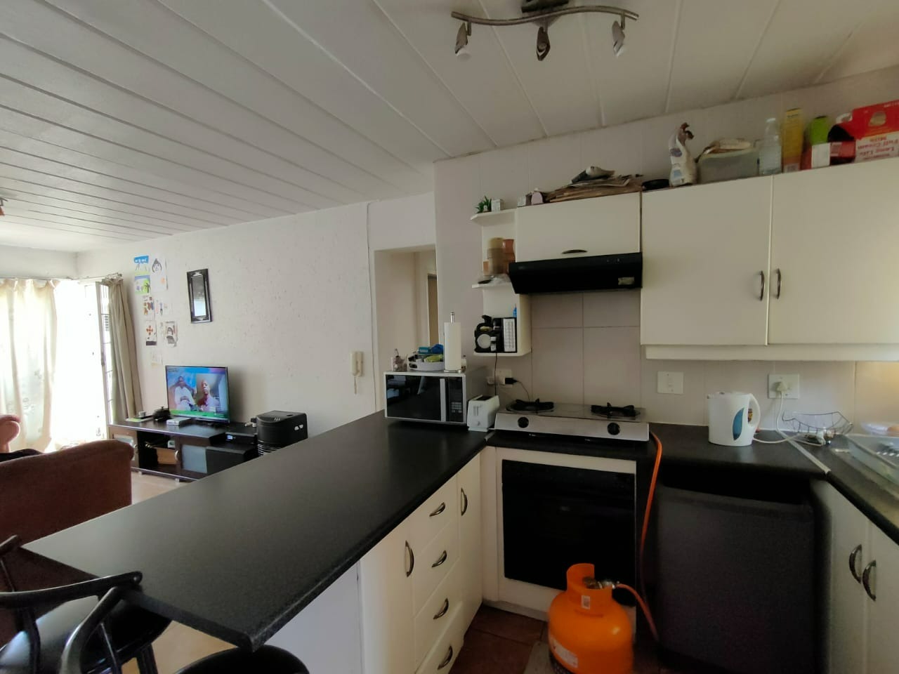 The unit opens through the garden to an inviting open-plan lounge and kitchen area. The lounge features a discreet storage corner, perfect for keeping belongings neatly tucked away. The kitchen boasts a breakfast nook and extends seamlessly to a private courtyard/garden area, ideal for outdoor enjoyment.