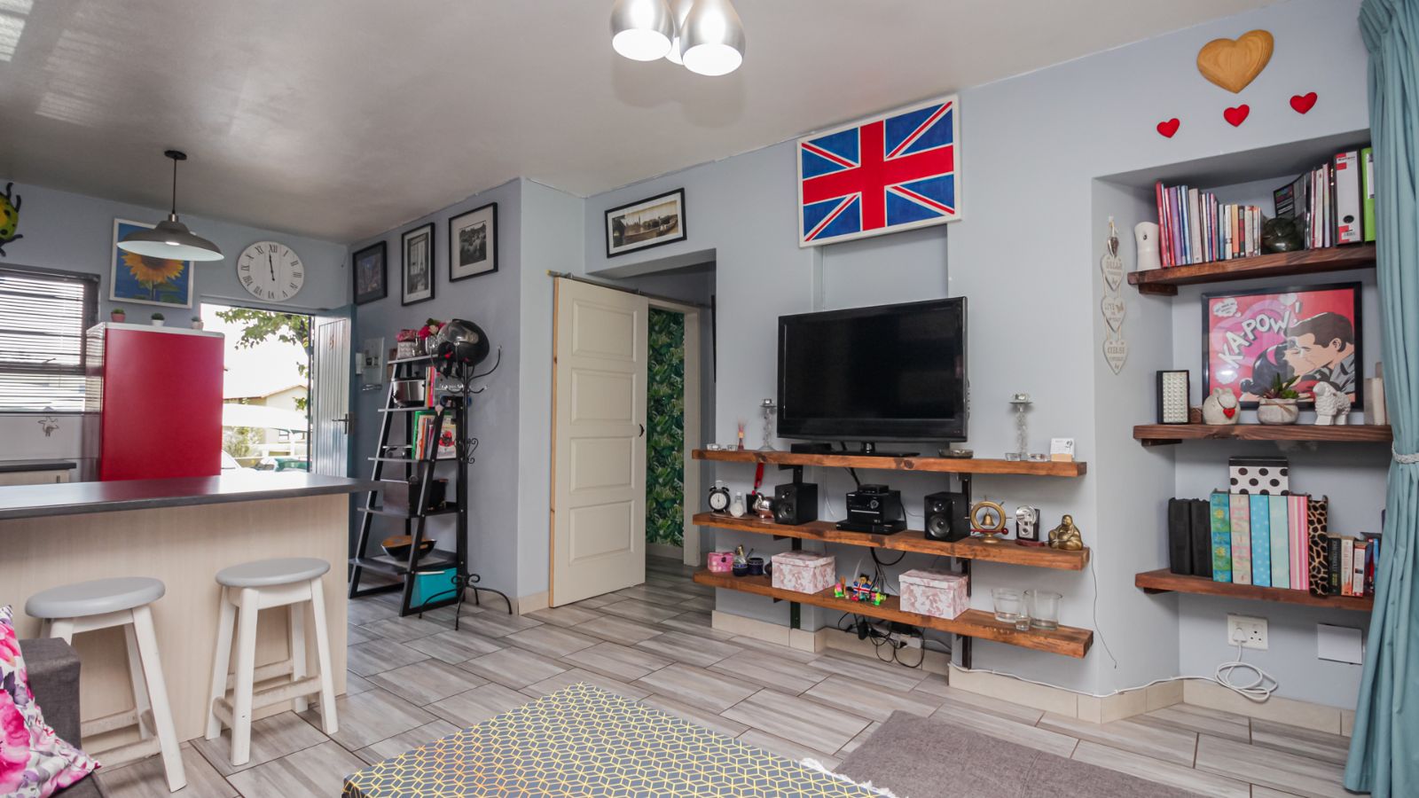 Step inside to find a beautifully renovated kitchen that seamlessly flows into the open-plan lounge, creating a warm and inviting living space. The lounge opens onto a covered patio, complete with a built-in braai – perfect for outdoor entertaining.