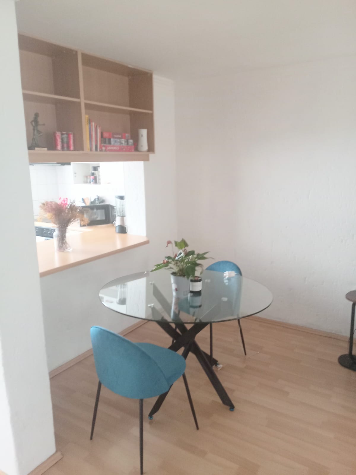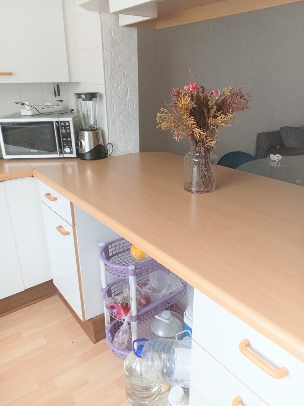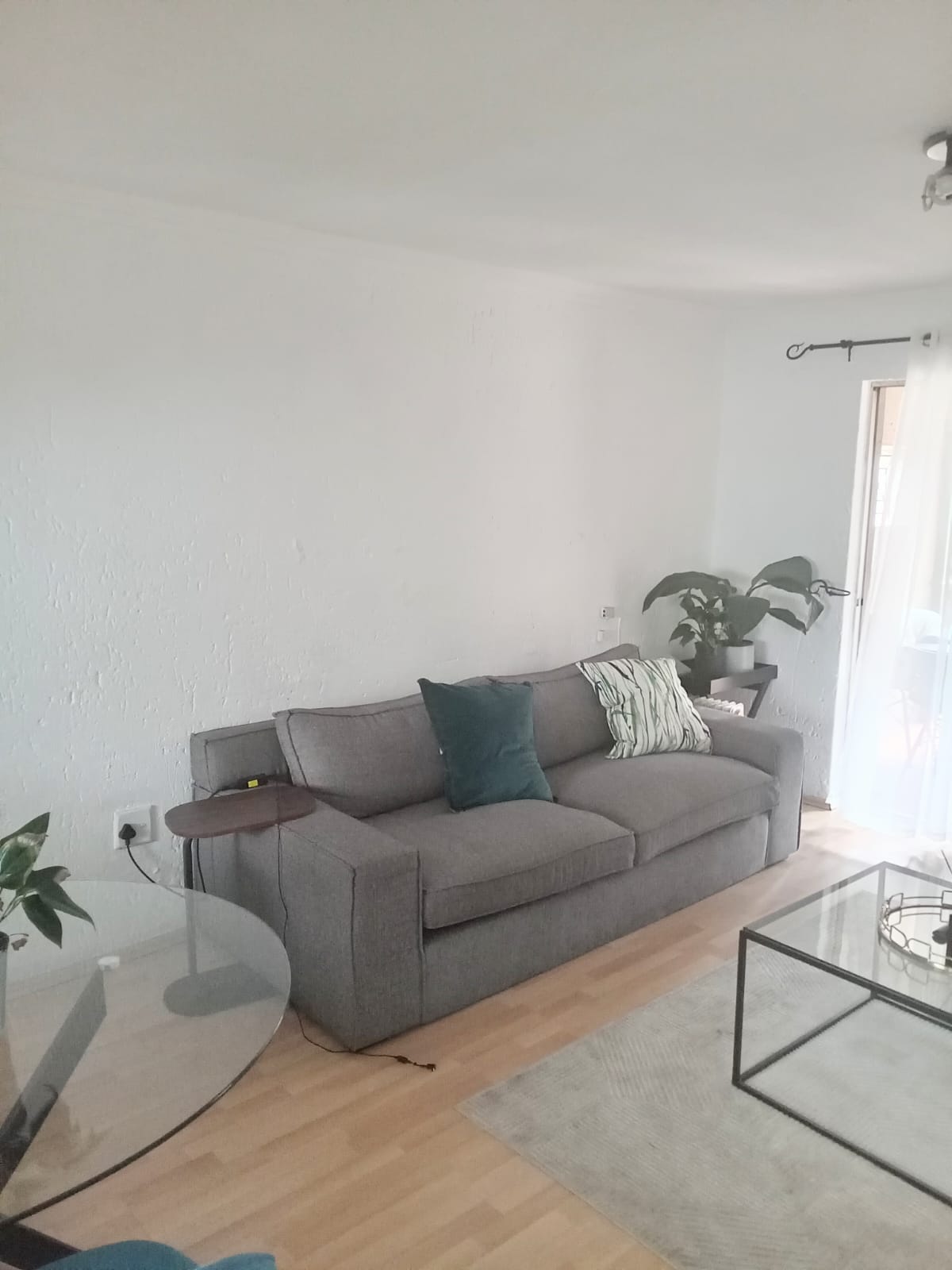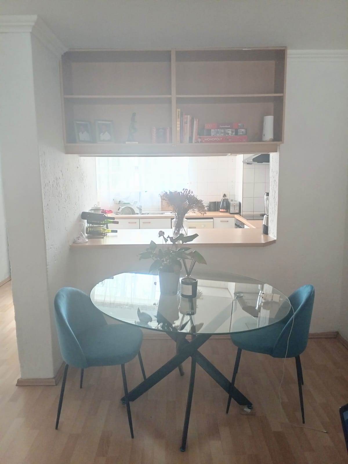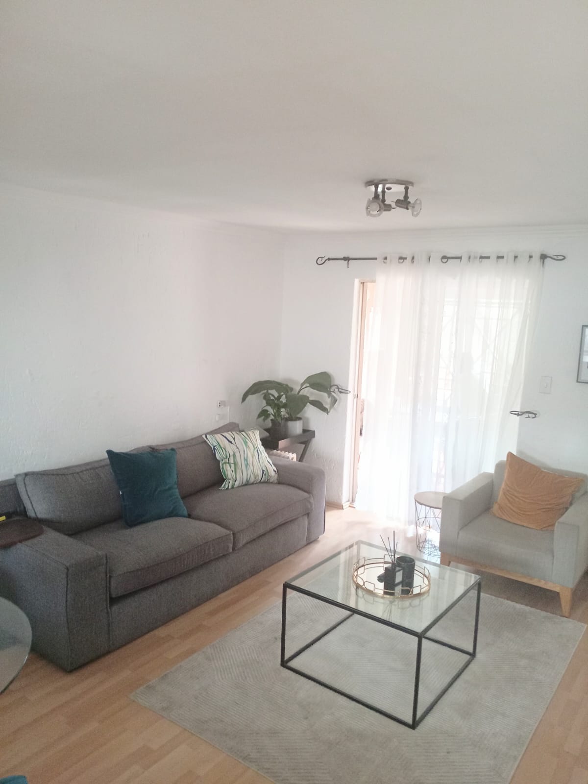 Bright lounge & dining area with laminated flooring
